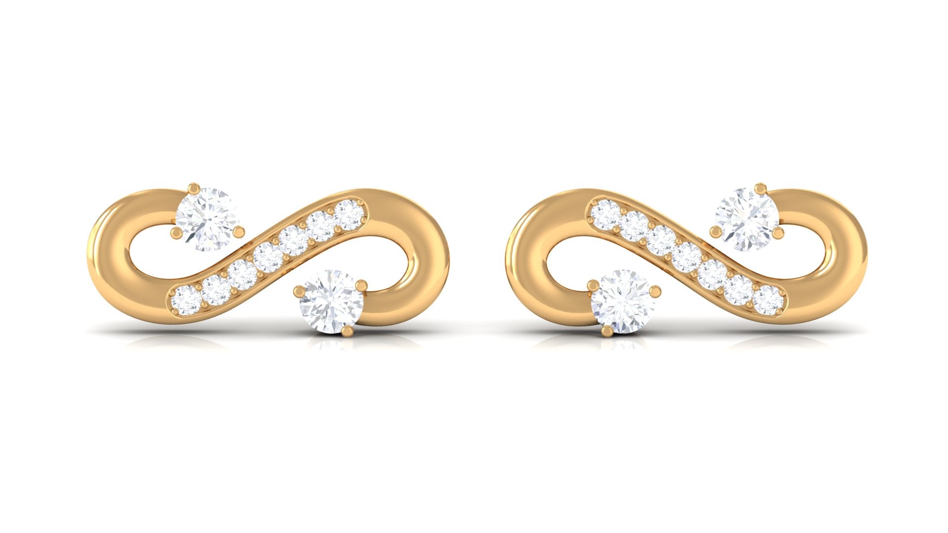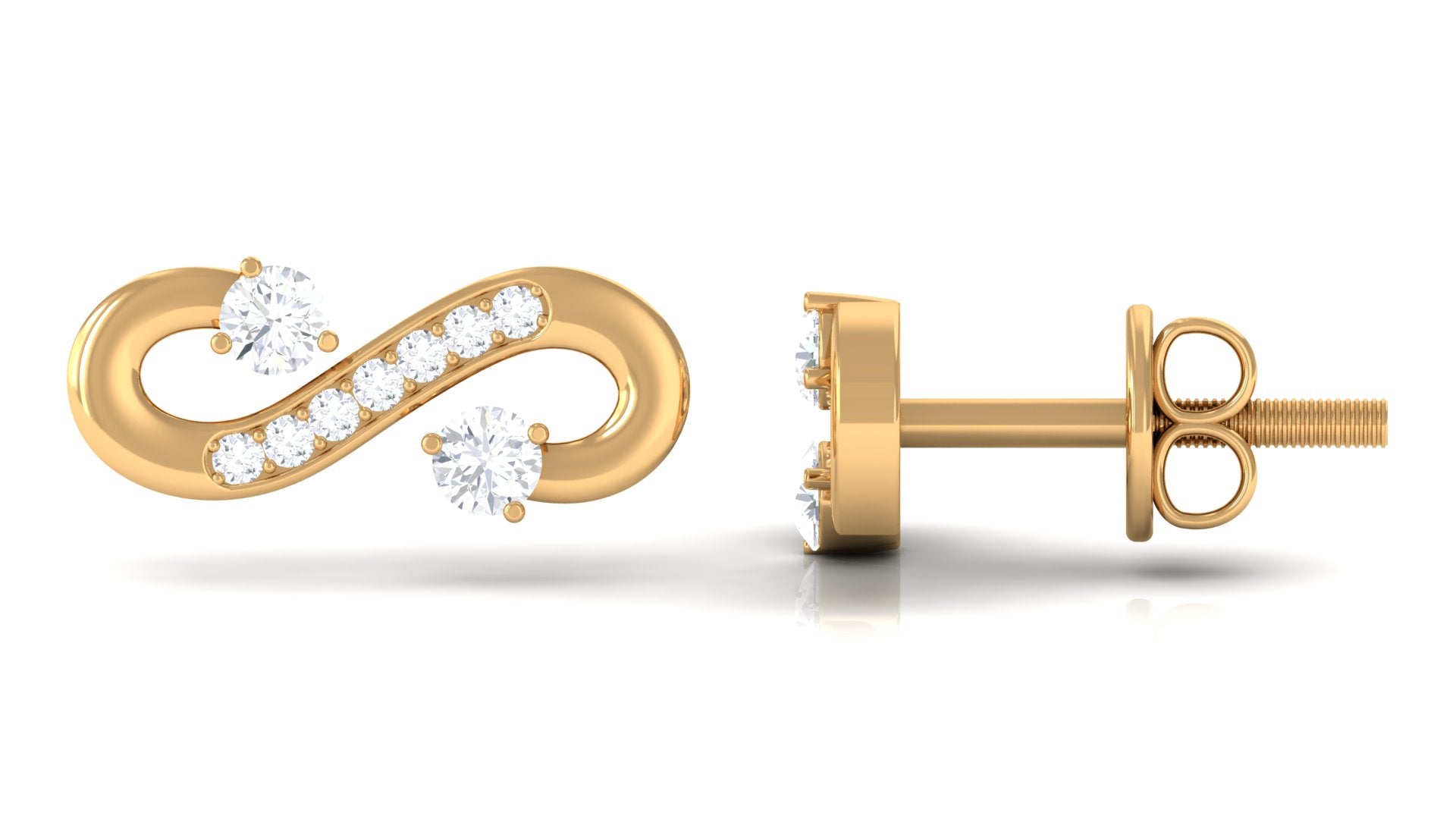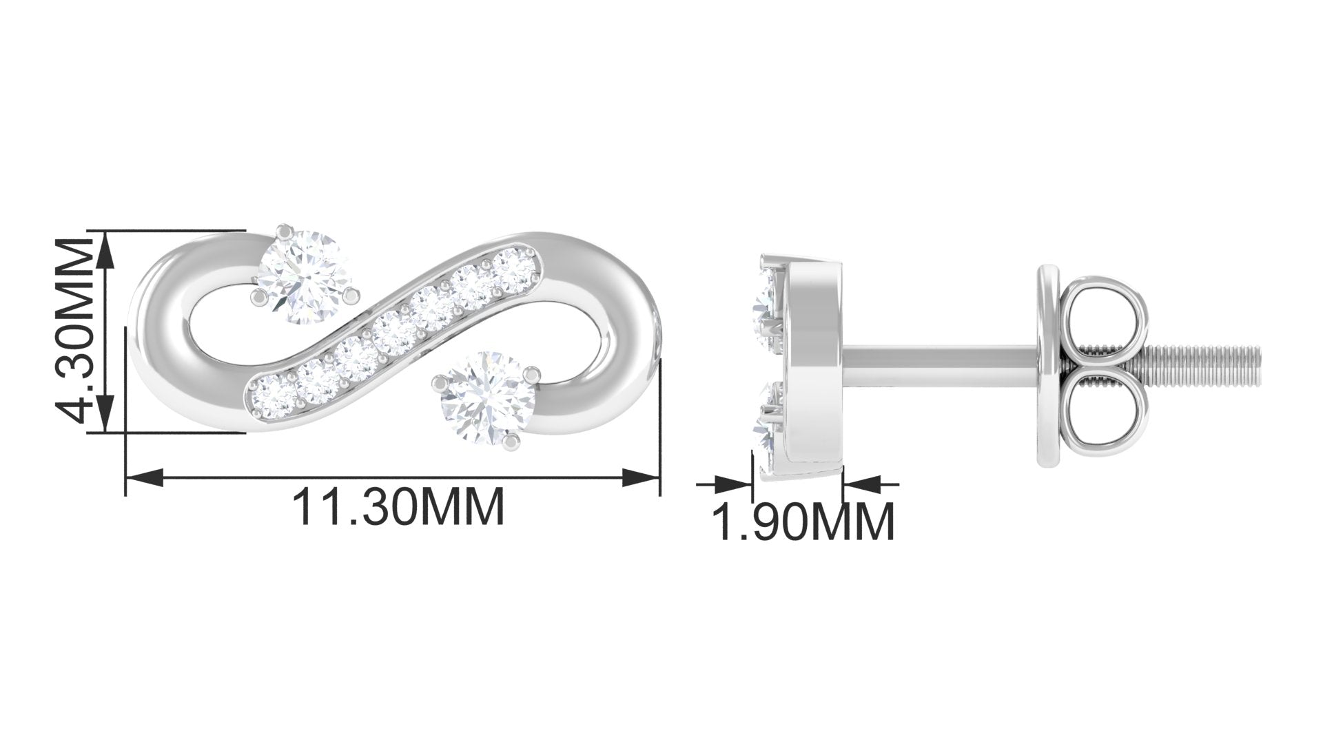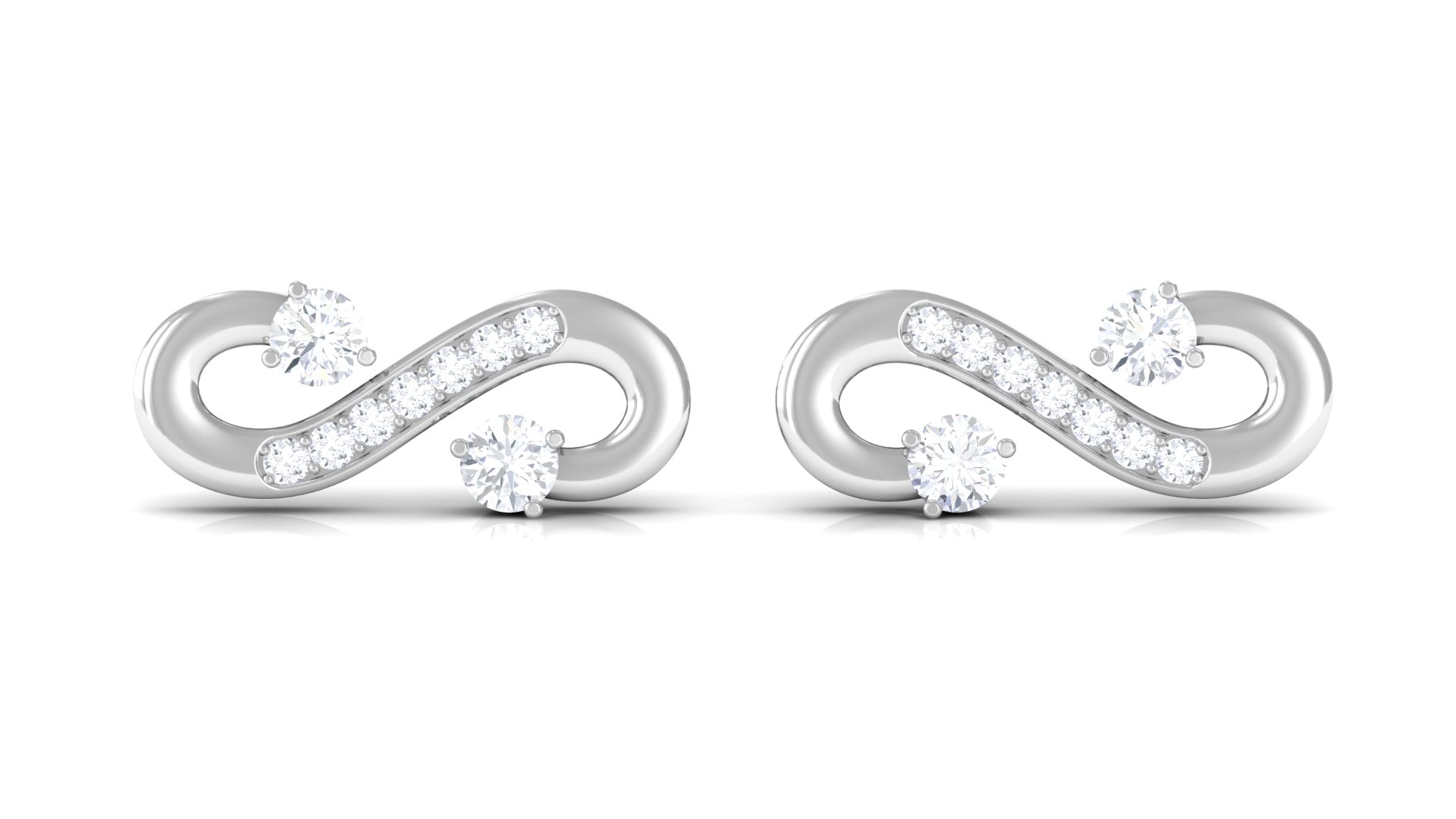 As a beautiful symbol of the infinite or figure eight, these Diamond Stud Earrings means forever and eternity. It represents no beginning or end and it reminds us that everything in the world is always evolving and in constant motion. The infinity is a symbol of infinite possibilities, empowerment and everlasting love. These elegant pair of Infinity Diamond Earrings add a subtle yet stylish touch that can never go unnoticed. Elevate your style from sleek and sophisticated to quirky and fun. The Round Diamond studded in Surface Prong Setting elevates your style, making the ultimate everyday earrings. Simple, timeless, and always in vogue, these April Birthstone Earrings complement every outfit and steal the spotlight in mere seconds.