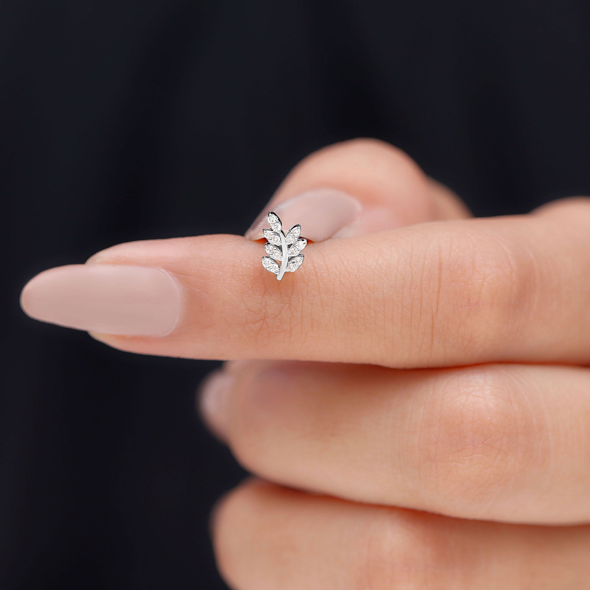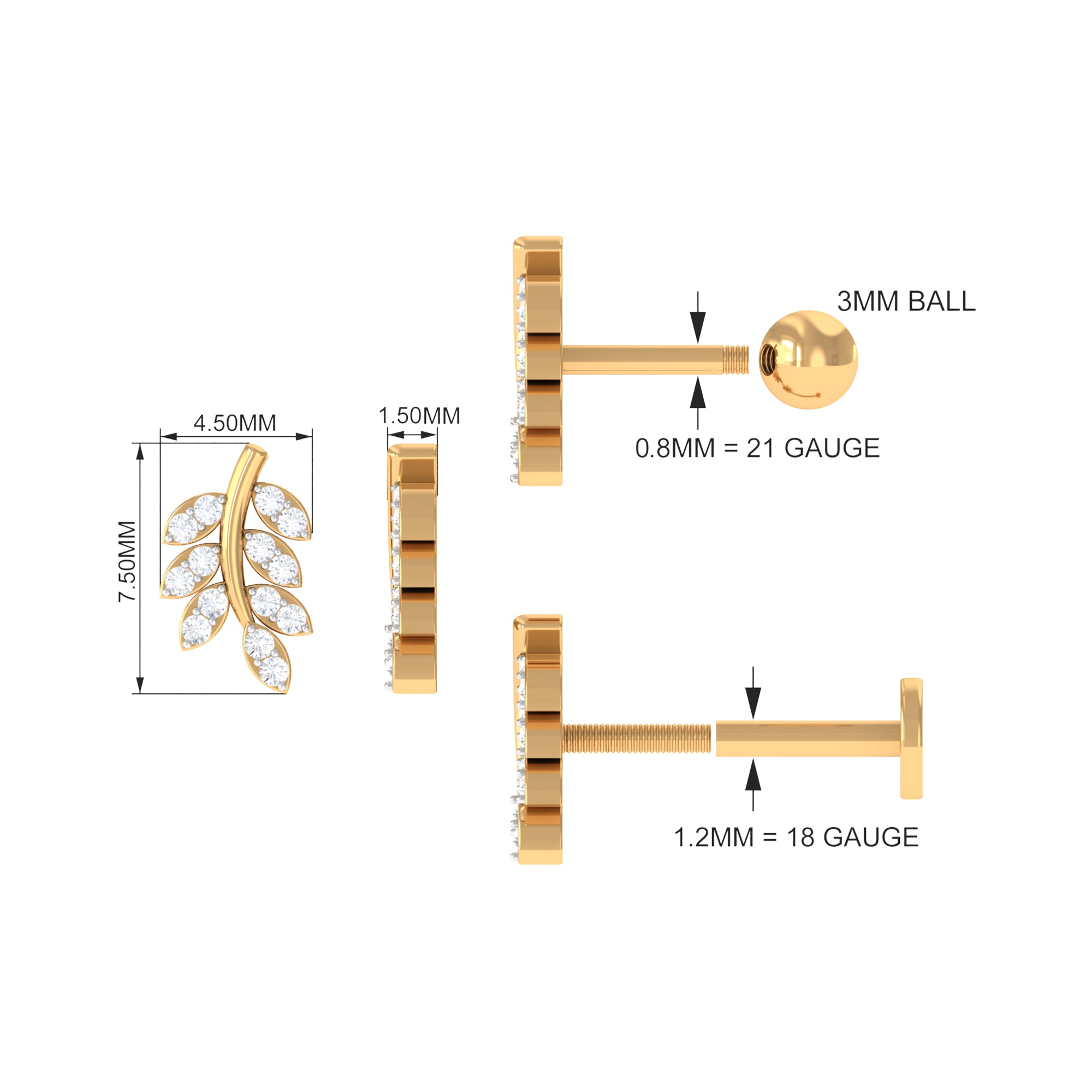 Natural Diamond Olive Leaf Earring for Cartilage Piercing