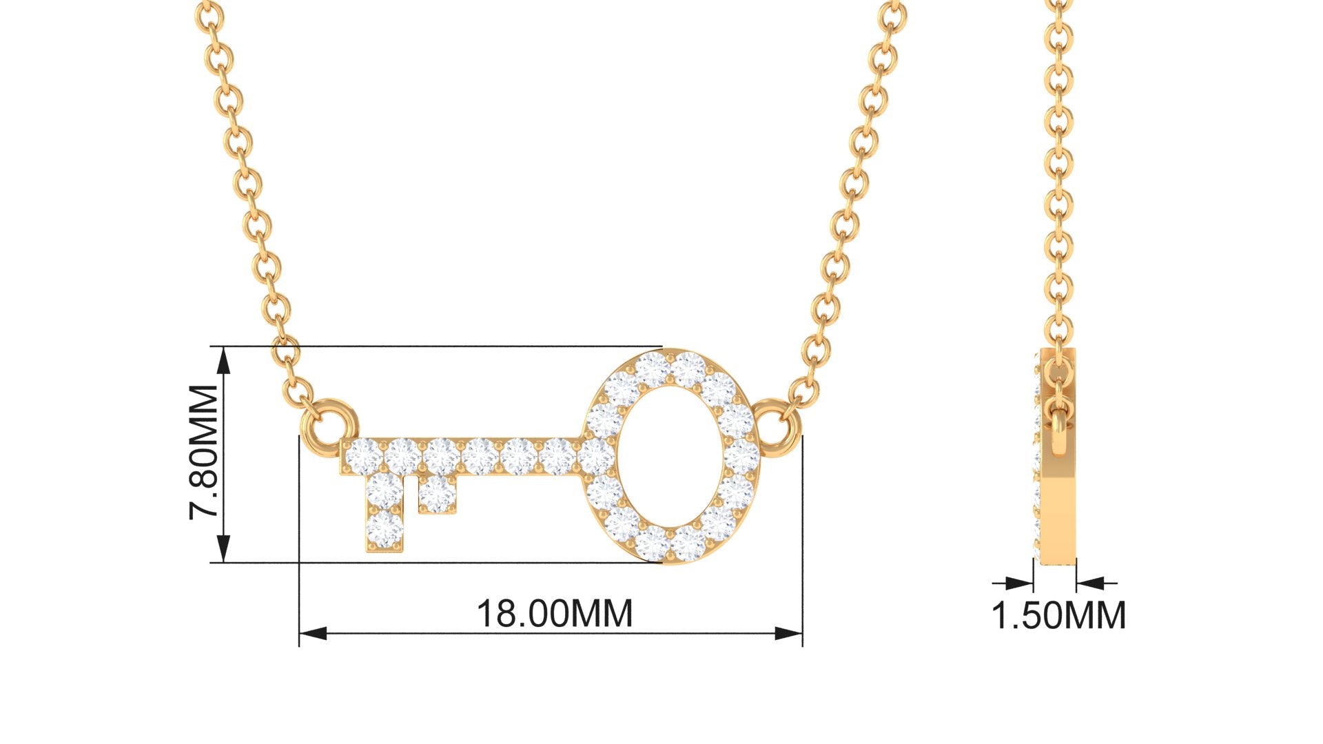 A key to elegance, a sparkle of confidence - wear our Diamond Key Necklace and shine like never before. This Unique Necklace is the perfect blend of sophistication and style. It features a sleek and modern design that is sure to turn heads. Crafted from high-quality materials, the Horizontal Key Necklace is adorned with a row of dazzling natural diamonds of EF-VS quality set in prong setting for a touch of glamour and luxury. You can present this as a gift for Christmas, a birthday gift, an anniversary gift, or a romantic surprise, this Diamond Necklace beautifully marks lifes most cherished moments. It offers a wide range of metal color options and comes with a certificate of authenticity for gemstones and is packaged in a premium storage box.