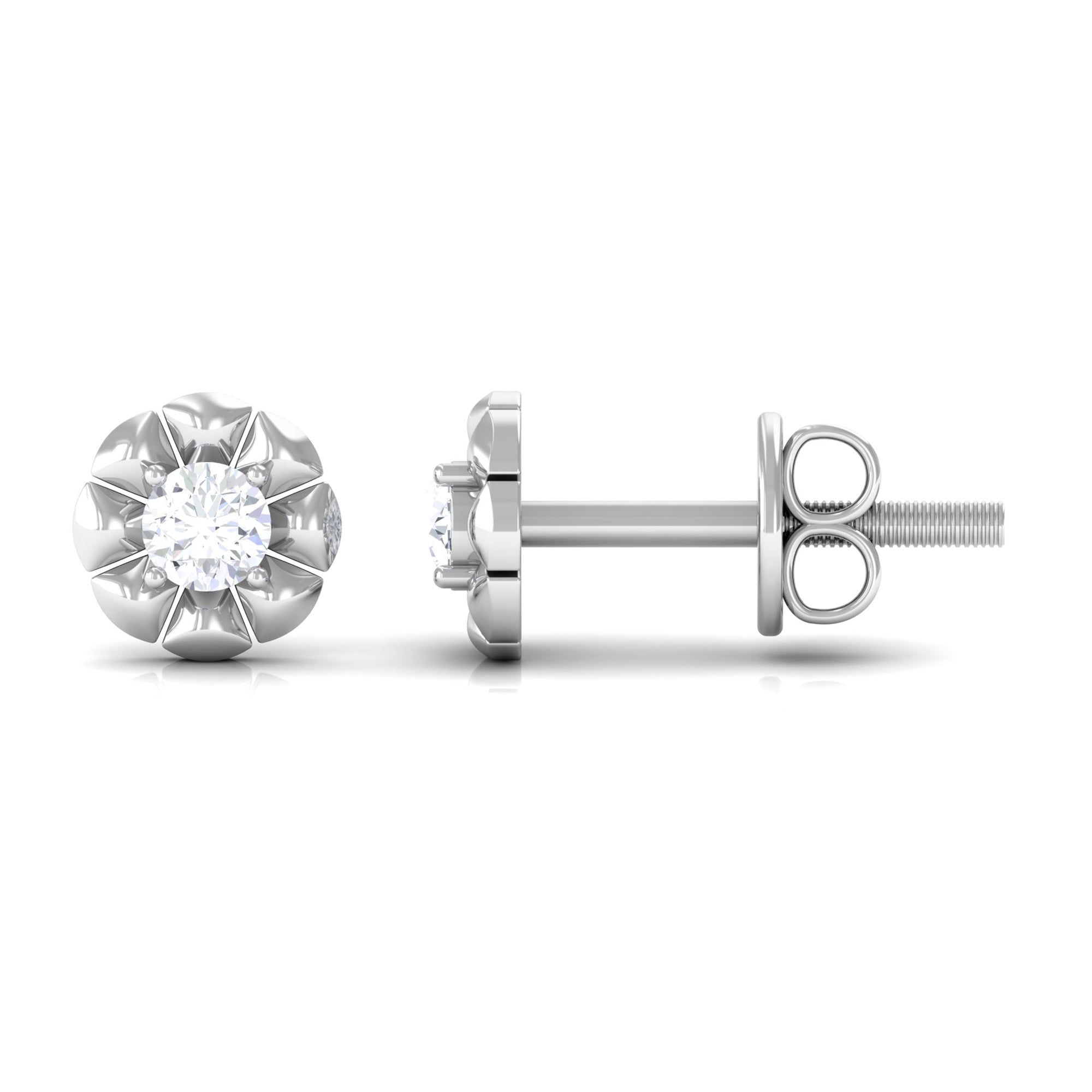 Natural Diamond Cute Flower Stud Earrings with Screw Back
