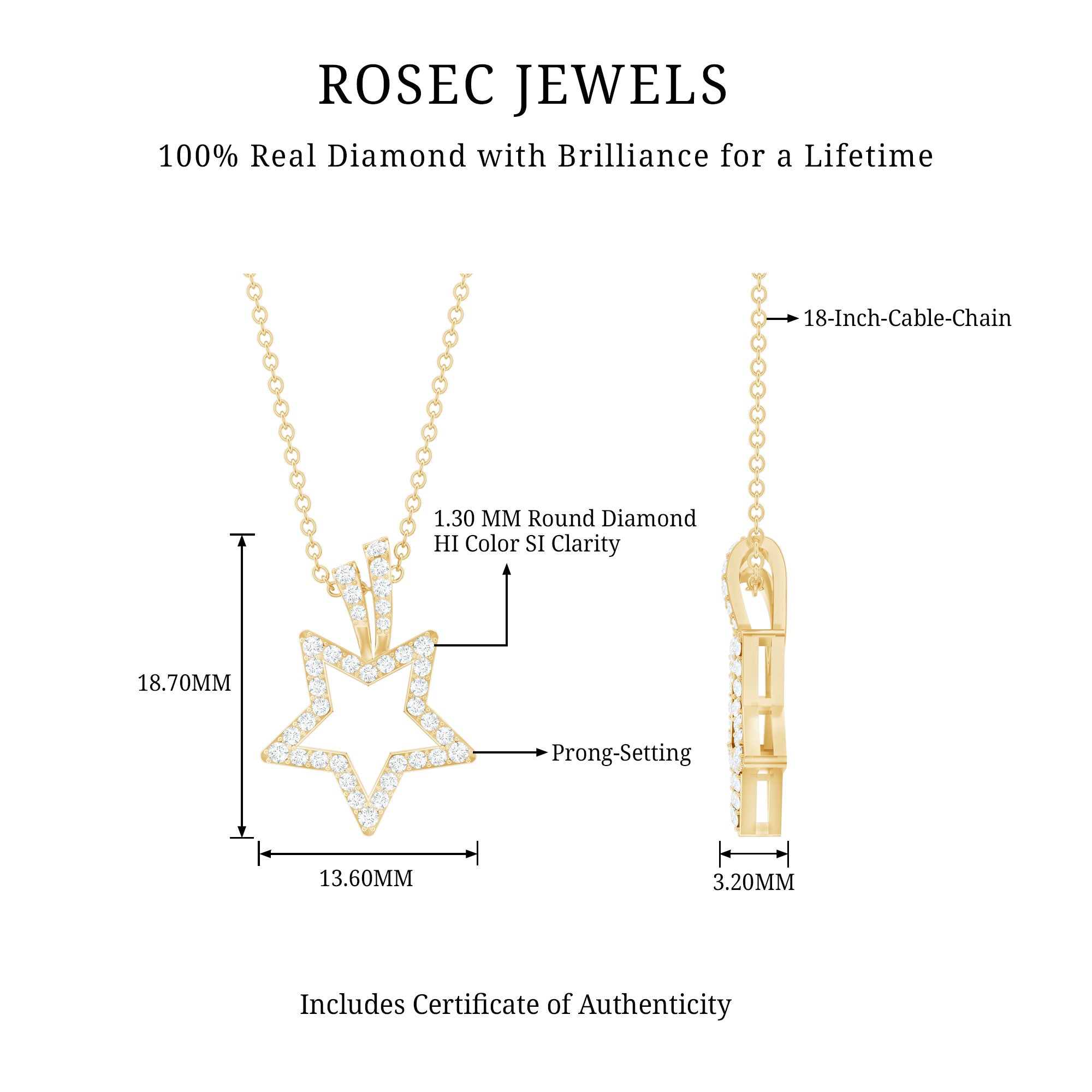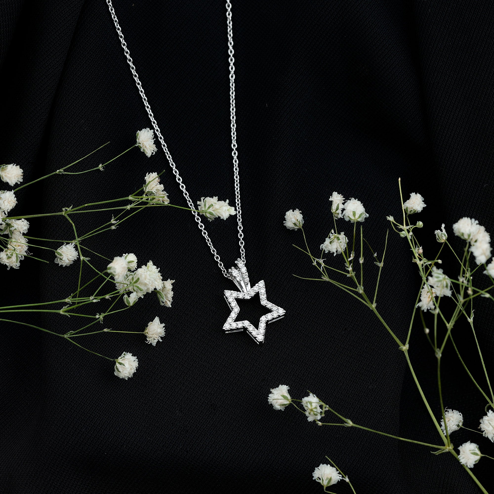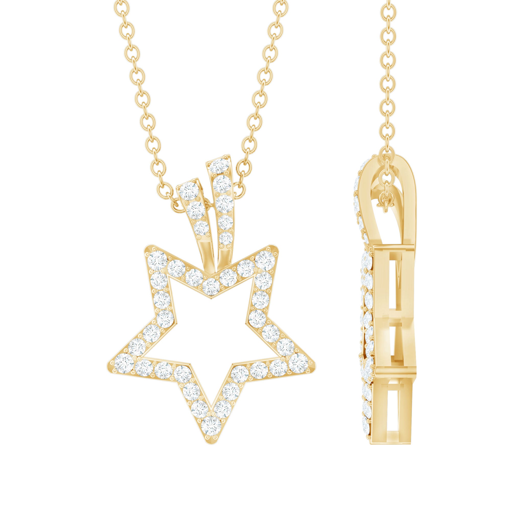 Looking for something to embrace your personality then get this Diamond Star Pendant. It features a Diamond Studded Star motif, the diamonds are securely placed in prong setting. The pendant beholds the classic shine of HI-SI quality Real Diamond which makes the star motif shine like a real night star. This Celestial Necklace is precisely crafted to beautify your neckline and will be delivered to you in a premium quality box.