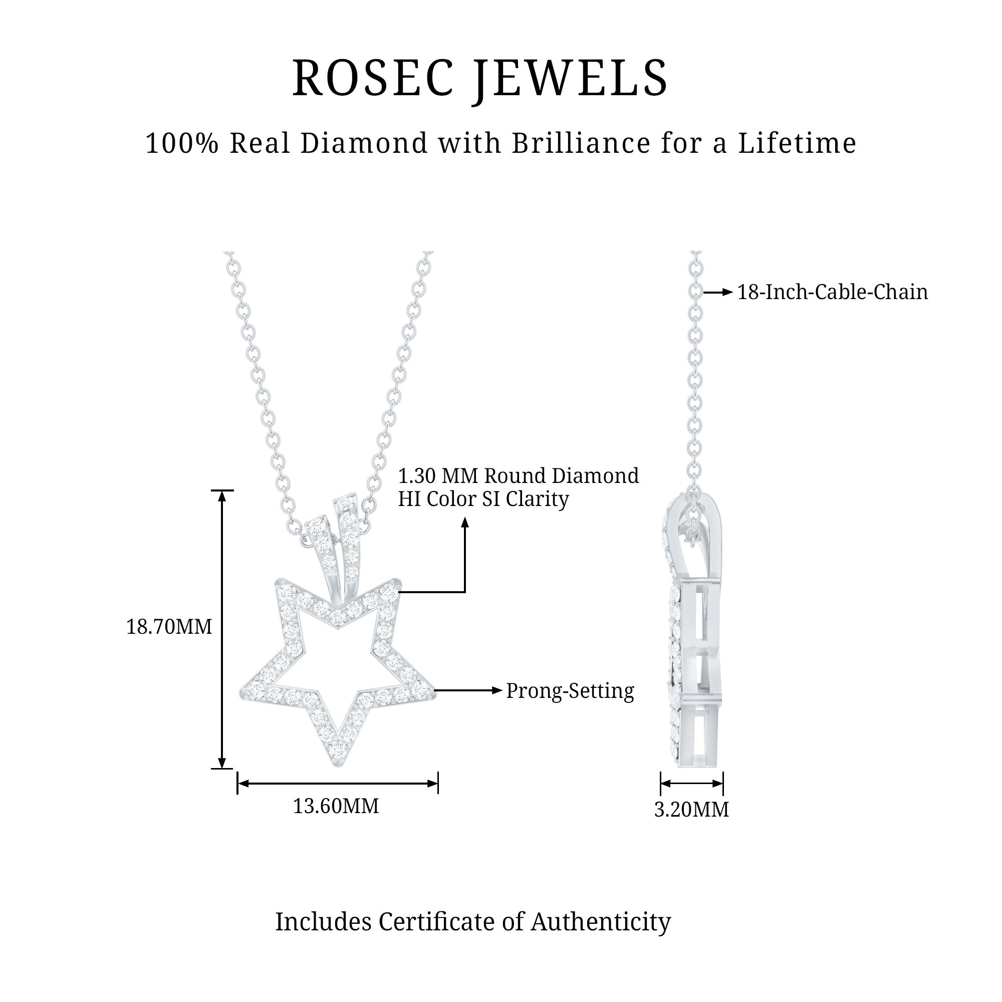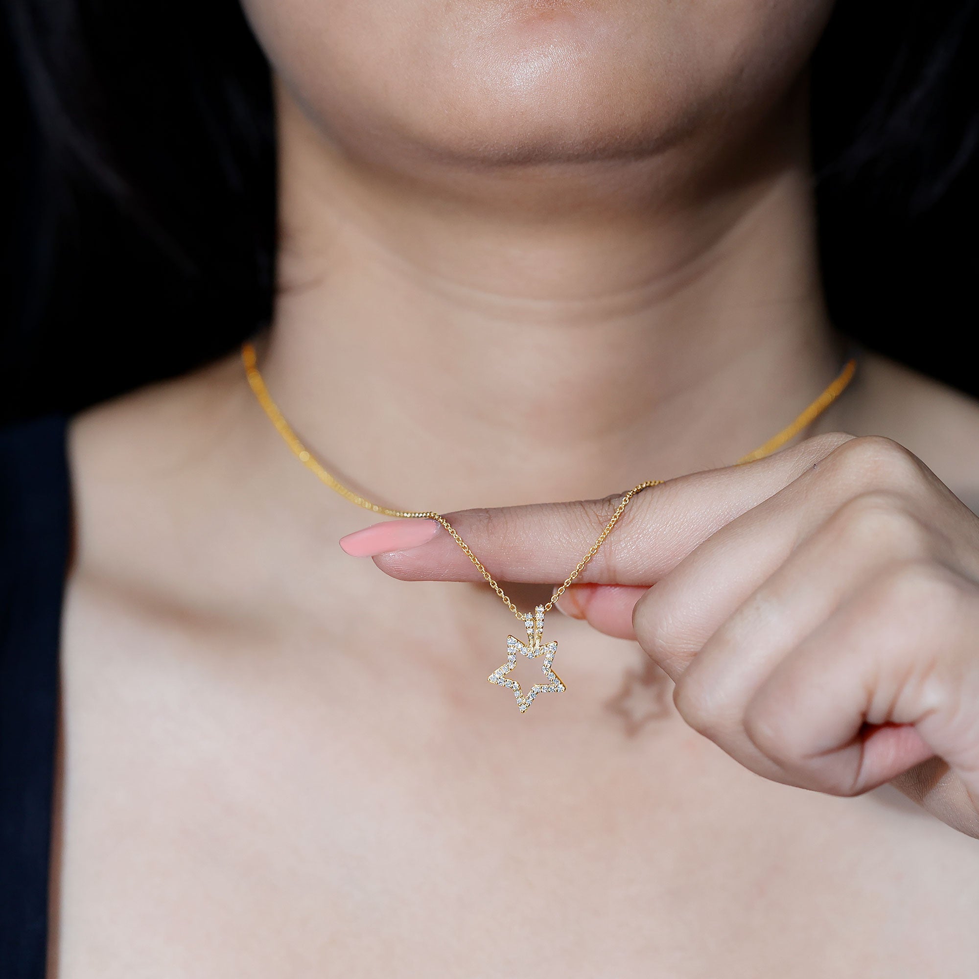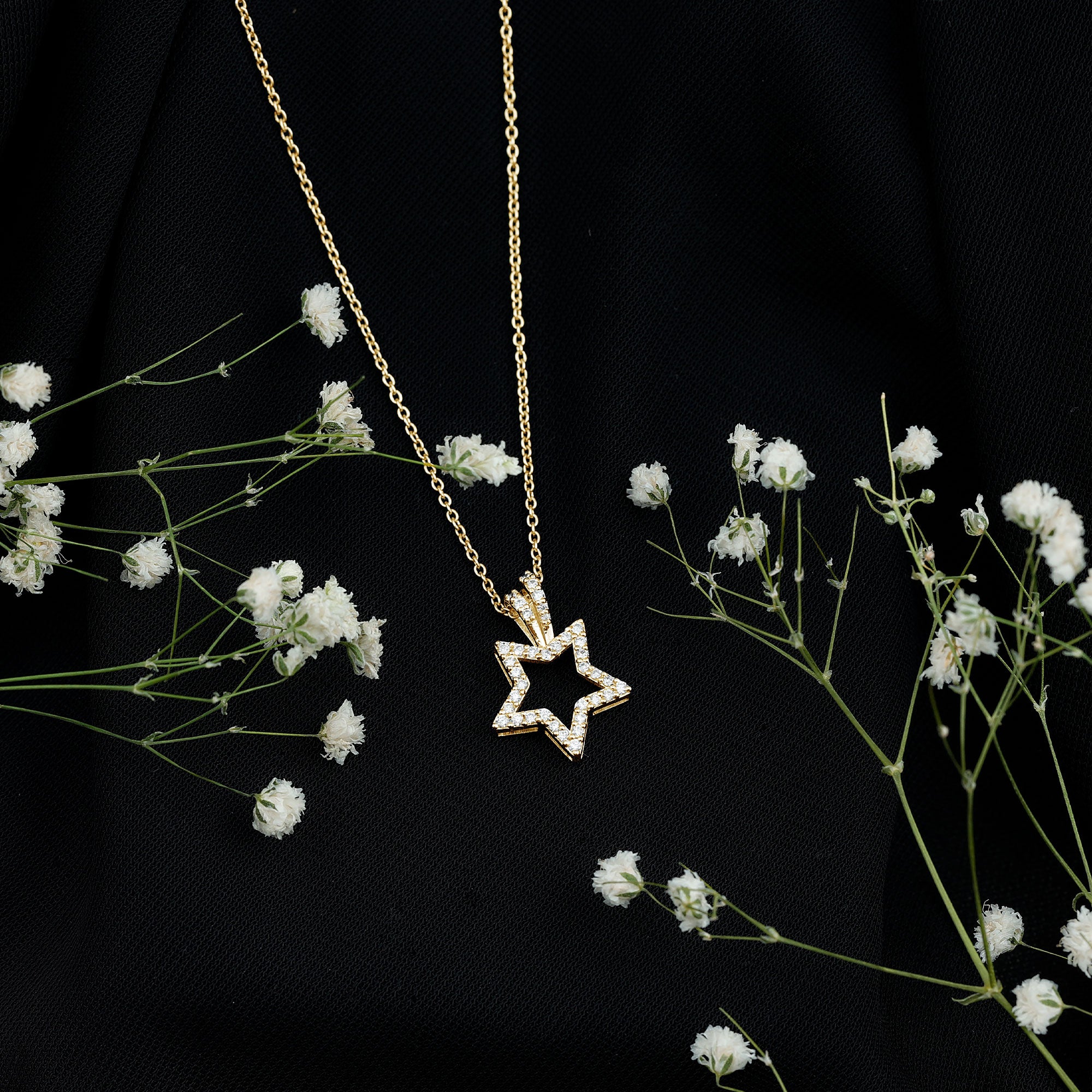 Looking for something to embrace your personality then get this Diamond Star Pendant. It features a Diamond Studded Star motif, the diamonds are securely placed in prong setting. The pendant beholds the classic shine of HI-SI quality Real Diamond which makes the star motif shine like a real night star. This Celestial Necklace is precisely crafted to beautify your neckline and will be delivered to you in a premium quality box.