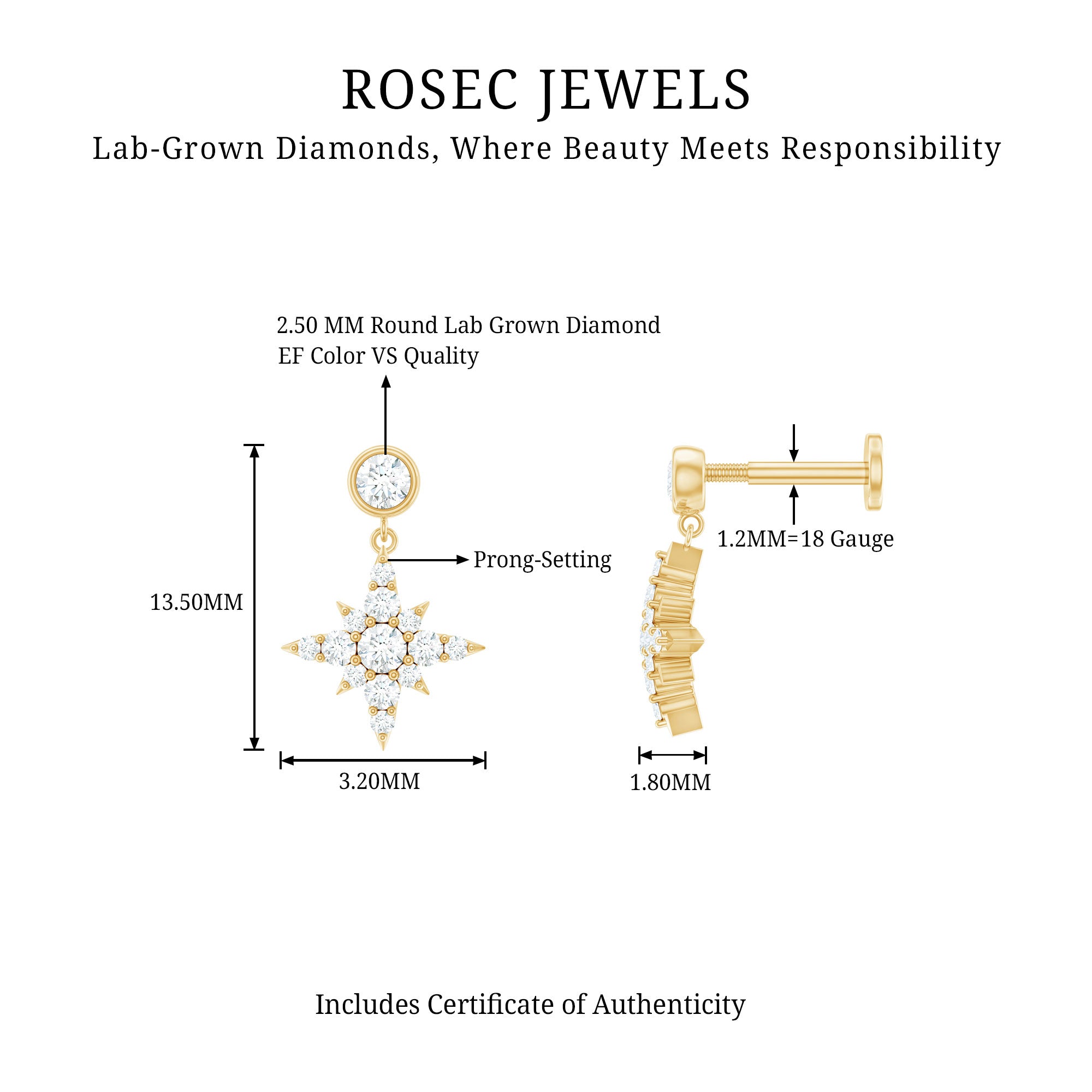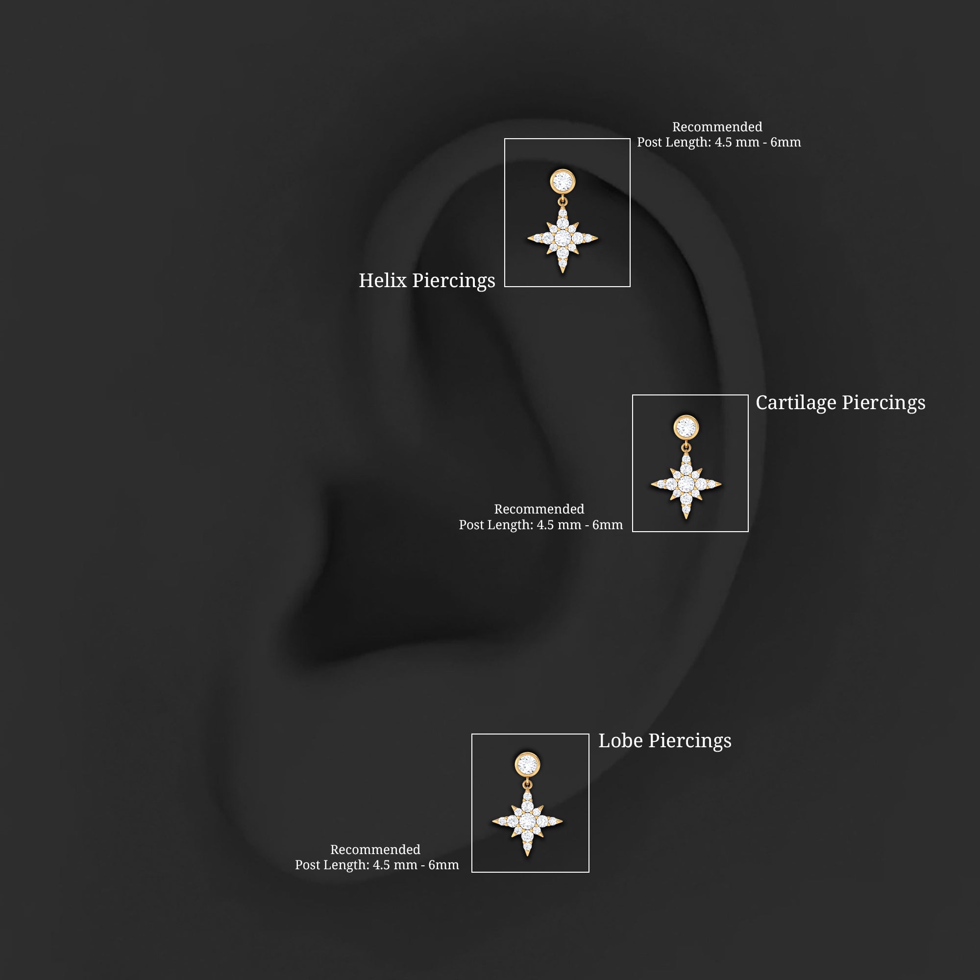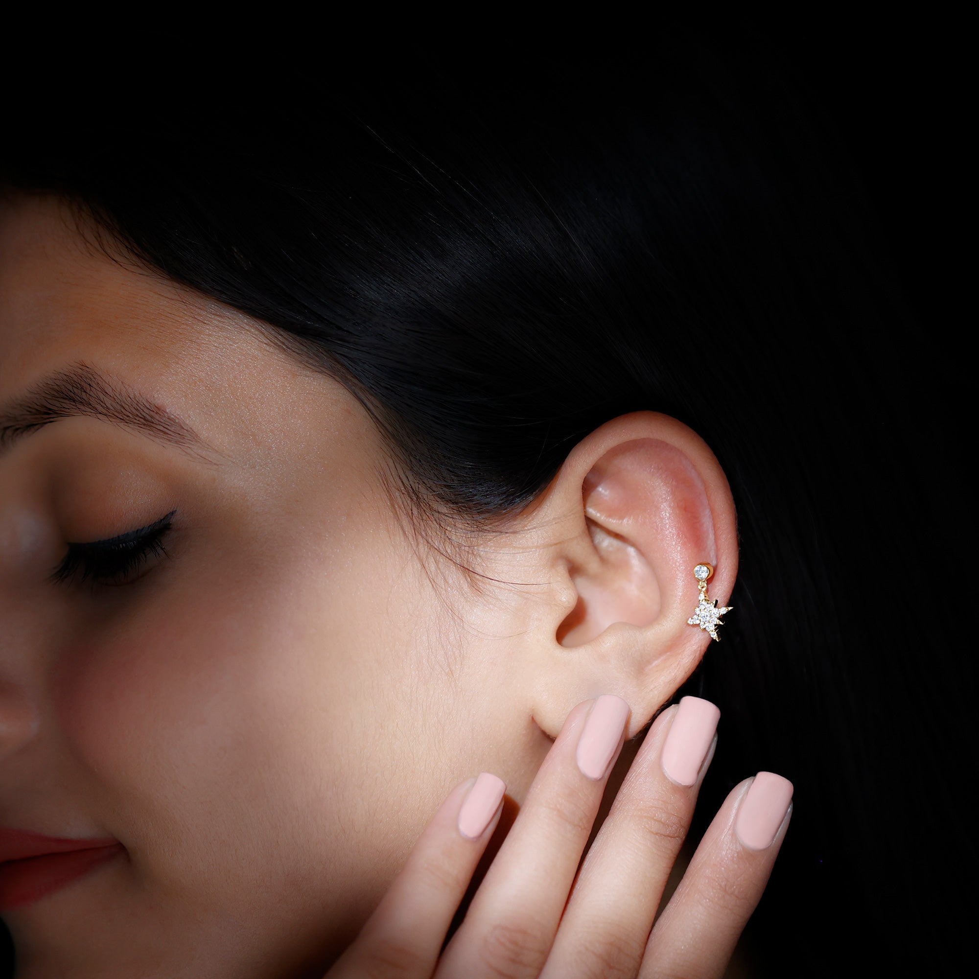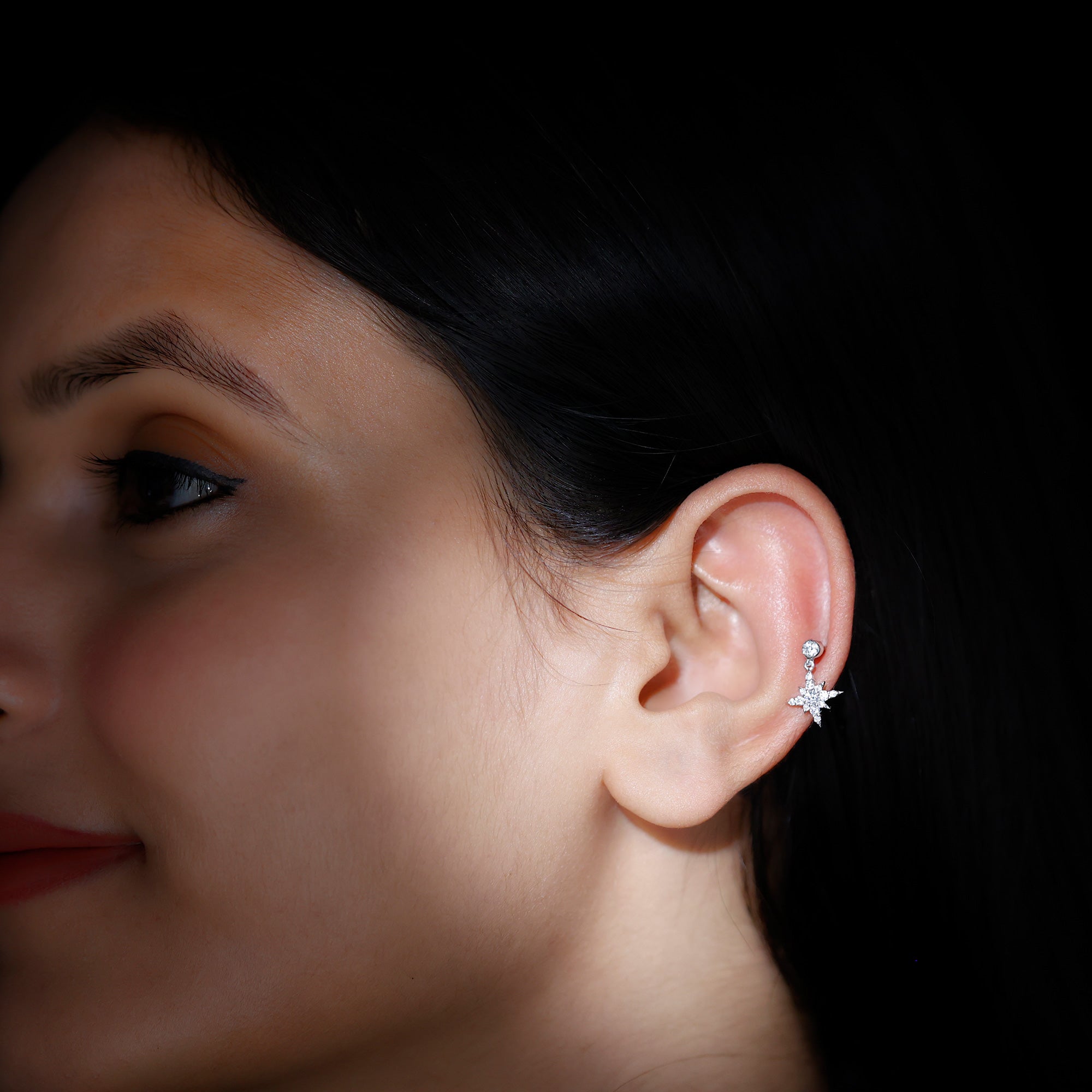 Certified Diamond Starburst Drop Earring for Helix Piercing