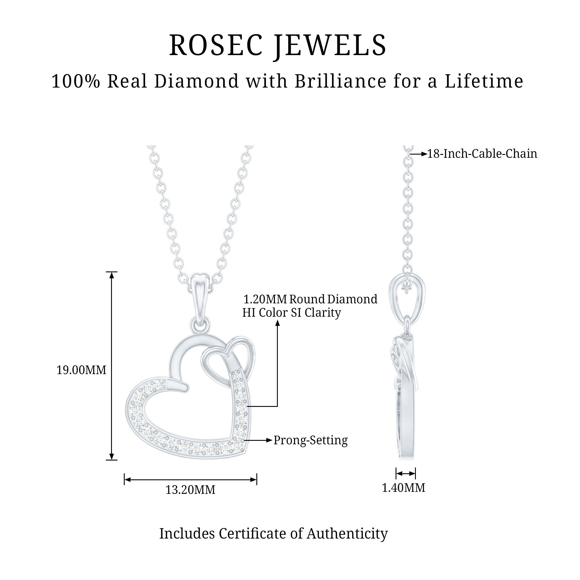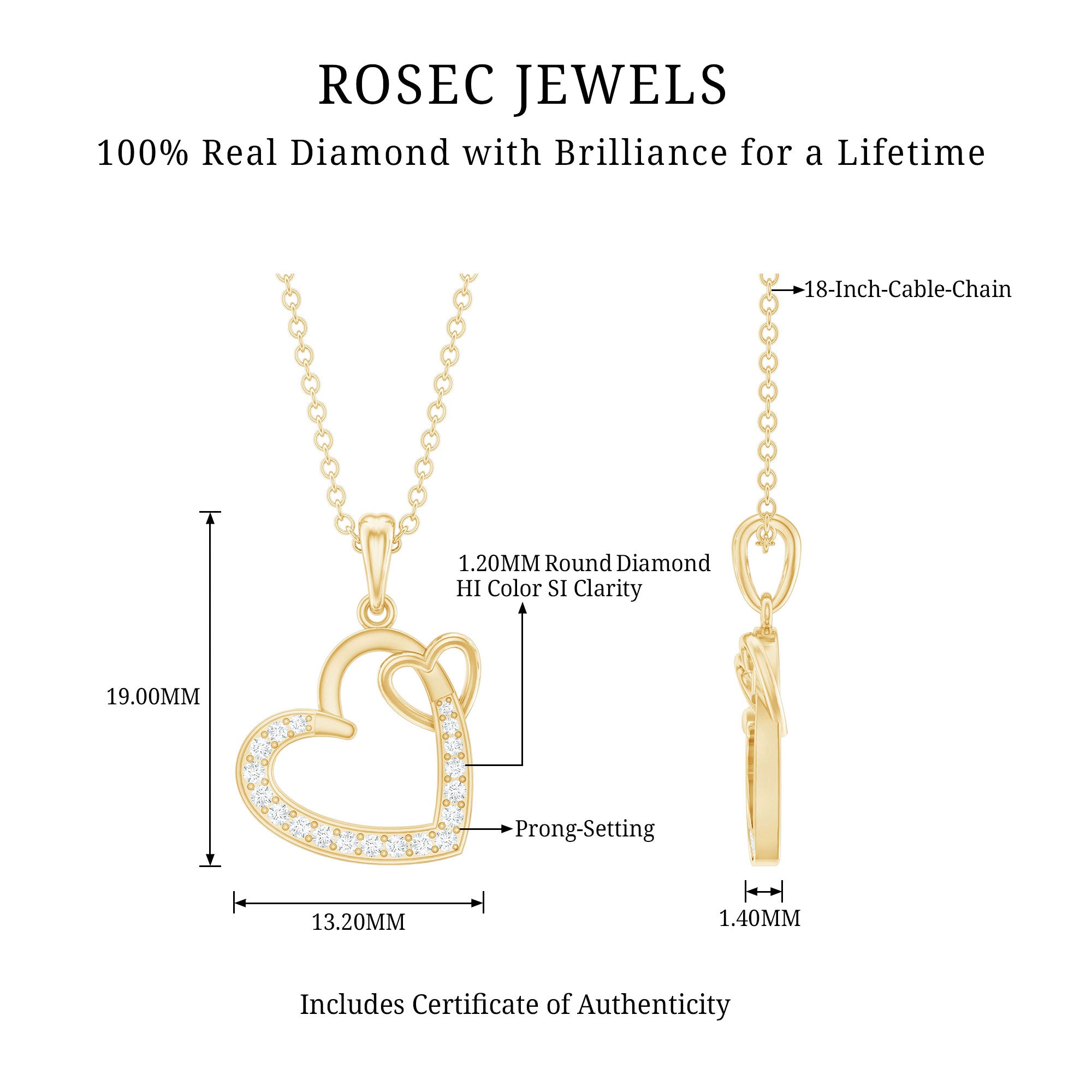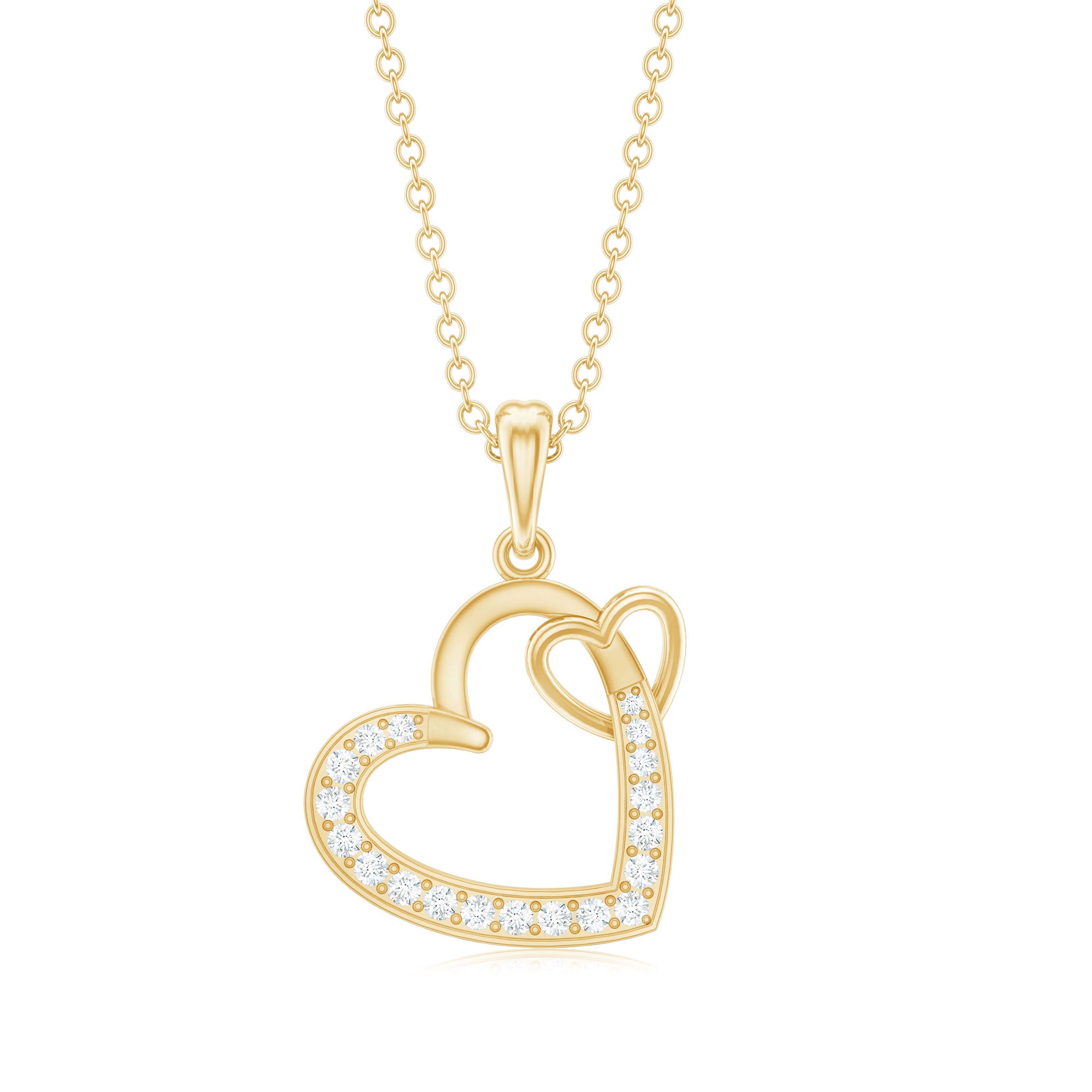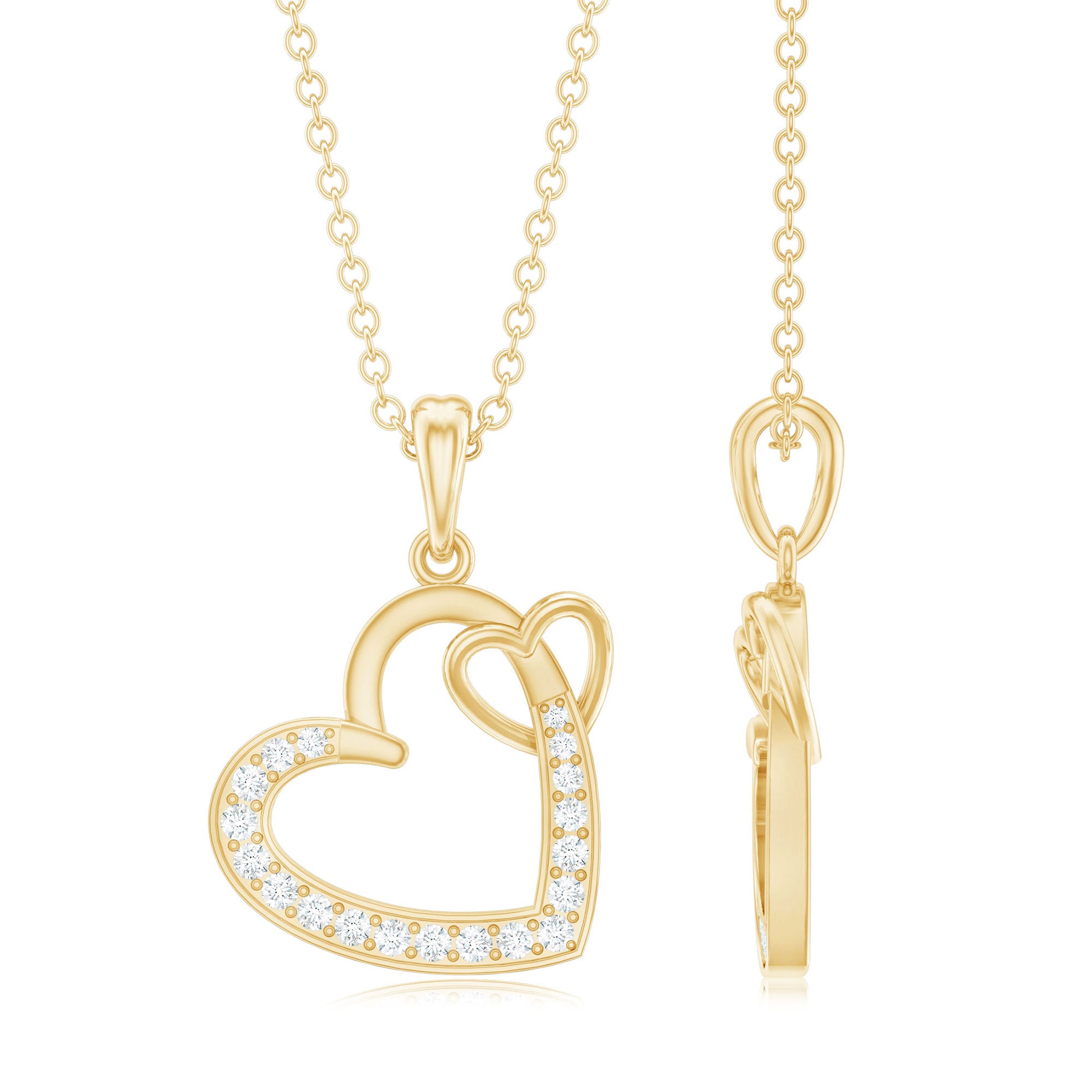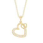 Natural Diamond Twin Interlocked Heart Pendant Necklace in Gold
