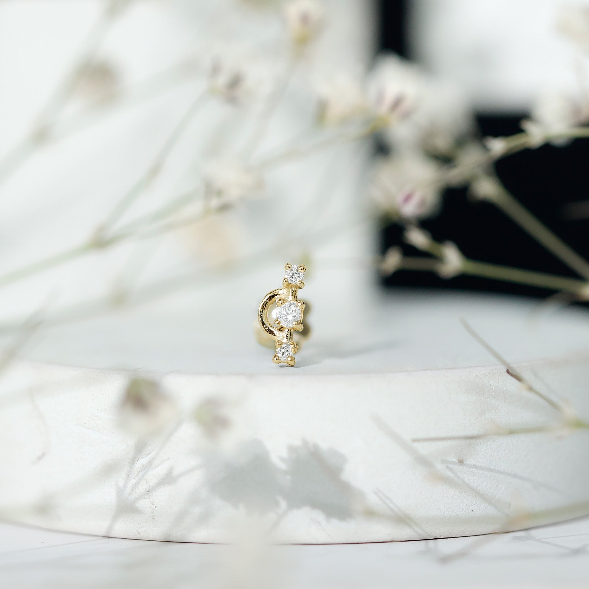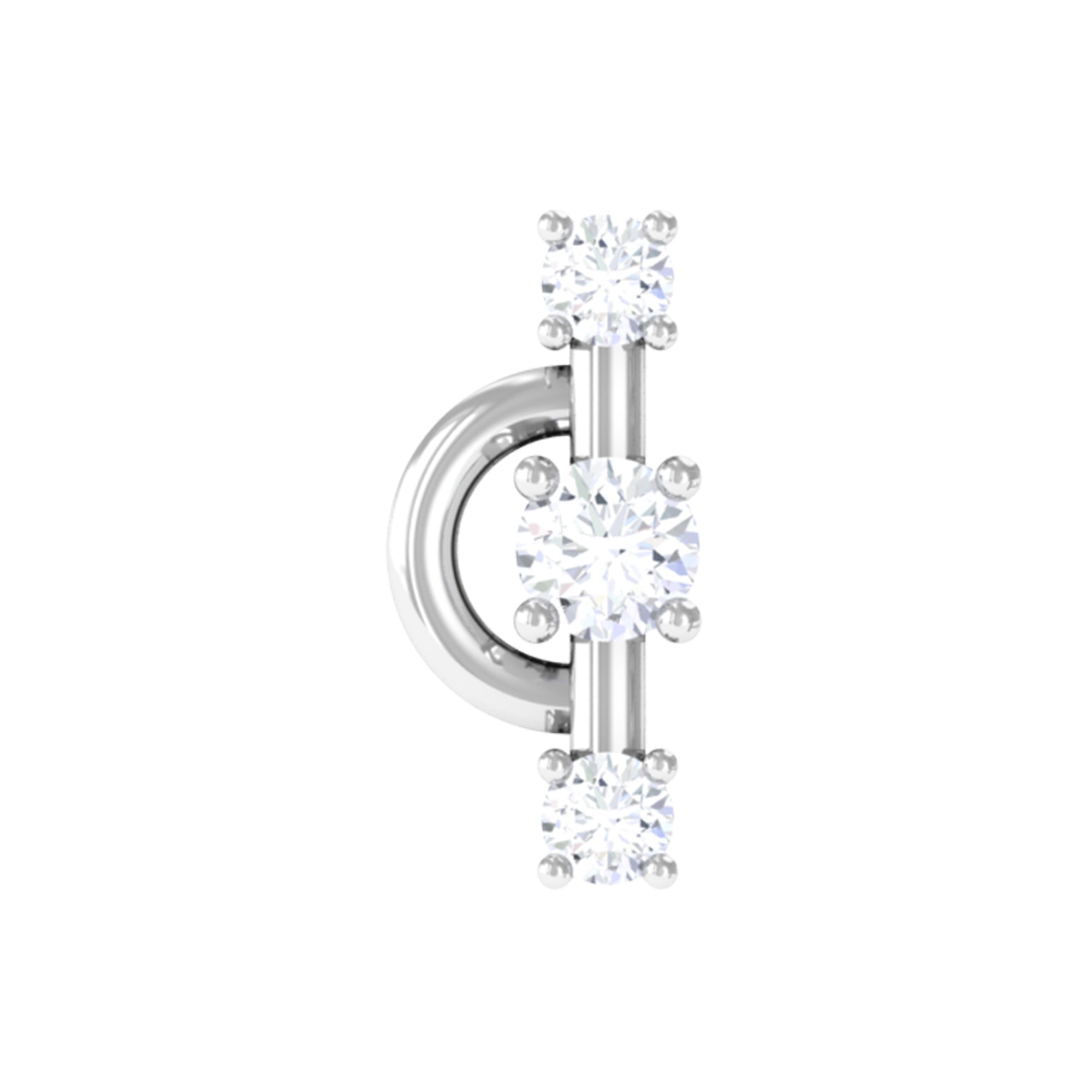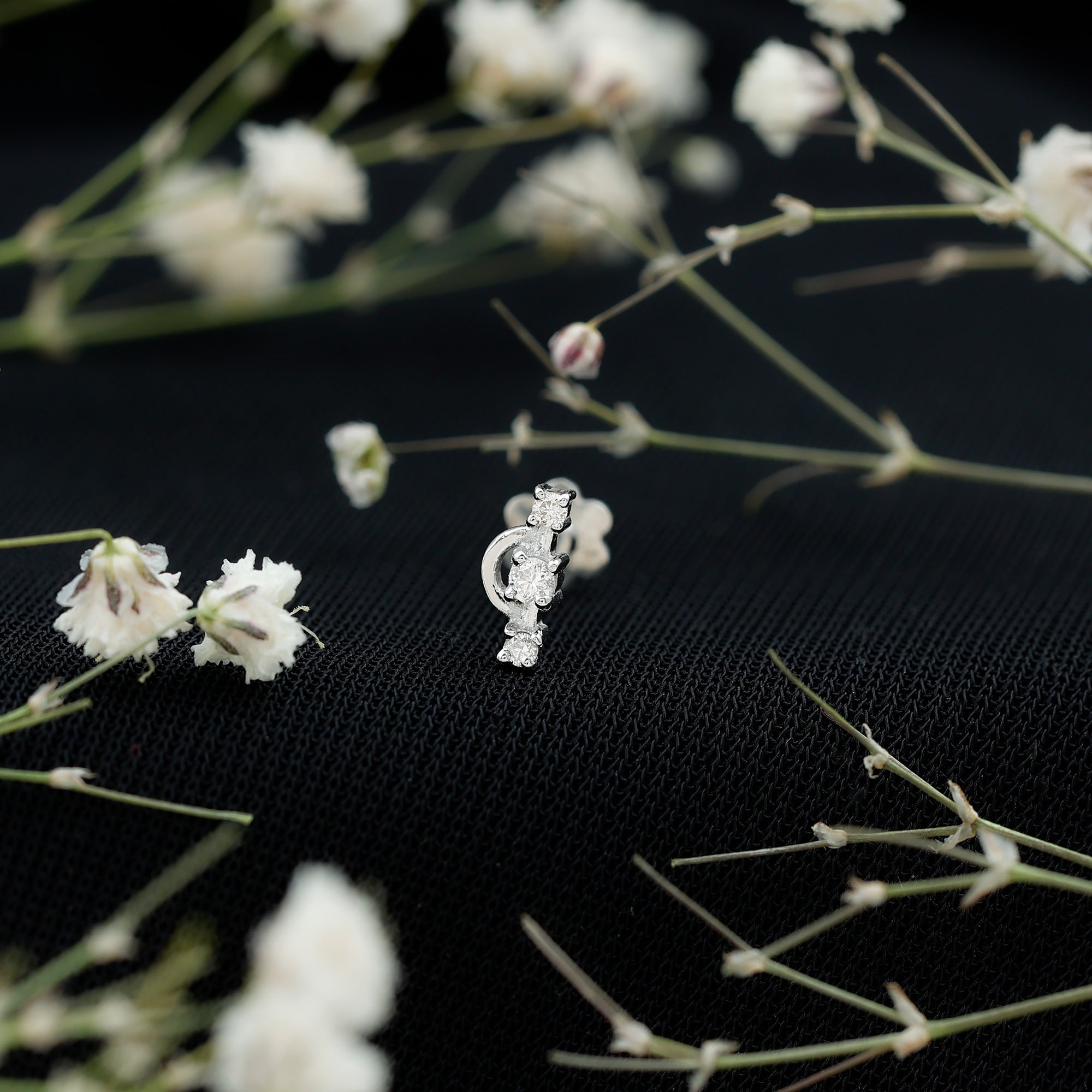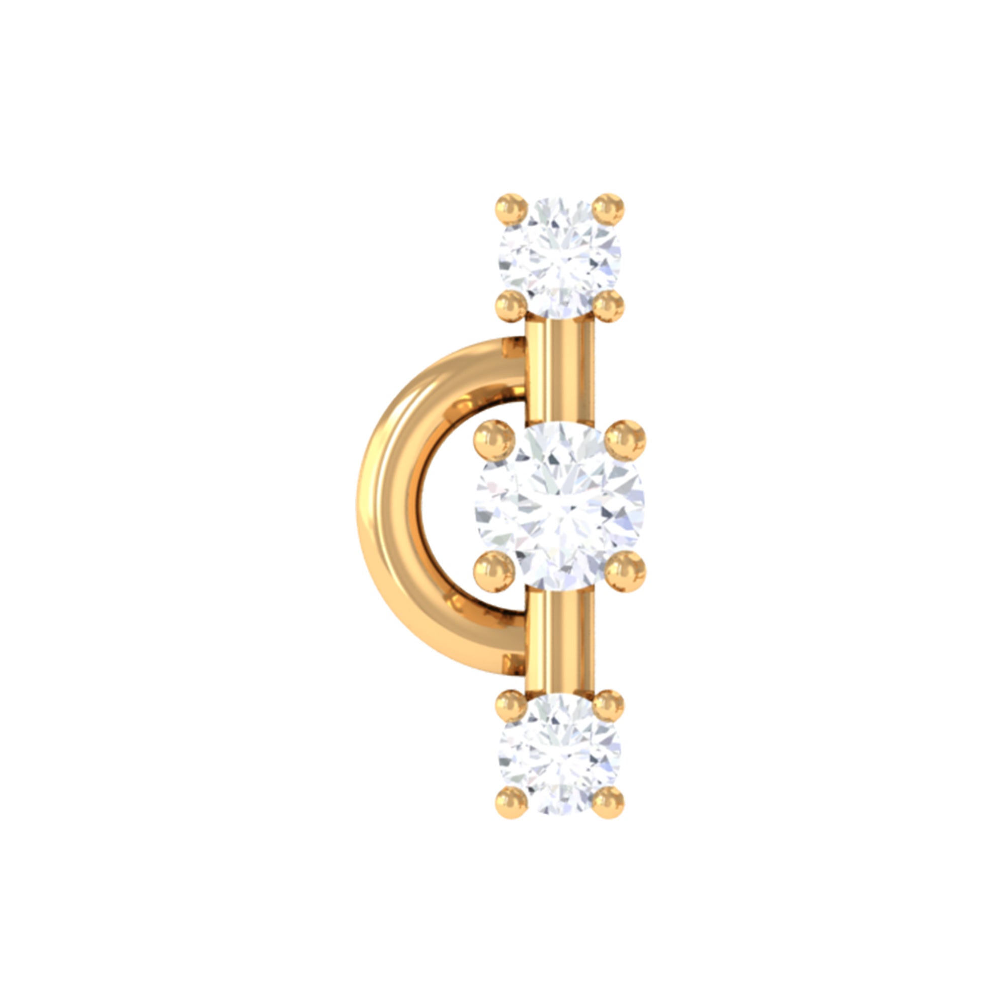 Magic begins in the smallest details, and this Real Diamond Earring is made to bring a little sparkle to everyday life. Featuring three round cut diamonds set in secure prongs, this earring catches the light beautifully, creating a subtle yet noticeable shine. Each diamond is carefully chosen for clarity and brilliance, making this piece both delicate and eye-catching. The earrings unique design allows it to be worn in multiple piercings, including the tragus, helix, cartilage, conch, rook, or upper lobe. Its versatility makes it a valuable addition to any jewelry collection, as it can complement other earrings or stand alone as a simple statement. For comfort and practicality, this Diamond Helix Earring features a flat back closure. This ensures it stays secure throughout the day while remaining comfortable even during sleep, making it suitable for continuous wear without irritation. Its lightweight design adds to its ease of wear, making it perfect for everyday use or for special occasions. Crafted with care and attention to detail, this Diamond Tragus Earring combines modern style with timeless elegance.