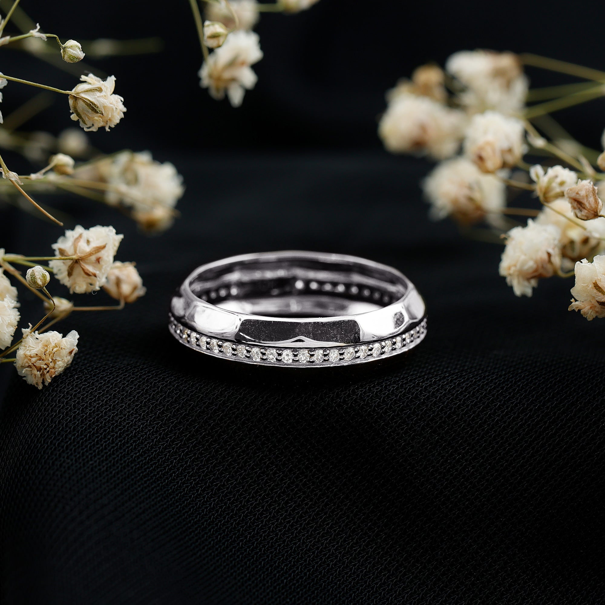 Capture the essence of everlasting love with an eye-catching Diamond Eternity Band Ring. This exquisite ring features a continuous loop of brilliant, Round Diamond that symbolize an unending bond. This timeless piece exudes elegance and sophistication with textured gold on the band. The sparkle of each diamond is accentuated by the carefully crafted Prong Setting, ensuring maximum brilliance from every angle with this Wedding Band Ring. Whether worn alone or paired with an engagement ring, this Eternity Wedding Ring radiates timeless beauty and serves as a powerful emblem of enduring commitment. Celebrate your love story with a symbol as eternal as your devotion with this April Birthstone Ring.