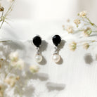 Natural Elegant Pearl Dangle Earrings with Black Onyx
