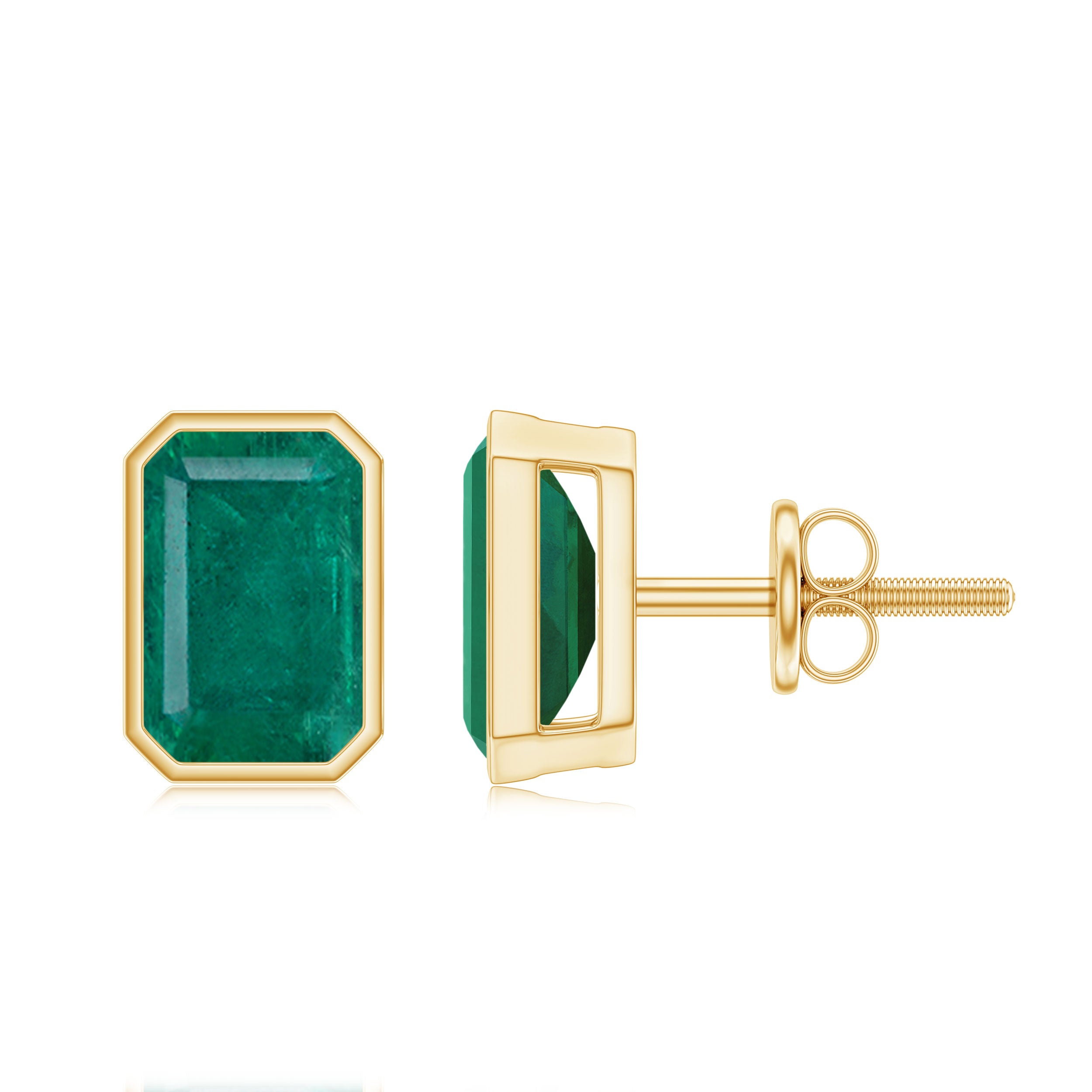 Add a hint of calmness to your look with these Green Emerald Stud Earrings. These May Birthstone Earrings feature a 4X6 MM emerald cut natural emerald securely placed in bezel setting. These Solitaire Earrings invoke love, loyalty, wisdom, healing, protection, and even wealth and prosperity. They dazzle with the classic shine of AAA Quality Emerald, which makes them perfect to complete the look for a special event. These Emerald Cut Emerald Earrings can be an ideal gift option for the May-borns. Style them regularly to add a pop of color to your everyday fits or take compliments by wearing them on special occasion, these Earrings with Screw on Backs surely take your look to the next level. Delivered to you in a premium quality jewelry box, ensuring secure storage when not in use, with a certificate of authenticity.