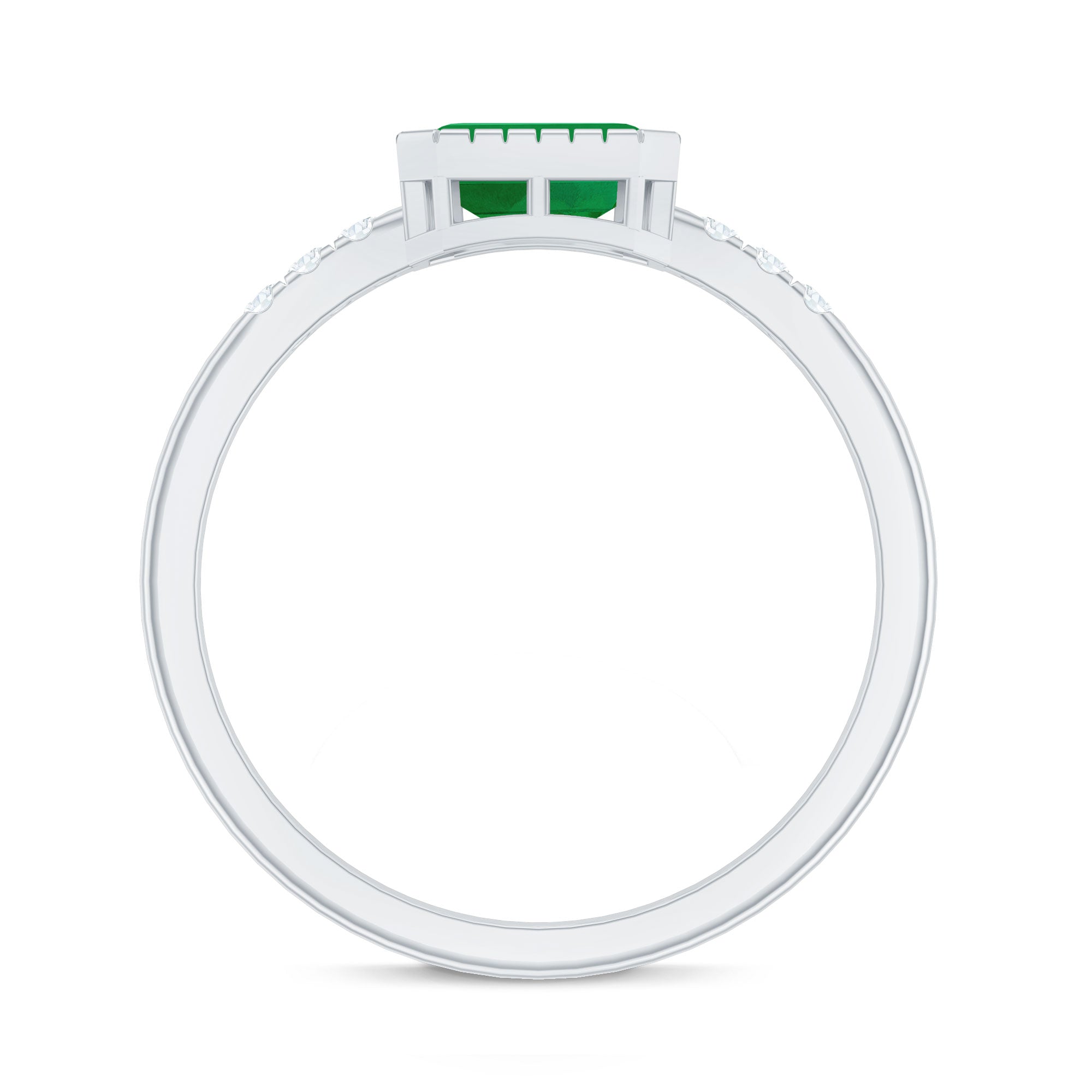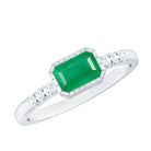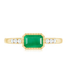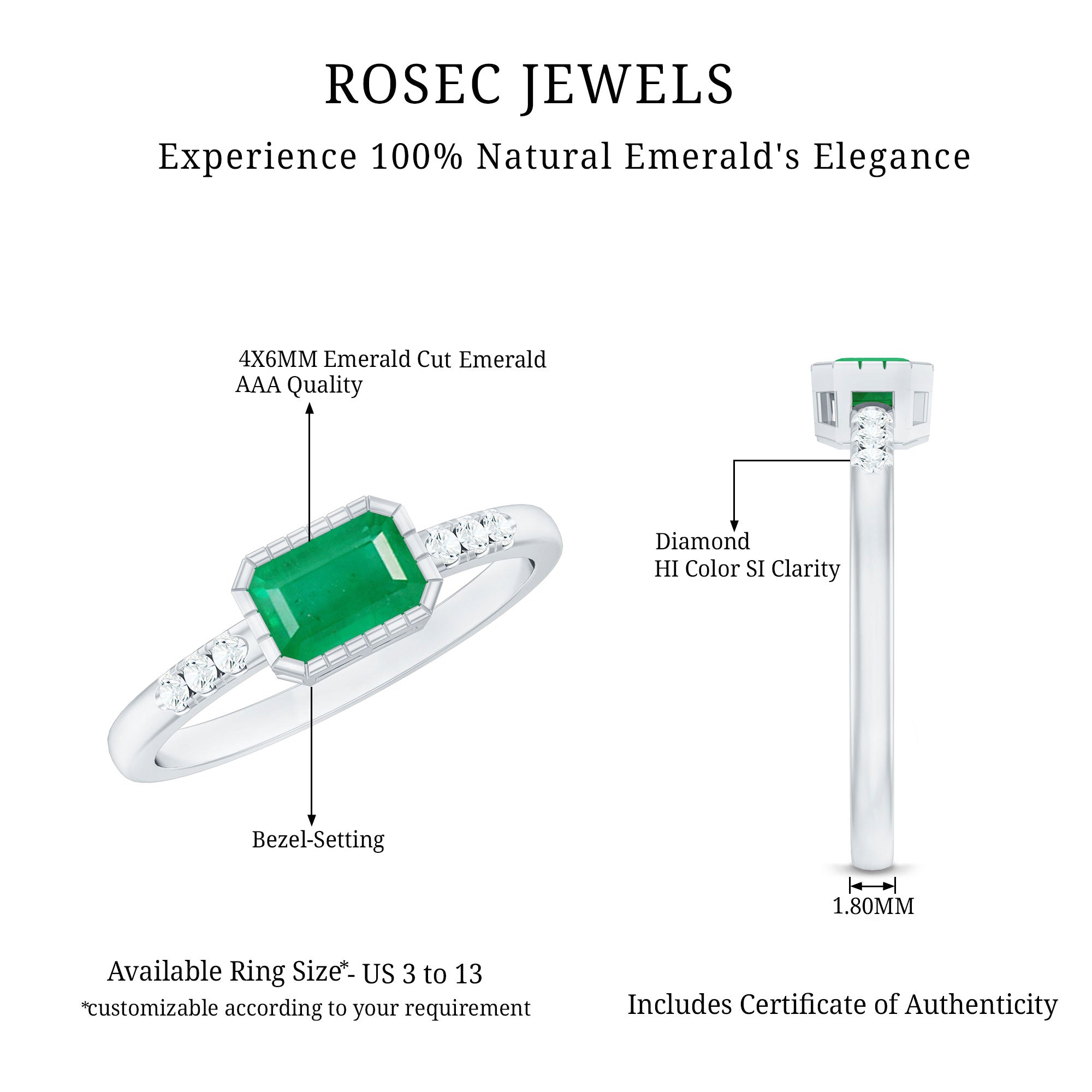 Turn every glance into a moment of awe with this Emerald Cut Engagement Ring, a dazzling celebration of love that is both modern and timeless. This Minimal Engagement Ring features a horizontally set 4X6 mm Emerald Cut Emerald stone set in Engraved Bezel Setting that captivates with its green hue, embodying the enduring promise of a shared future. Flanked by sparkling Diamond stones on either side, this East West Engagement Ring sparkles with a refined elegance, each facet catching the light like the small, cherished moments that make love extraordinary. Its East West style gives a contemporary twist to a classic emerald cut, creating a sleek, sophisticated design that speaks to individuality while honoring timeless romance. Perfect for engagements or as a meaningful gift for someone truly special, this Emerald Diamond Engagement Ring transforms a personal commitment into a wearable symbol of devotion. Presented in a signature jewelry box and available in a variety of sizes, this Bezel Set Engagement Ring is designed to be cherished, admired and worn every day as a reminder of the depth and beauty of true love.