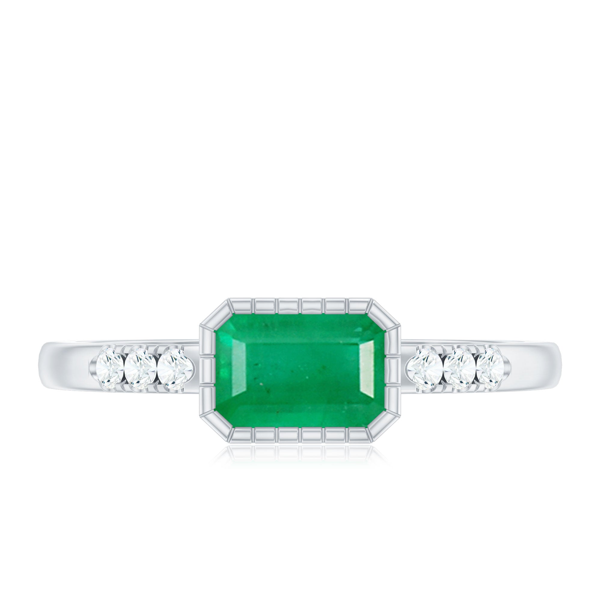 Natural Emerald Diamond Emerald Cut Engagement Ring in East West Style