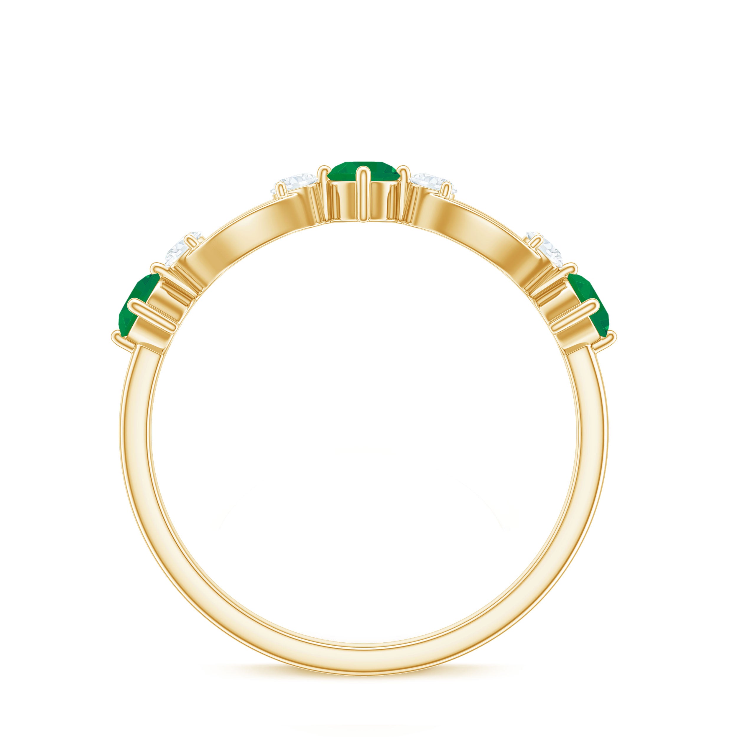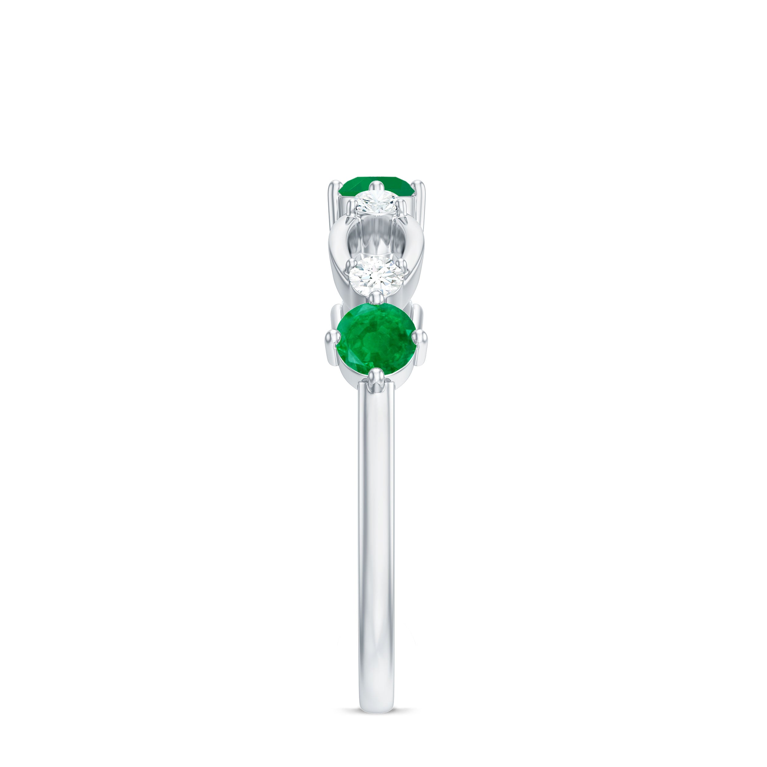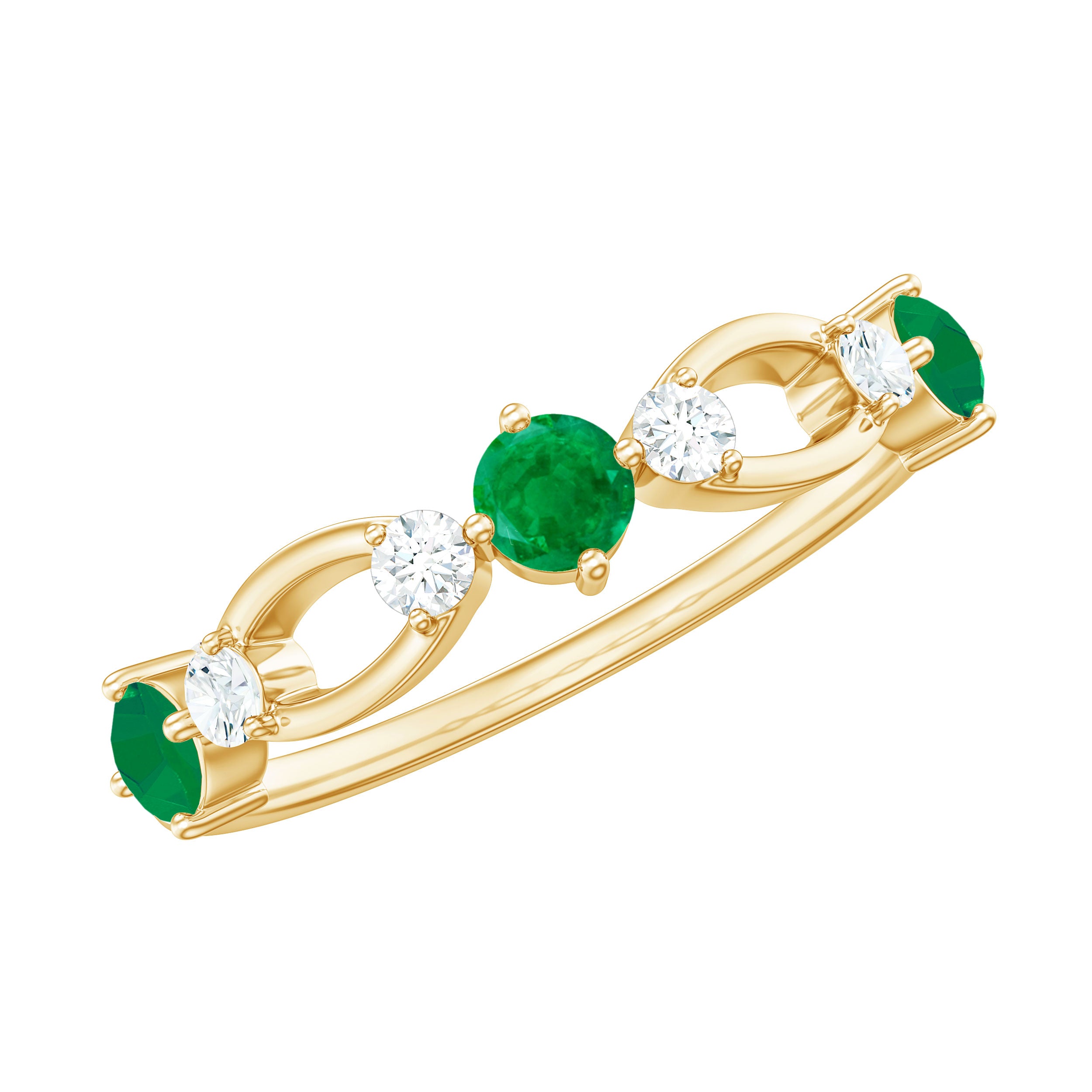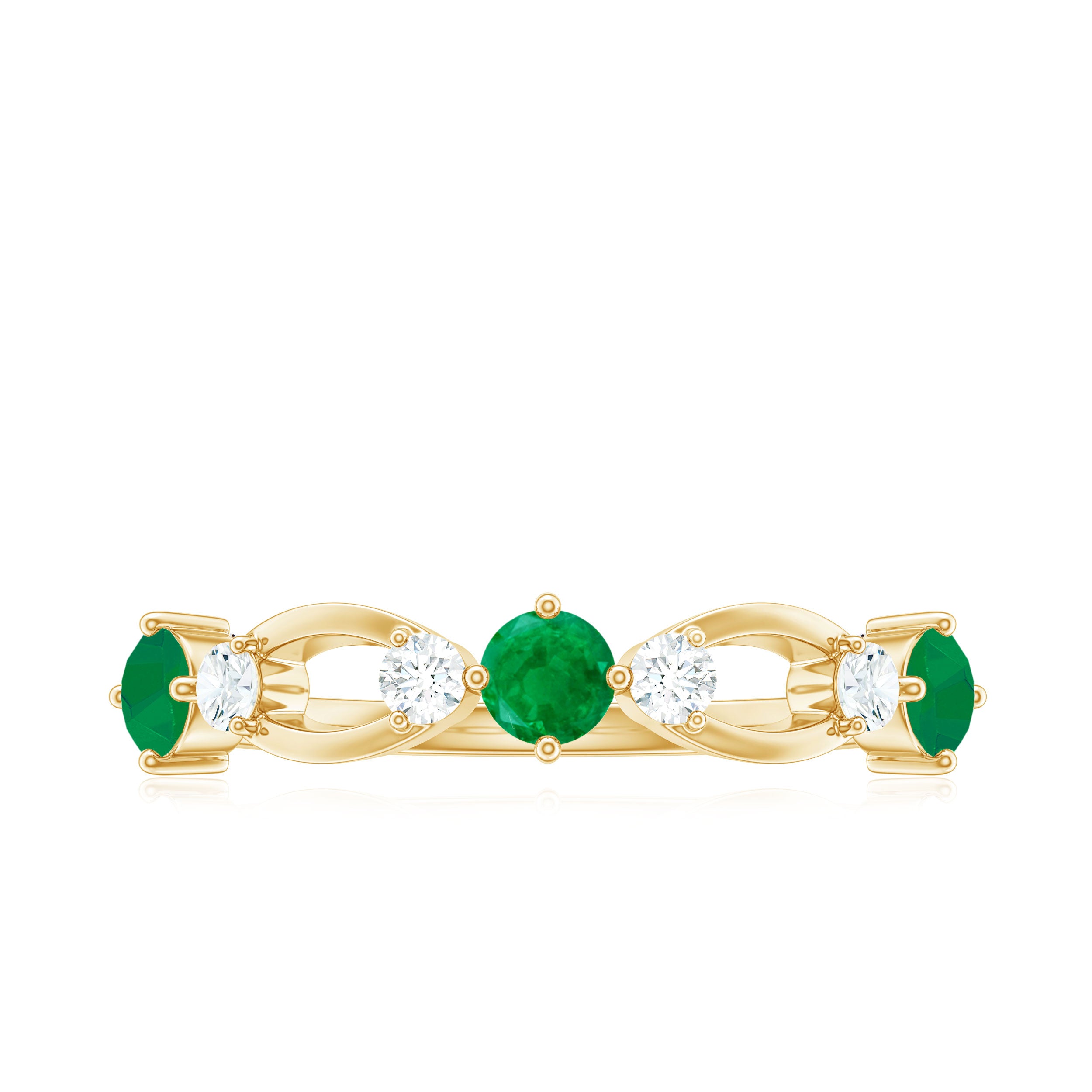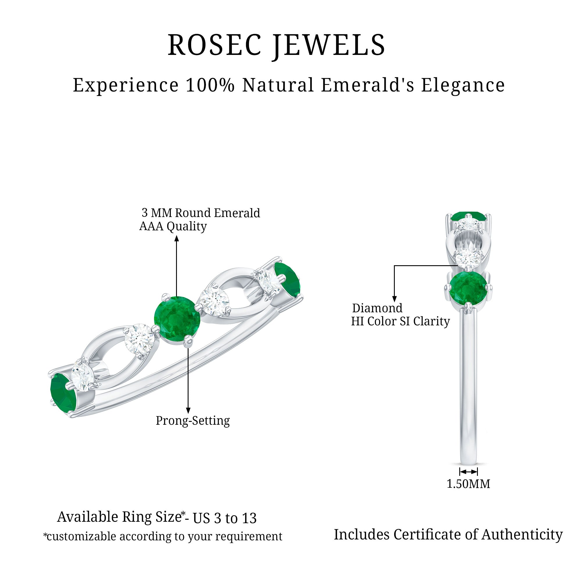 Delicate, modern and endlessly meaningful, this Emerald Anniversary Ring is a radiant celebration of love that lasts beyond a lifetime. The design whispers sophistication, featuring a graceful Infinity Shaped Shank that beautifully symbolizes eternal connection and unbreakable devotion. Adorned with 3 mm Round Shape Emerald and 2 mm Diamond stones that glimmer in perfect harmony, this Infinity Ring represents the balance of passion, trust and timeless romance. The minimalist design makes it perfect for everyday wear, while its symbolism makes it a powerful expression of enduring love. Whether gifted on an anniversary or as a spontaneous reminder of affection, this Emerald Diamond Ring captures the beauty of two souls intertwined forever. Presented in a signature jewelry box and available in a range of sizes, this Emerald Ring for Women is a heartfelt promise.