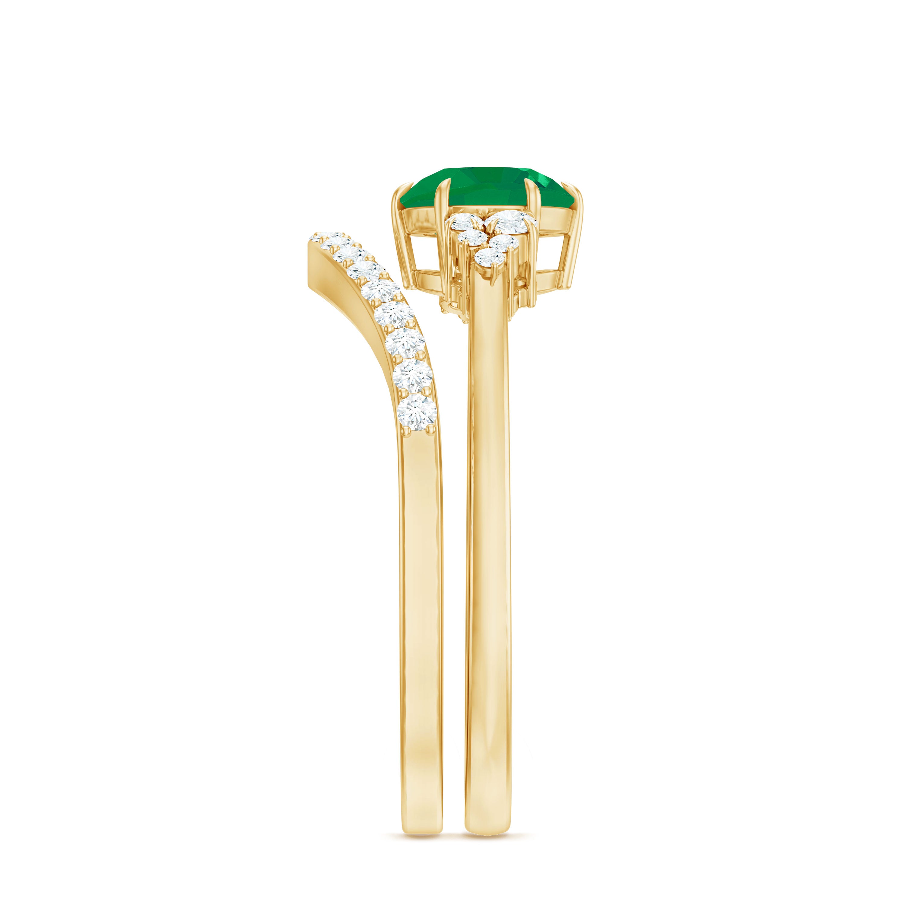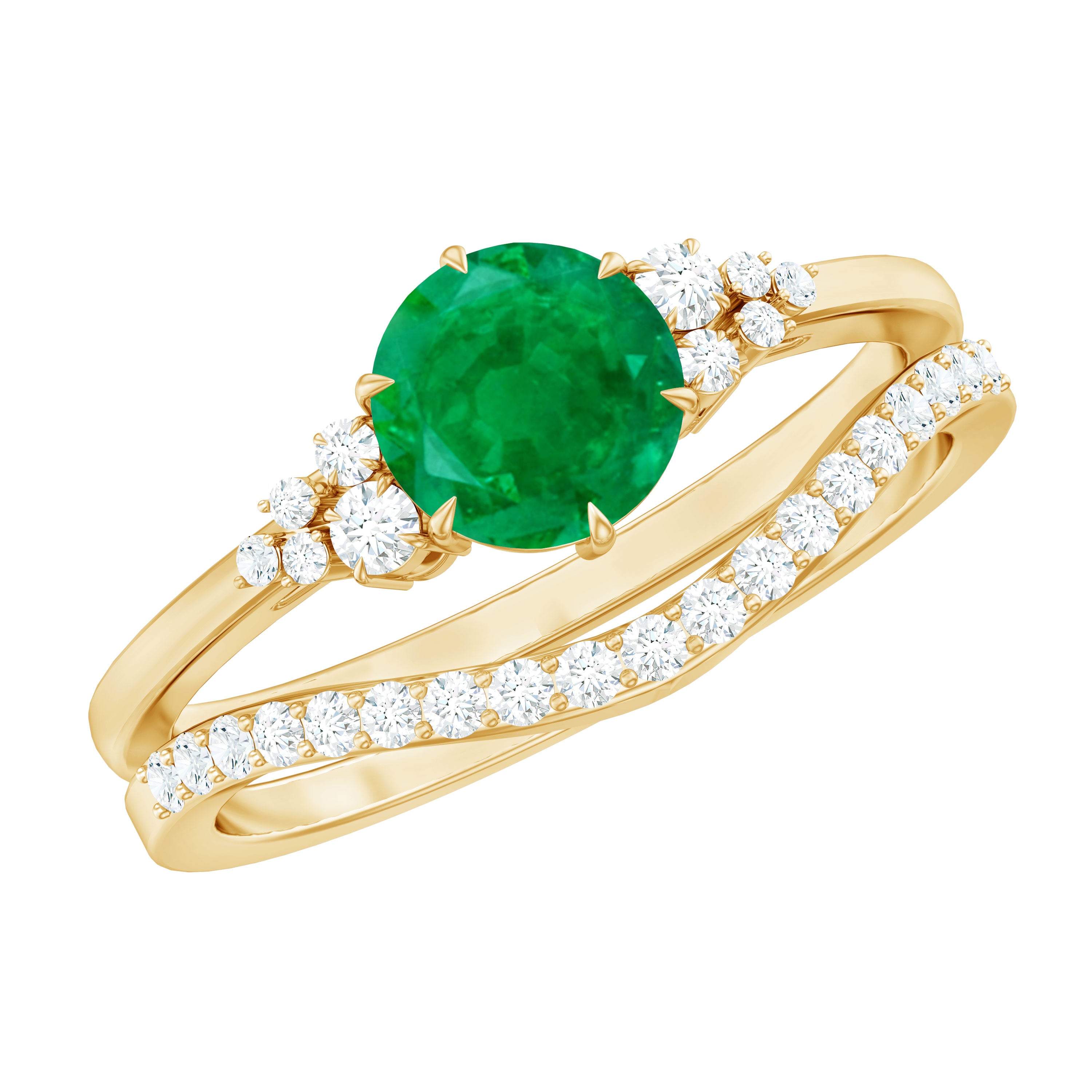 Celebrate a love that sparkles endlessly with this exquisite Wedding Bridal Ring Set. At the center of the Solitaire Engagement Ring is a 5 mm Round Shape Emerald set in 6 Claw Prong Setting that shines with a captivating glow, flanked by dazzling Diamond Side Stones that catch the light from every angle. Placed perfectly alongside it, the gracefully Curved Wedding Band is adorned with shimmering Diamond stones, designed to complement the engagement ring with an elegant embrace. Together, they create a harmonious Wedding Engagement Ring Set that embodies romance, devotion and timeless beauty. Available in various ring sizes, this Emerald Diamond Engagement Ring with Enhancer ensures the perfect fit for your forever promise. Presented in a signature jewelry box, this Emerald Wedding Ring Set is ready to turn any proposal, anniversary or intimate celebration into an unforgettable memory. This Emerald Engagement Ring and Band is a symbol of commitment and a radiant declaration of eternal love.