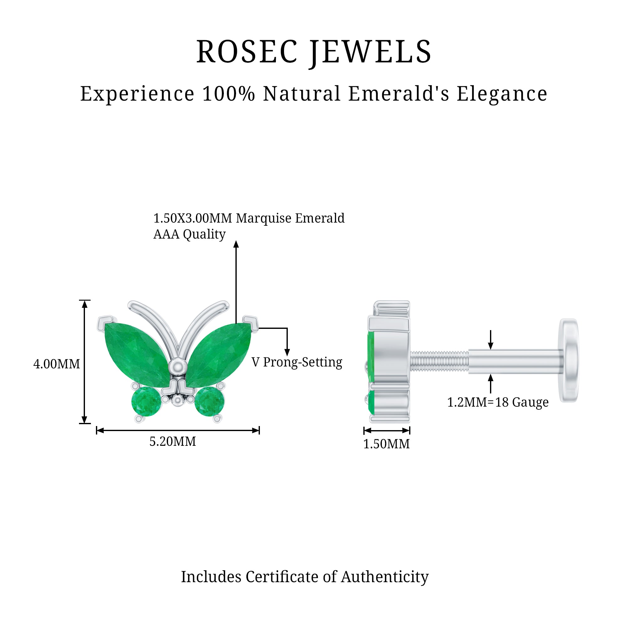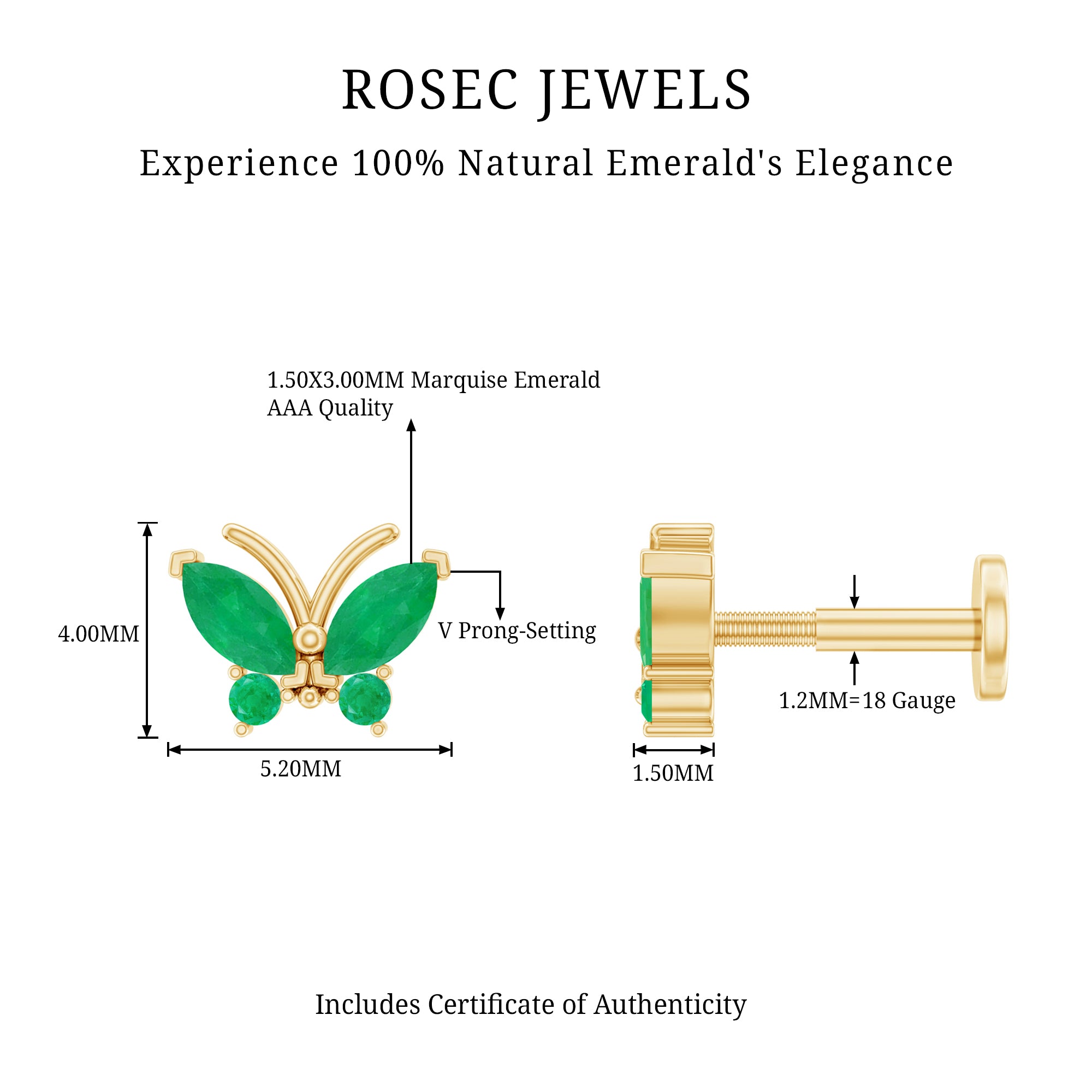 The elegant and beautiful Emerald Butterfly Earring, featuring Marquise and Round Cut Emerald assembled in a Butterfly design, composed of shiny Gold Metal. You can style this Cute Earring on your multiple piercings like Helix, Cartilage, Conch, Tragus, or Upper Lobe Piercing. This Minimalist Earring is the perfect gift for her, whether its for a Birthday, Anniversary, or any other special occasion. It is a beautiful and thoughtful way to show someone you care.