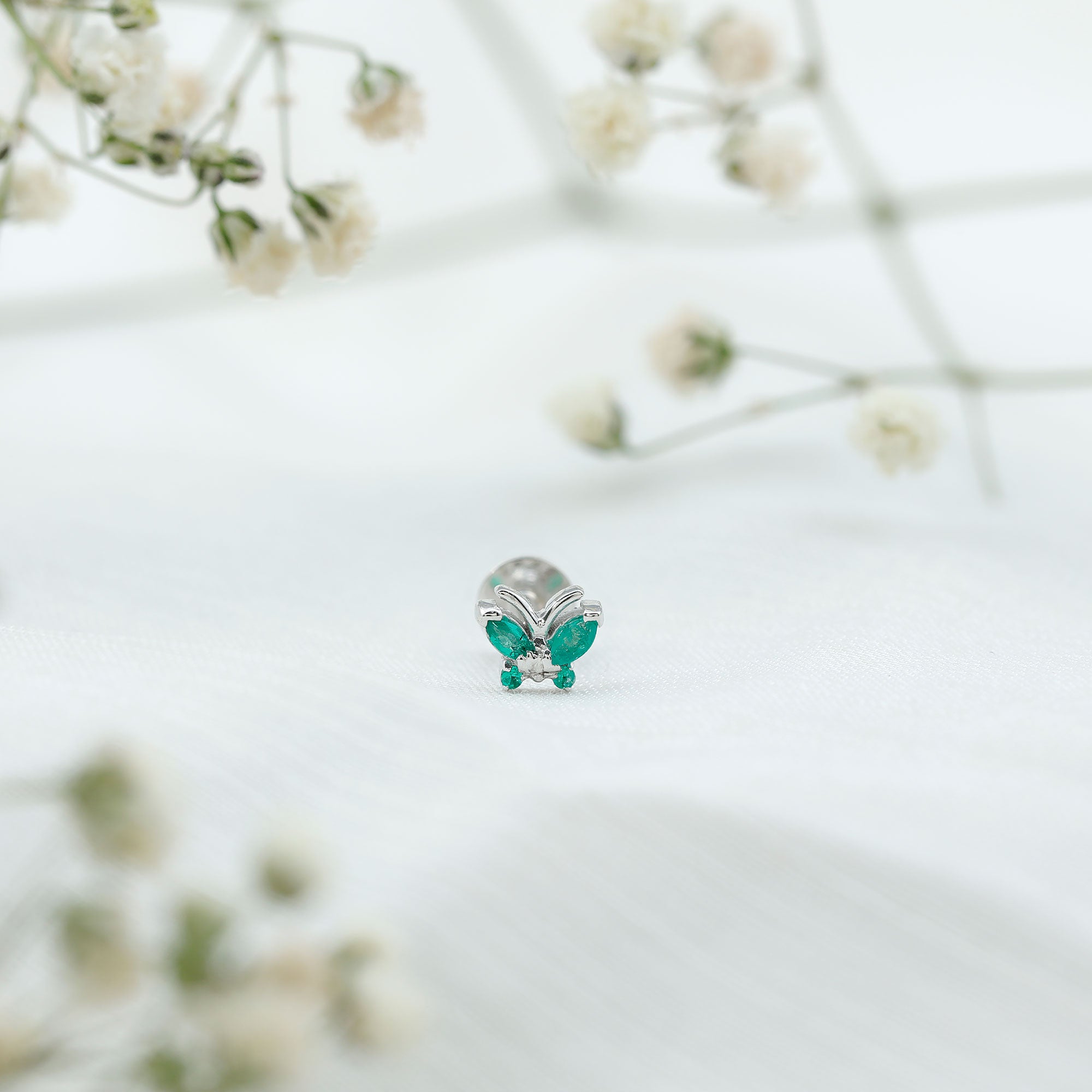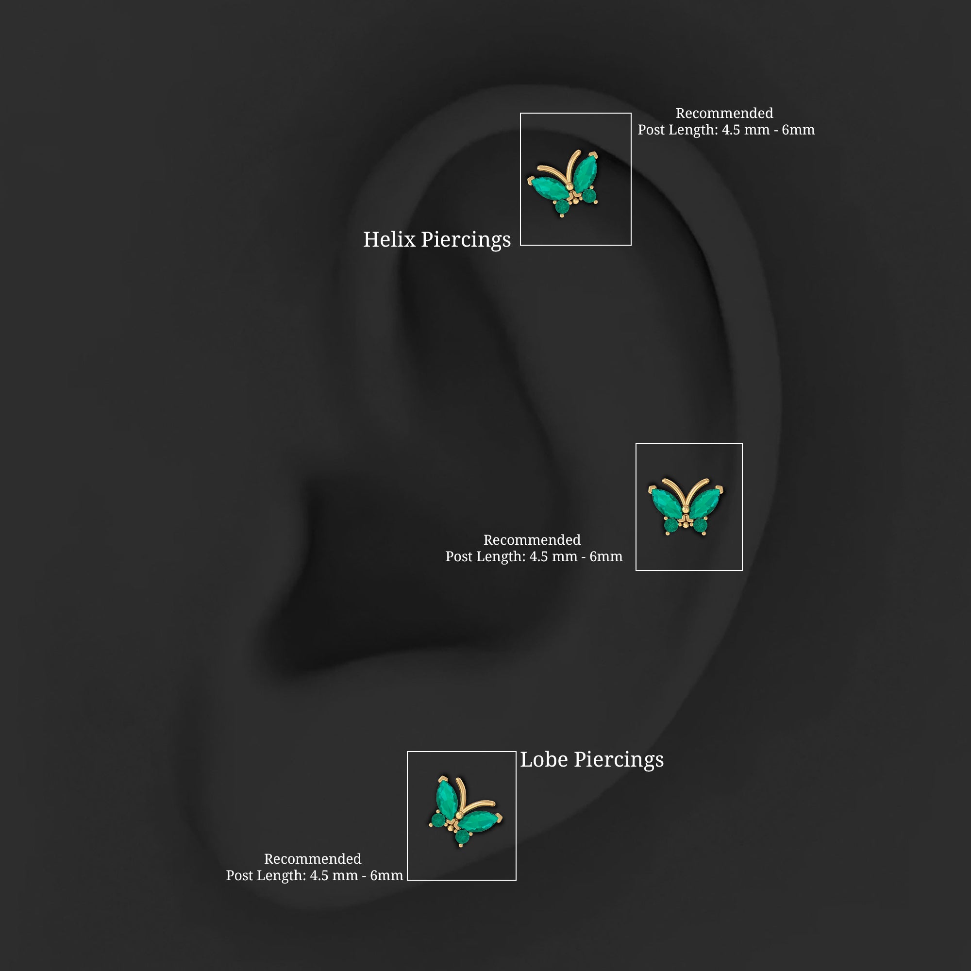 Natural Emerald Gold Butterfly Earring for Cartilage Piercing