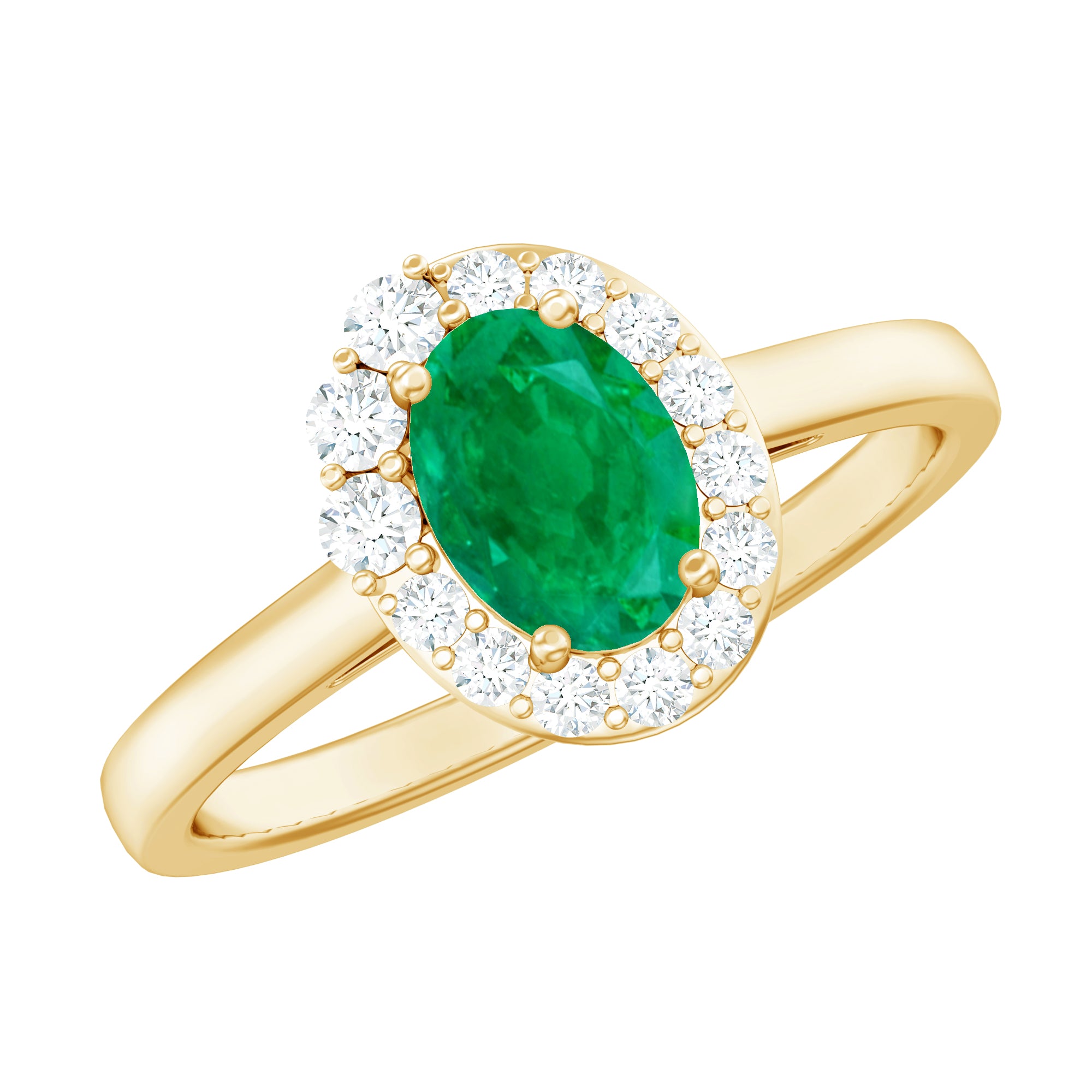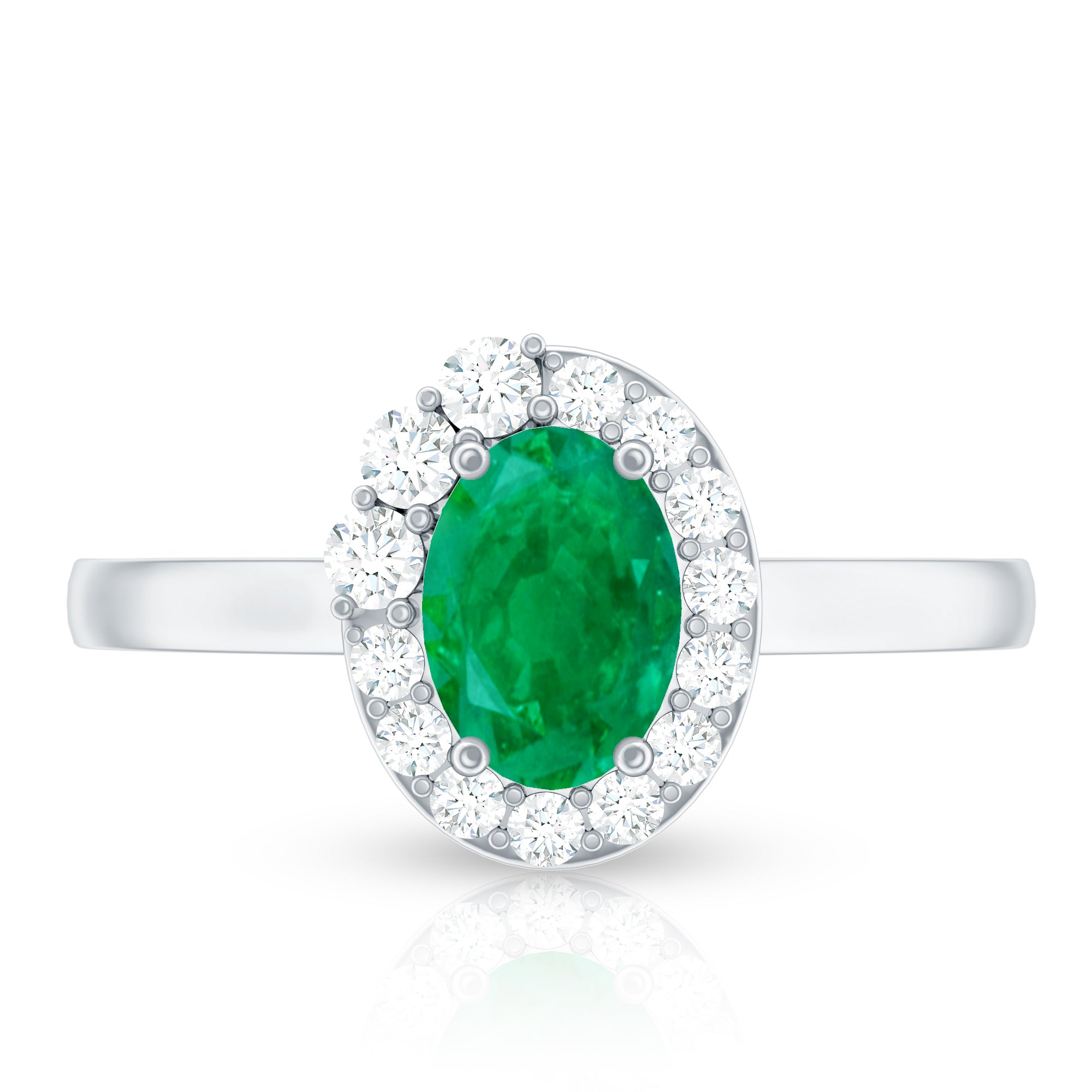 Natural Emerald Oval Engagement Ring with Diamond Halo