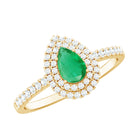 Natural Emerald Teardrop Engagement Ring with Diamond Double Halo
