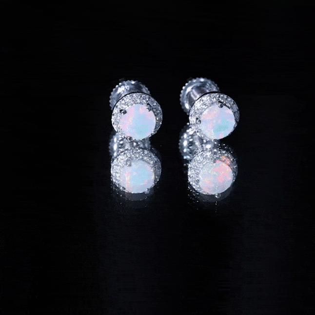 Natural Ethiopian Opal and Moissanite Halo Stud Earrings