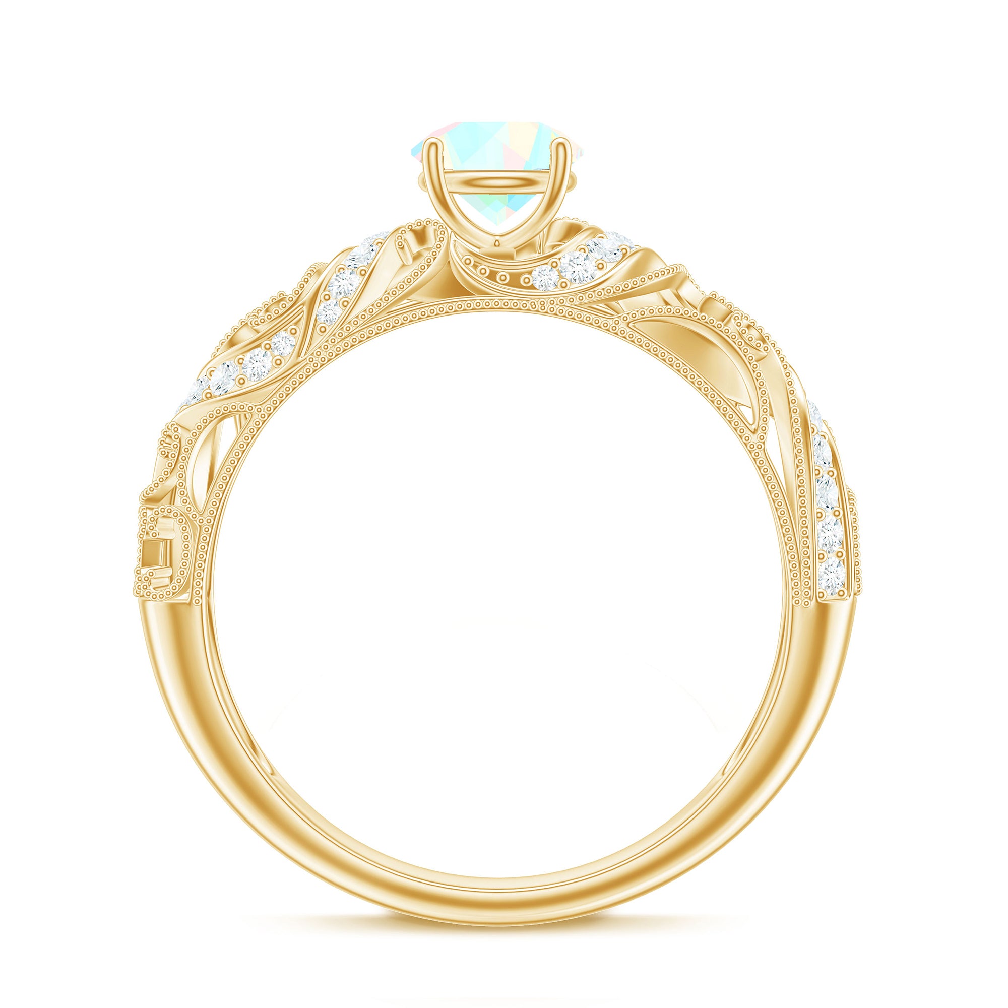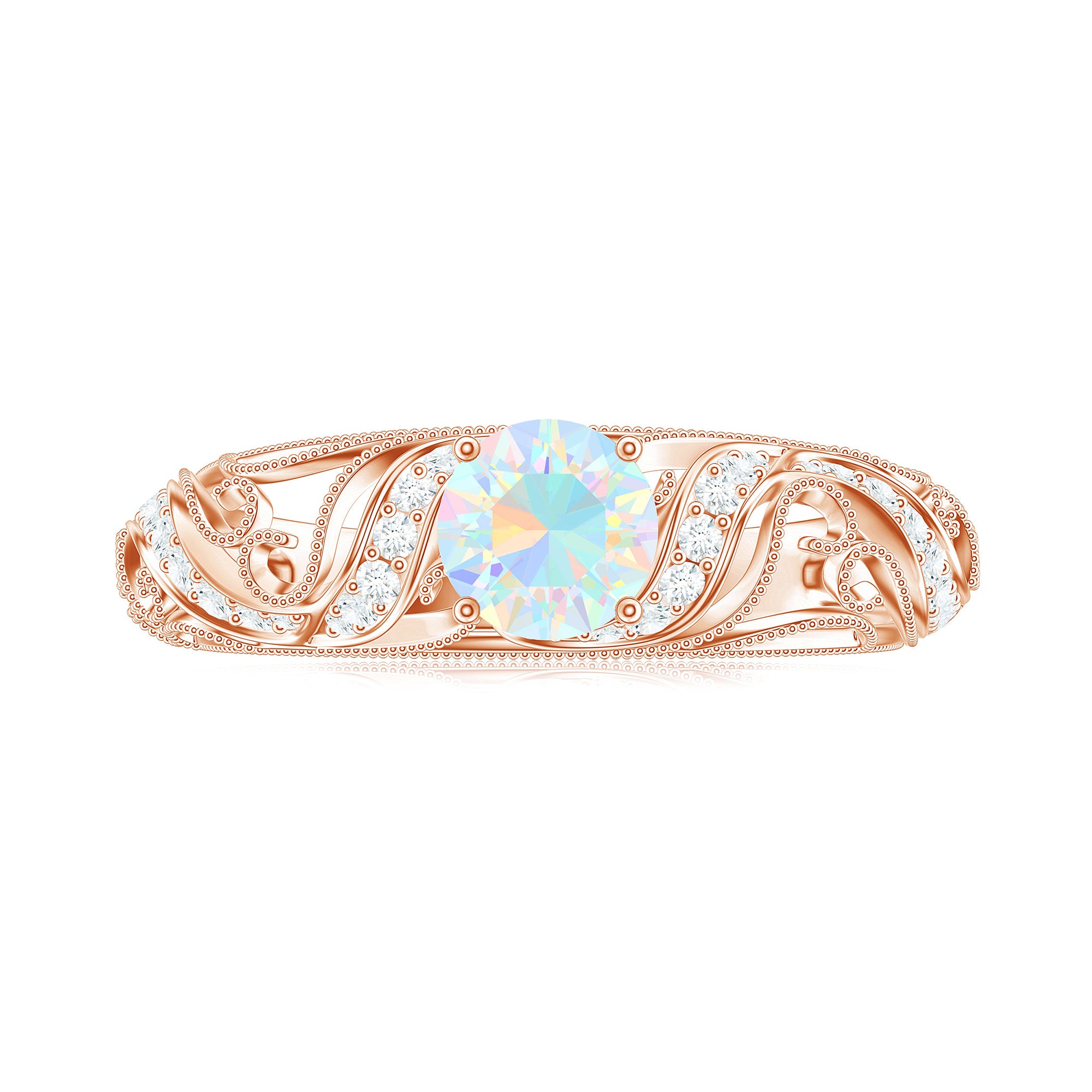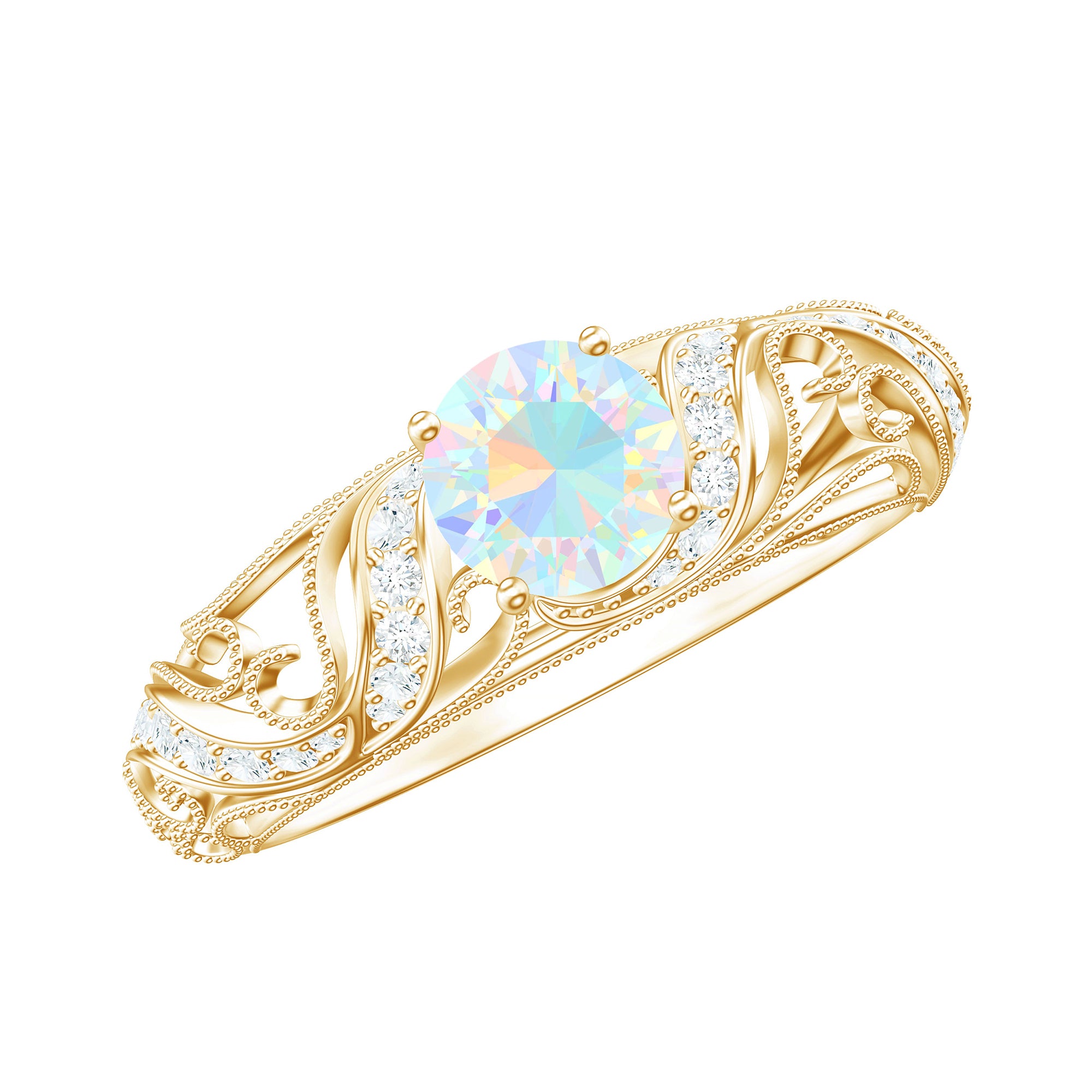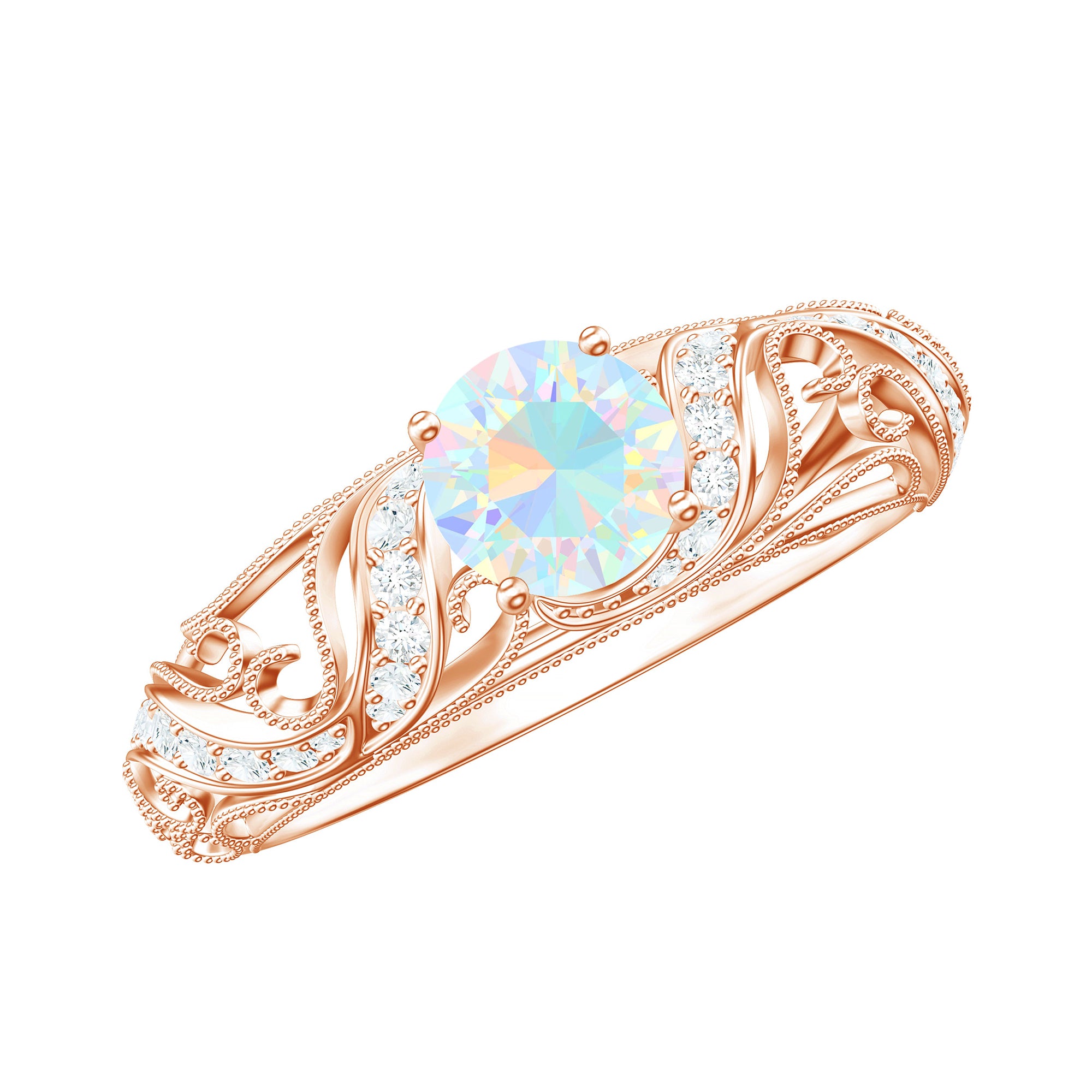 Embrace the world of vintage romance with this Vintage Inspired Engagement Ring, a mesmerizing blend of old-soul elegance and modern magic. At the center of this piece lies a captivating 6 mm Round Shape Ethiopian Opal set in Prong Setting. Framed by sparkling Diamond stones and intricate Beaded Detailing, the center stone is beautifully set within a vintage inspired band that echoes the grace of bygone eras. The delicate craftsmanship of band adds depth and texture, making this Opal Diamond Engagement Ring feel like an heirloom from day one. Perfect for the bride who adores classic aesthetics with a unique twist, this Real Opal Engagement Ring offers style and deep meaning. This Vintage Opal Engagement Ring arrives in a signature jewelry box, ready for that unforgettable moment, and is available in a range of sizes to ensure the ideal fit. Whether you are drawn to its antique charm or the glow of the opal, this Real Opal Engagement Ring is a celebration of eternal love.