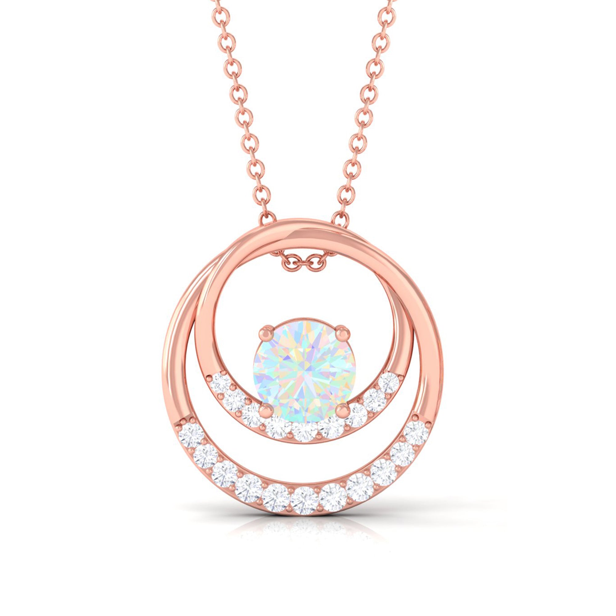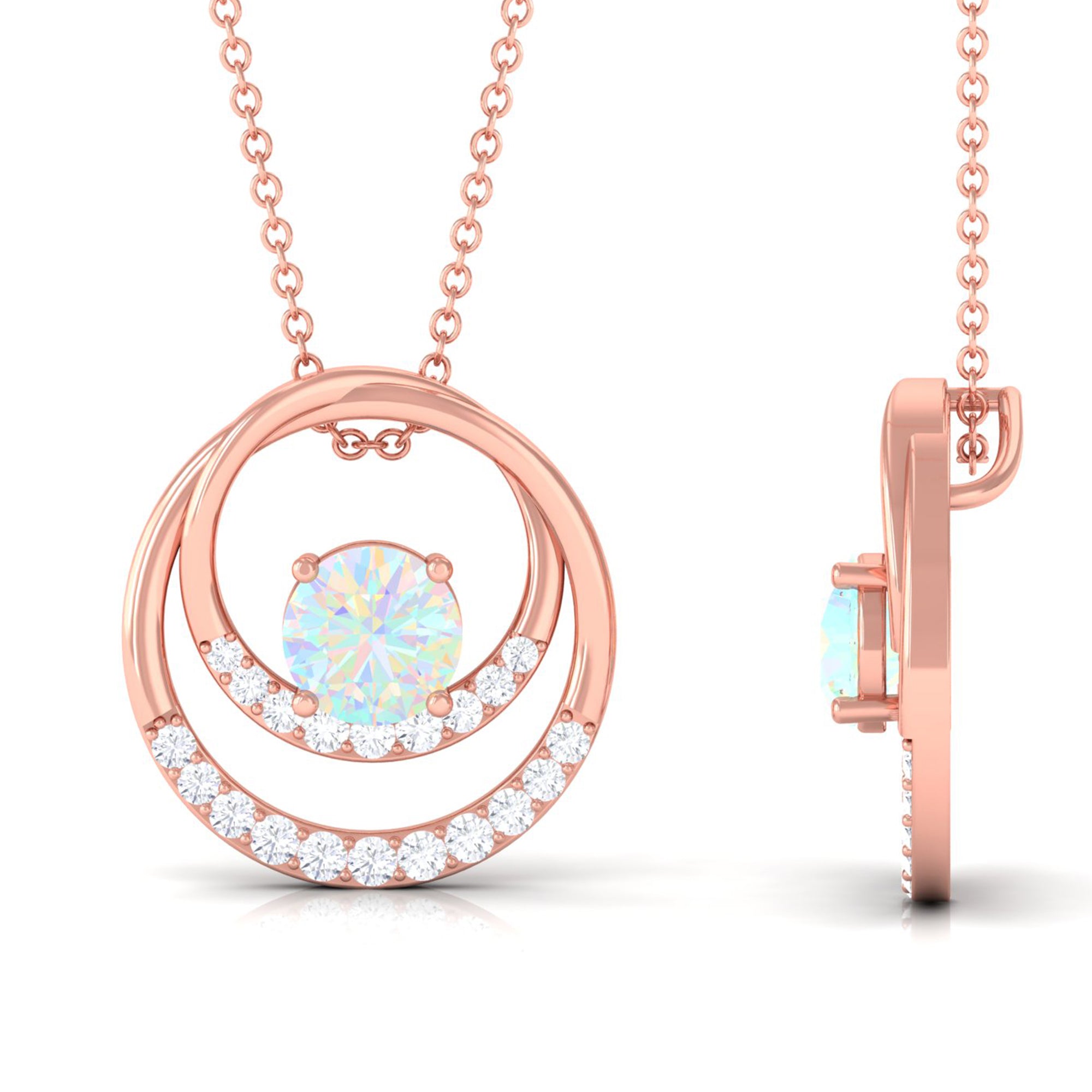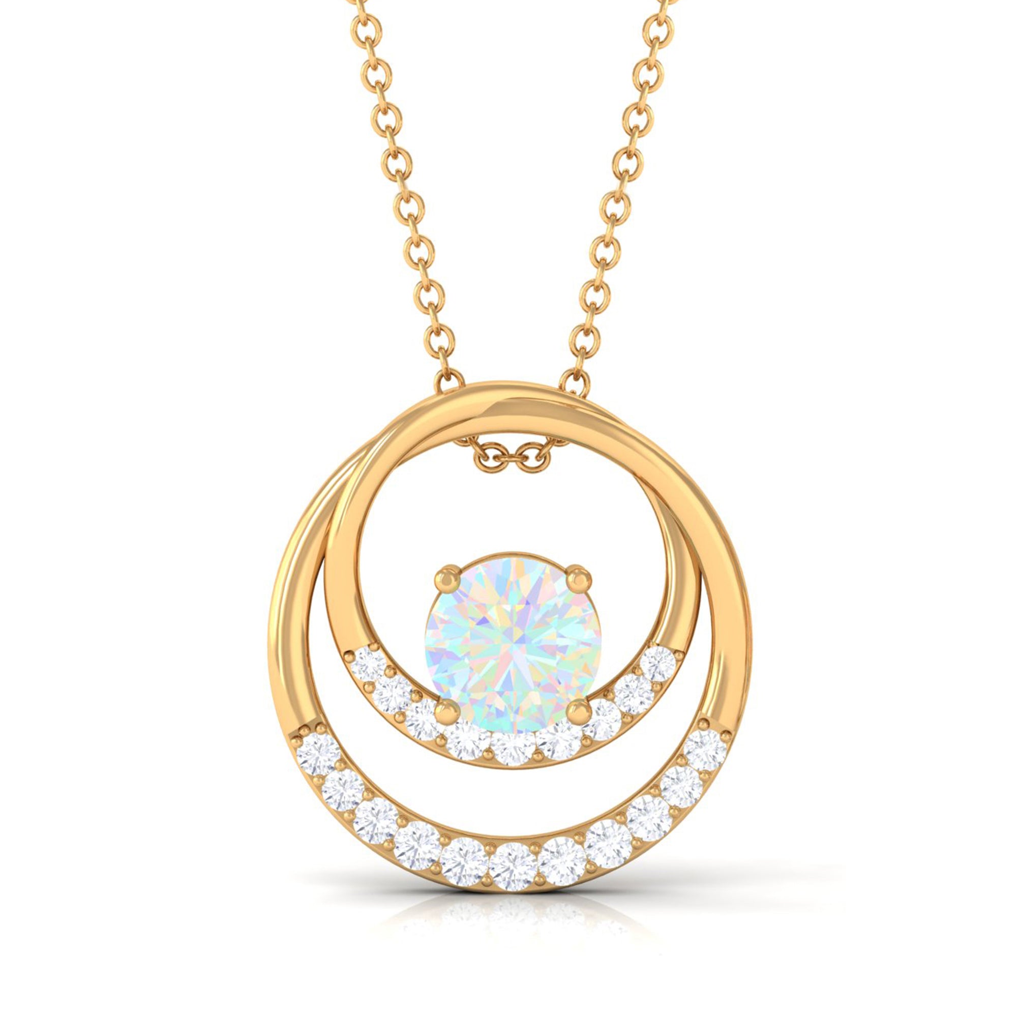Natural Ethiopian Opal Double Circle Pendant Necklace with Diamond