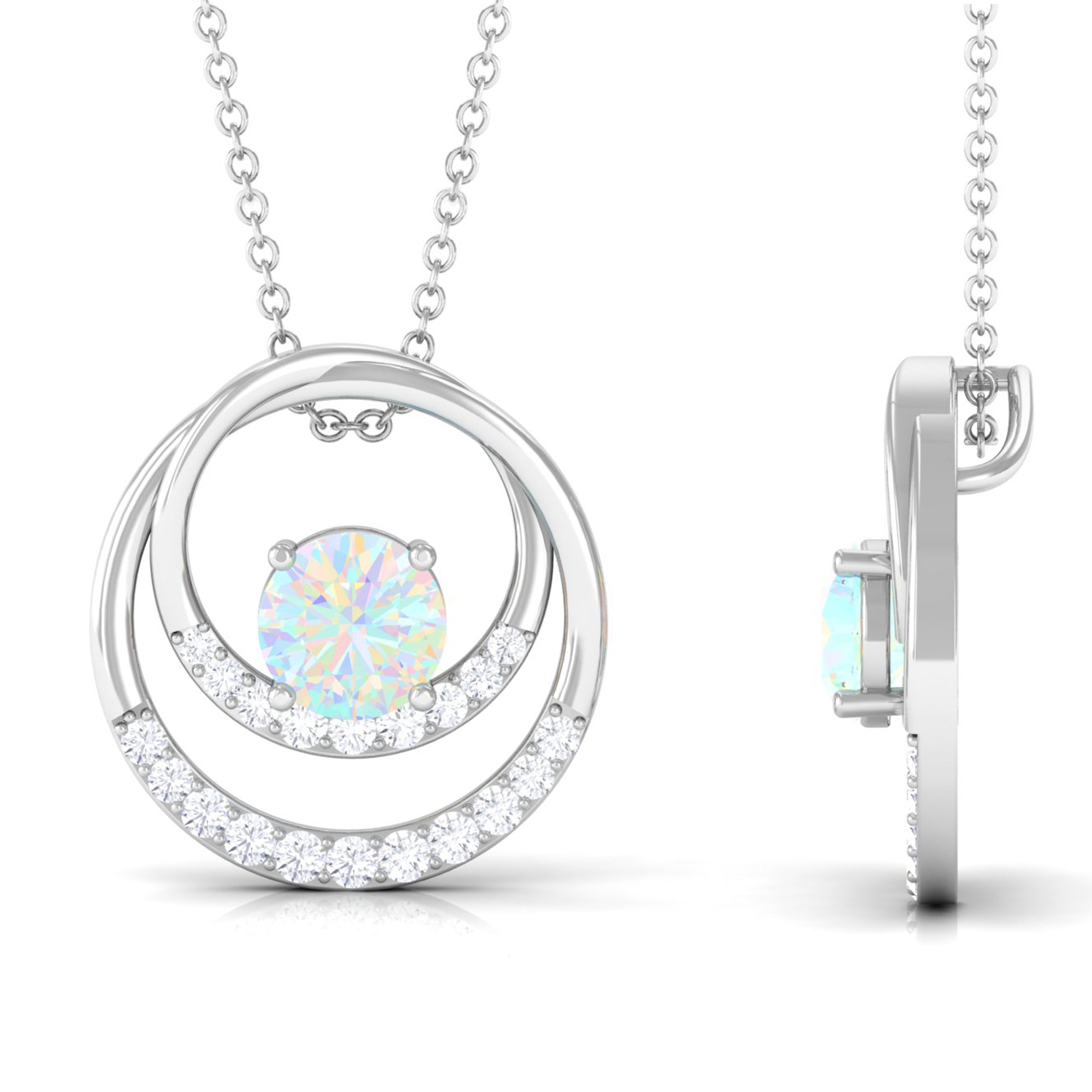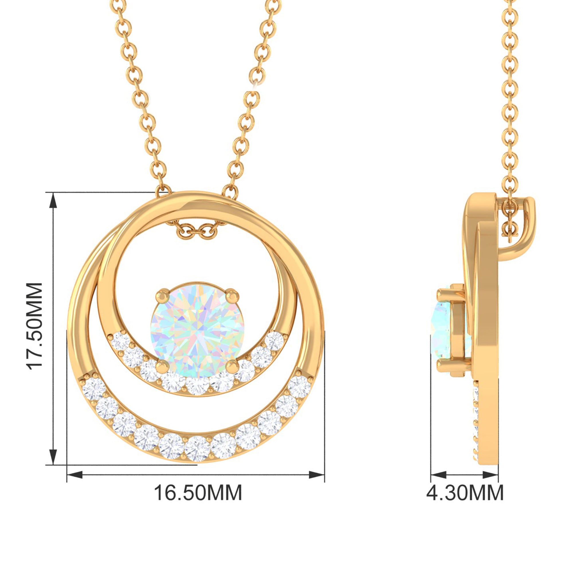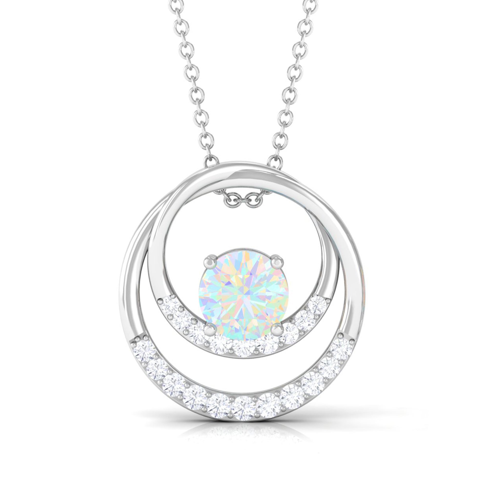 Natural Ethiopian Opal Double Circle Pendant Necklace with Diamond