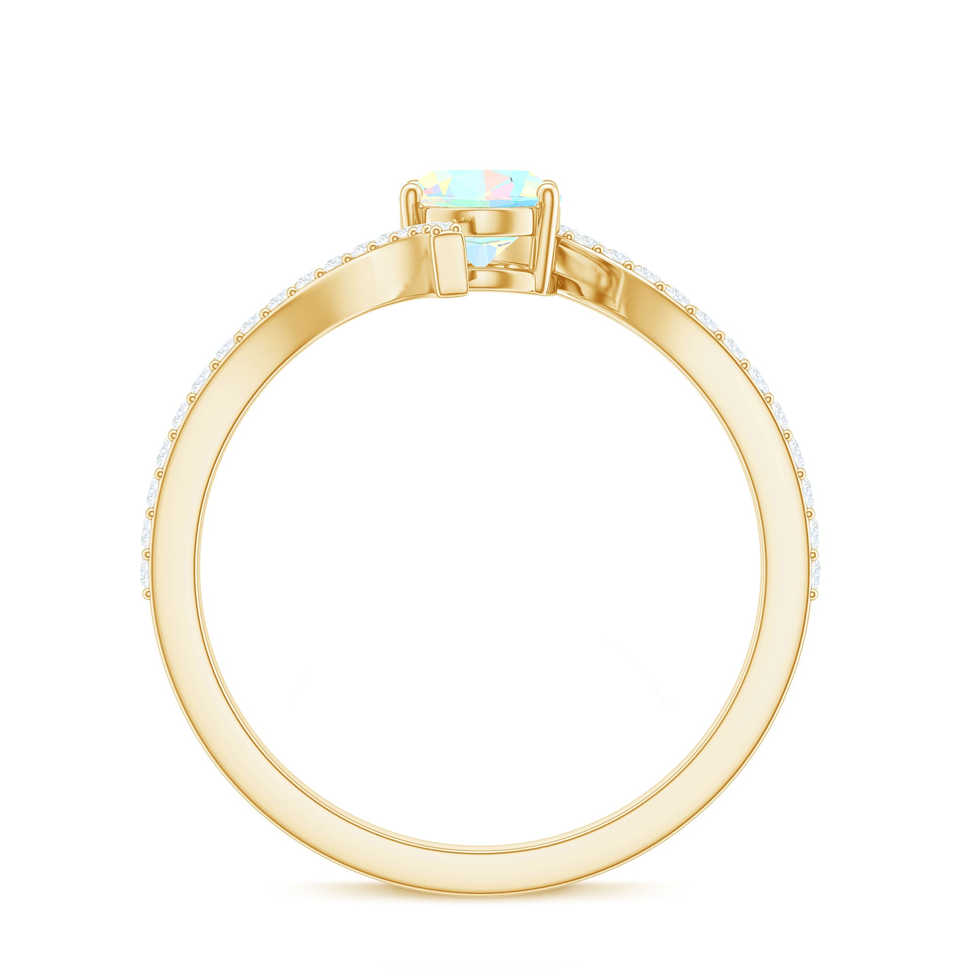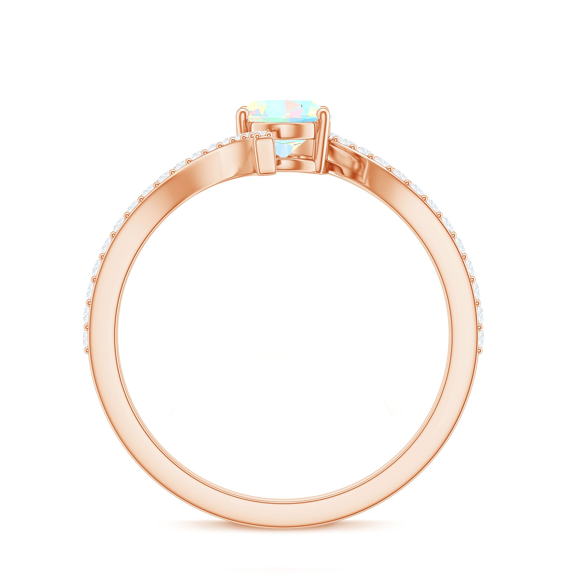 This Oval Engagement Ring is an enchanting declaration of love, designed to capture the essence of your deepest connection. The 5X7 mm Oval Shape Ethiopian Opal set in Prong Setting is the centerpiece. Surrounding it, the Diamond Bypass Shank gently wraps around the finger, creating a intertwining design that symbolizes the unity and eternal journey you will share. The Bypass Style reflects two hearts converging as one. Available in a variety of sizes and elegantly presented in a signature jewelry box, this Opal and Diamond Engagement Ring is a testament to a love that is as timeless as the stone it is set in. Whether you are preparing to say yes or already celebrating your forever, this breathtaking Bypass Engagement Ring with Opal is a reminder that love is as radiant and unique as the opal itself. Forever and always, this Ethiopian Opal Engagement Ring is the promise of your unbreakable bond.