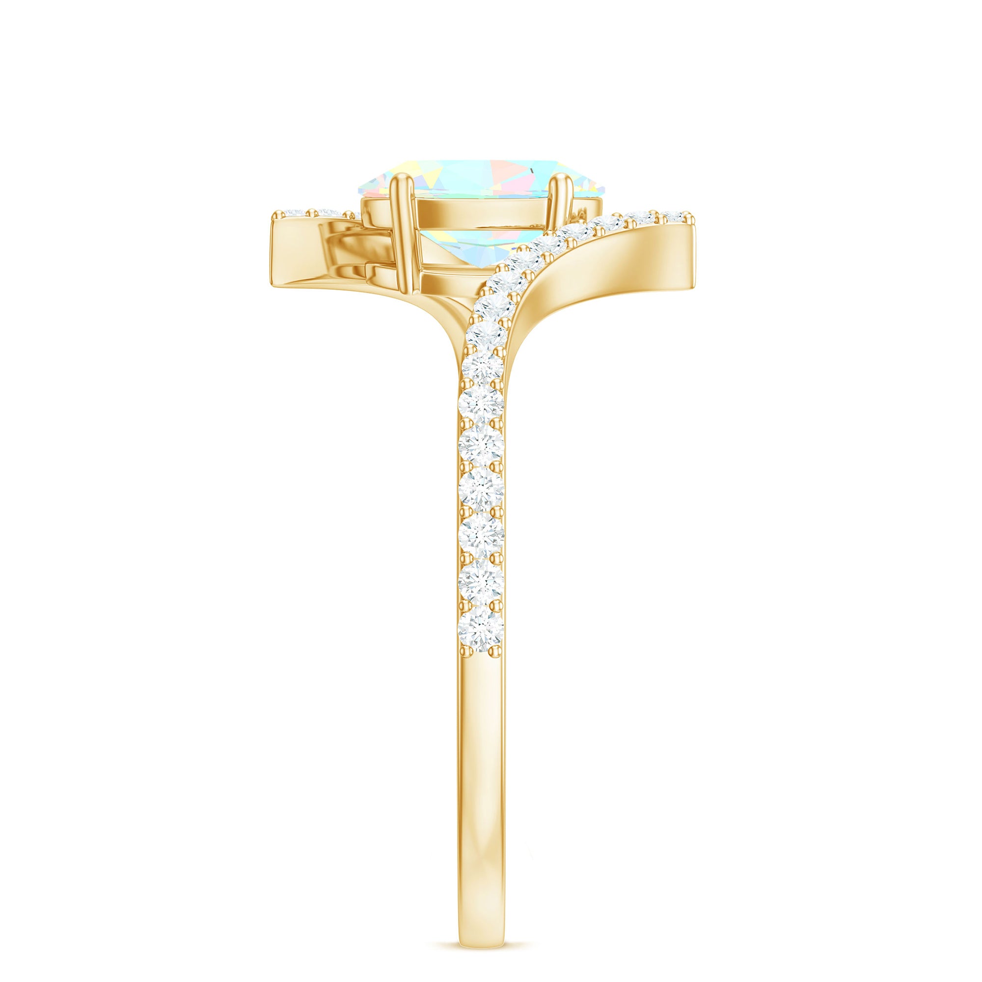 Natural Ethiopian Opal Oval Engagement Ring with Diamond Bypass Shank
