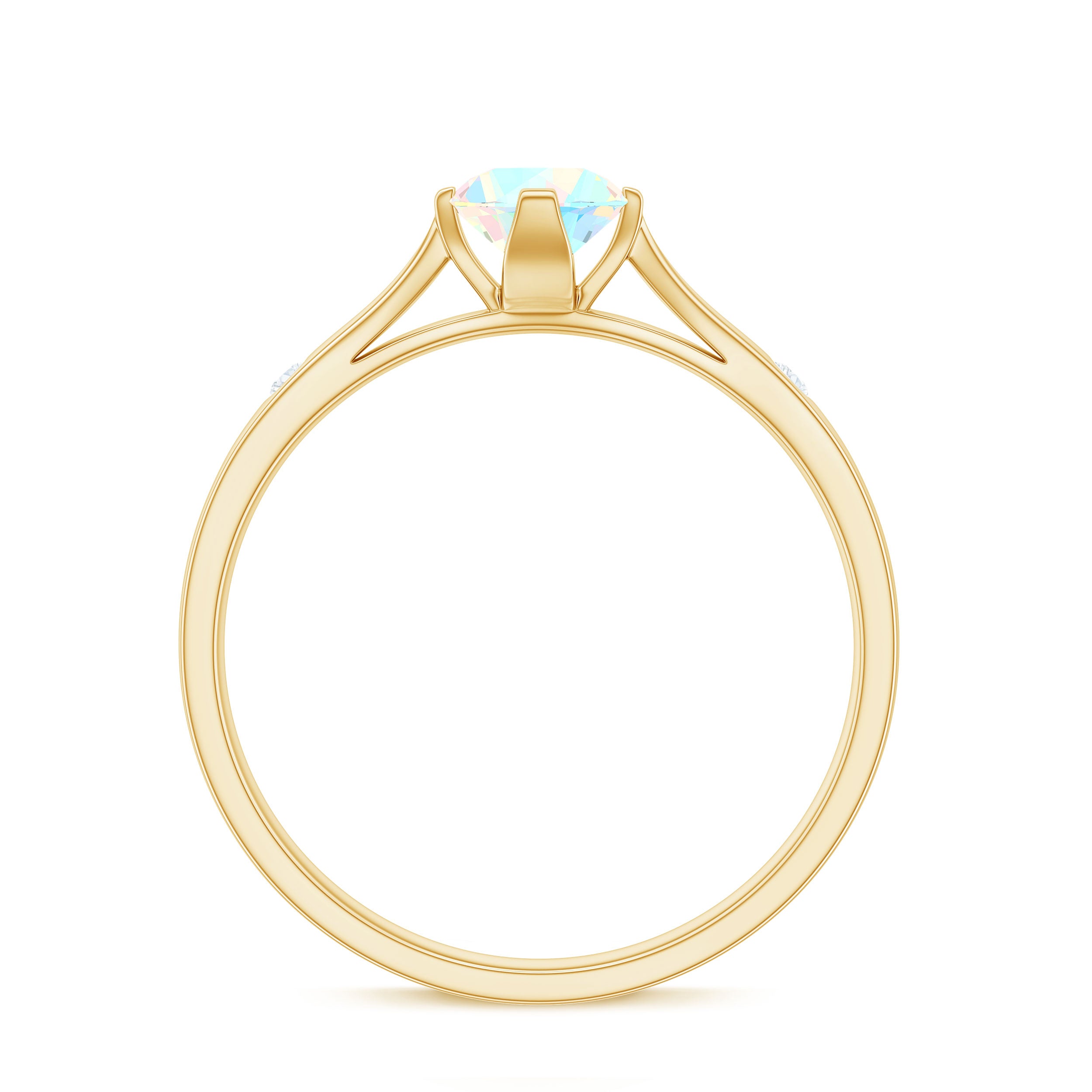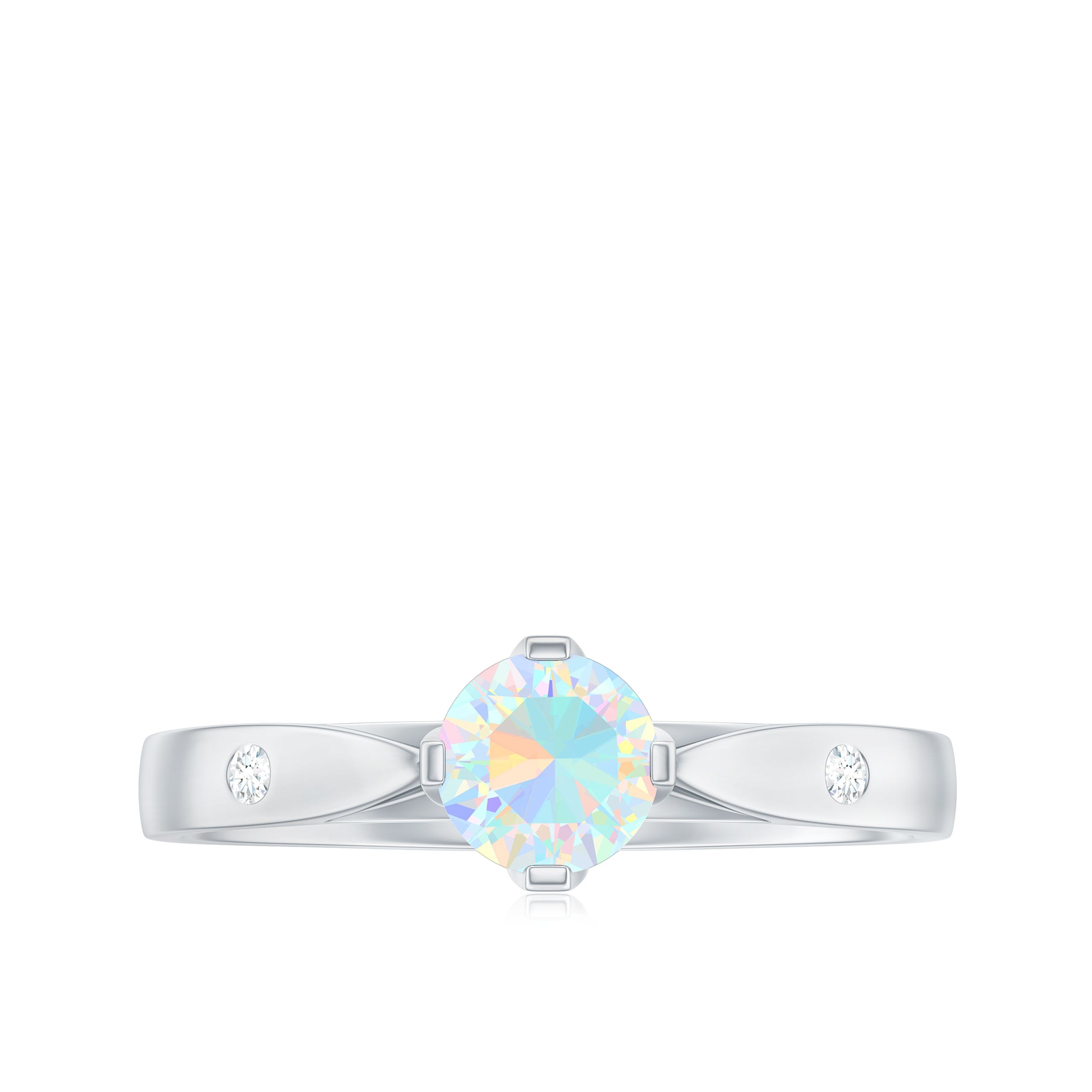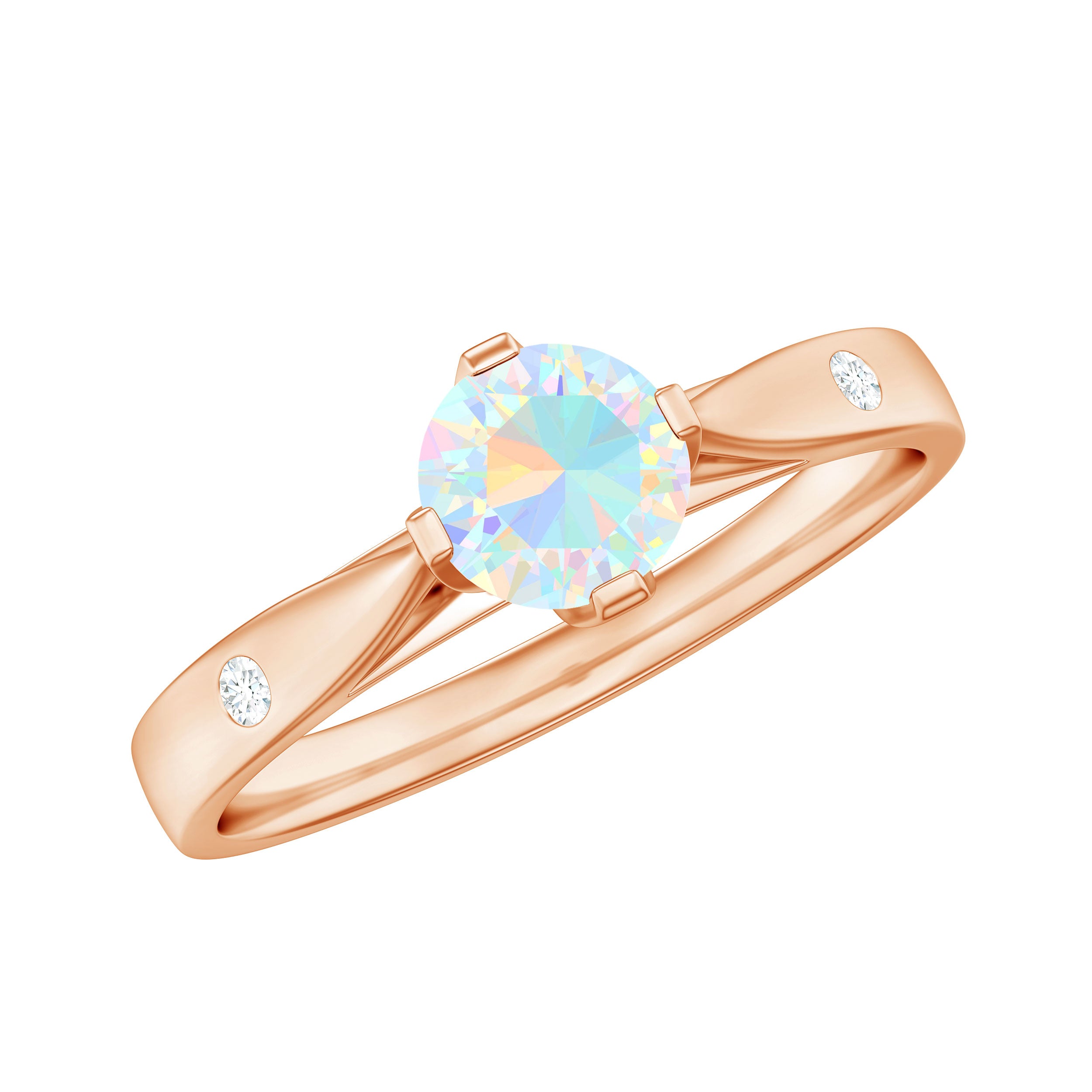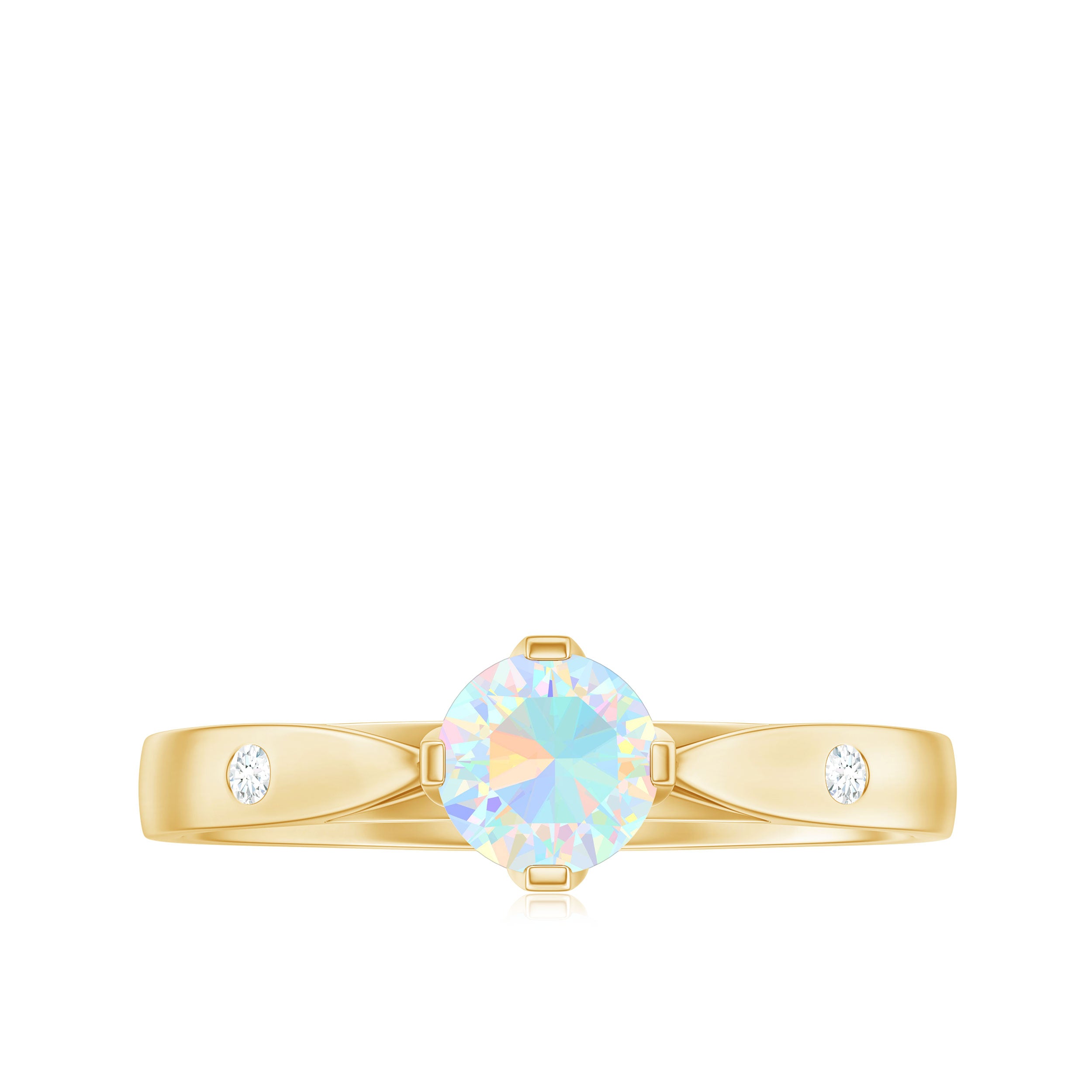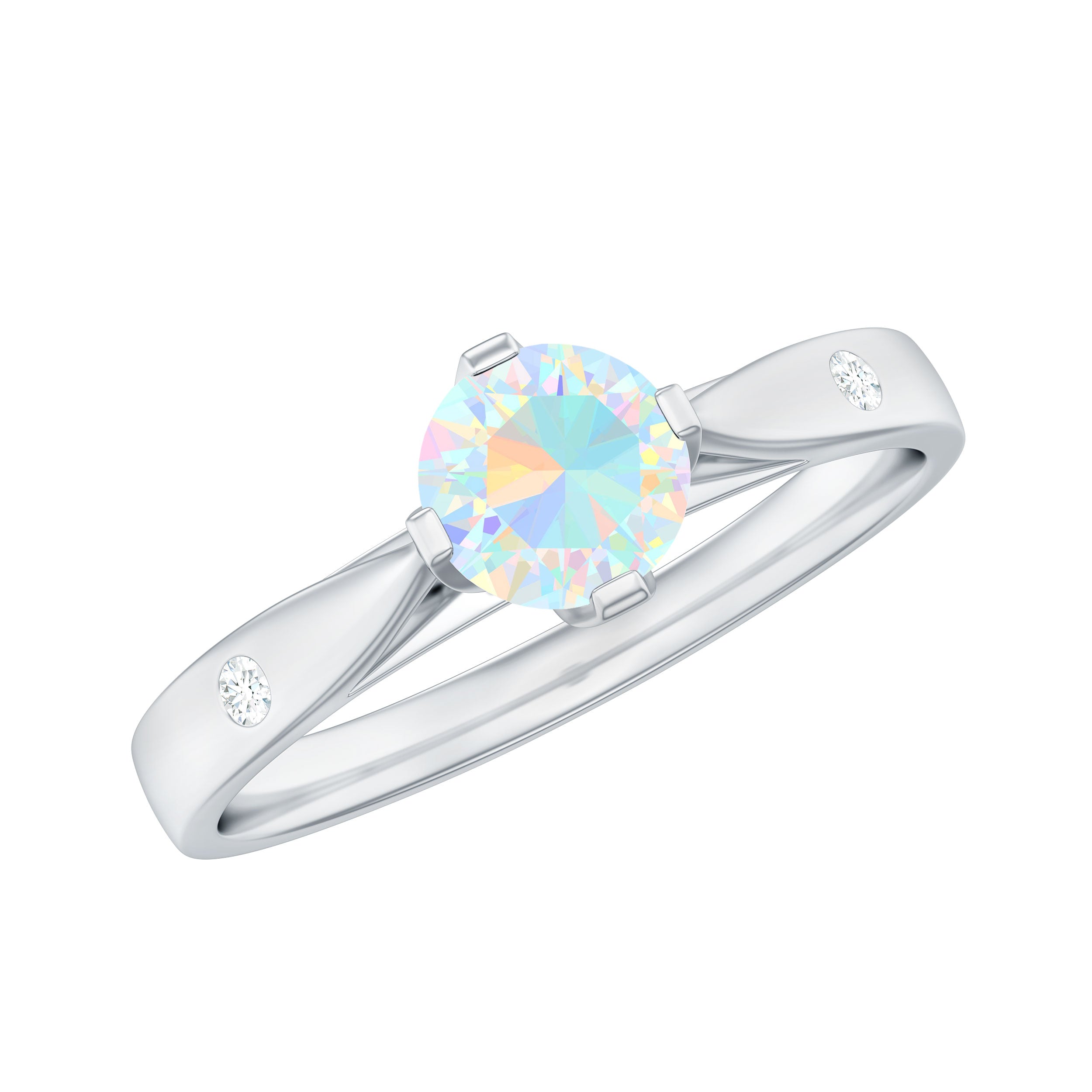 Sleek, modern and effortlessly meaningful, this Opal Promise Ring is designed to capture hearts with its understated elegance. Centered by a glowing 5 mm Round Shape Ethiopian Opal that shimmers with captivating flashes of rainbow fire, this Opal Solitaire Ring is all about the magic of simplicity. Flanked by a brilliant Diamond on each side, the Opal sits atop a gracefully Pinched Shank, creating a refined design that feels both contemporary and timeless. The band gently tapers toward the center, drawing the eye to the mesmerizing play of color that makes each opal one of a kind. Whether you are celebrating a milestone, sealing a promise or simply expressing a love that feels like forever, this Proposal Ring is the perfect symbol of connection and commitment. Crafted with care, this Opal and Diamond Ring comes beautifully packaged in a signature jewelry box and is available in a range of sizes for the ideal fit. Thoughtfully designed, this Commitment Ring is a moment you can wear every day.