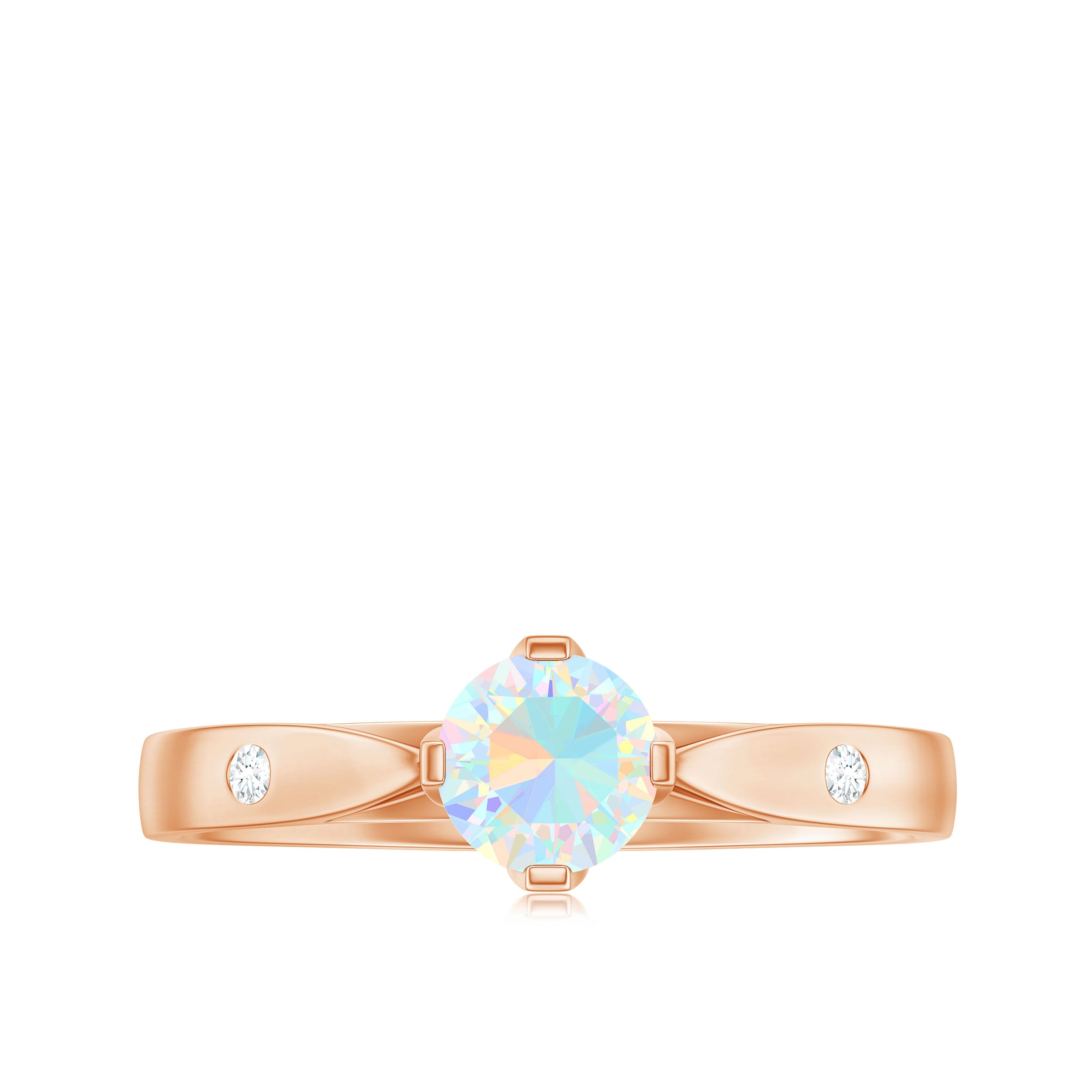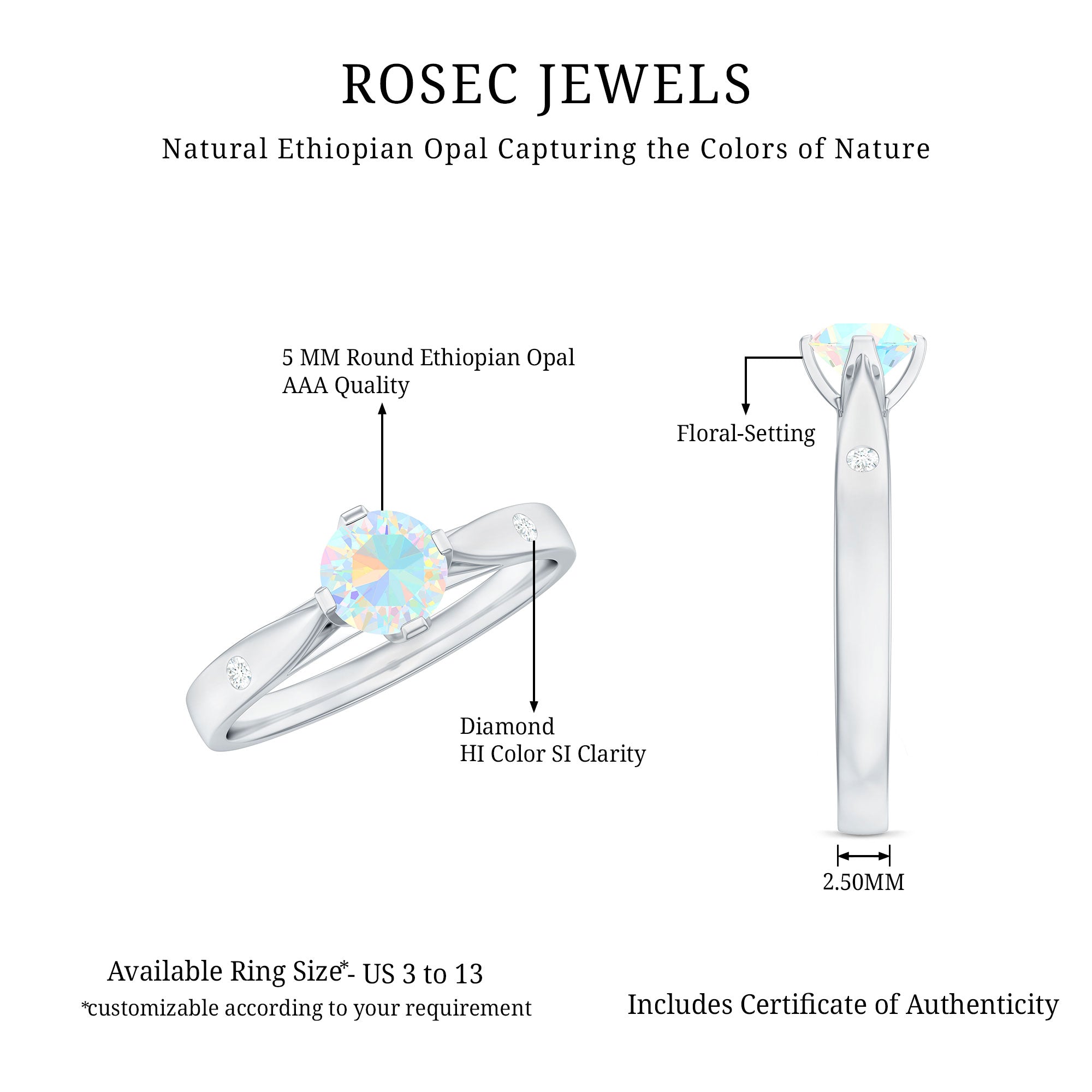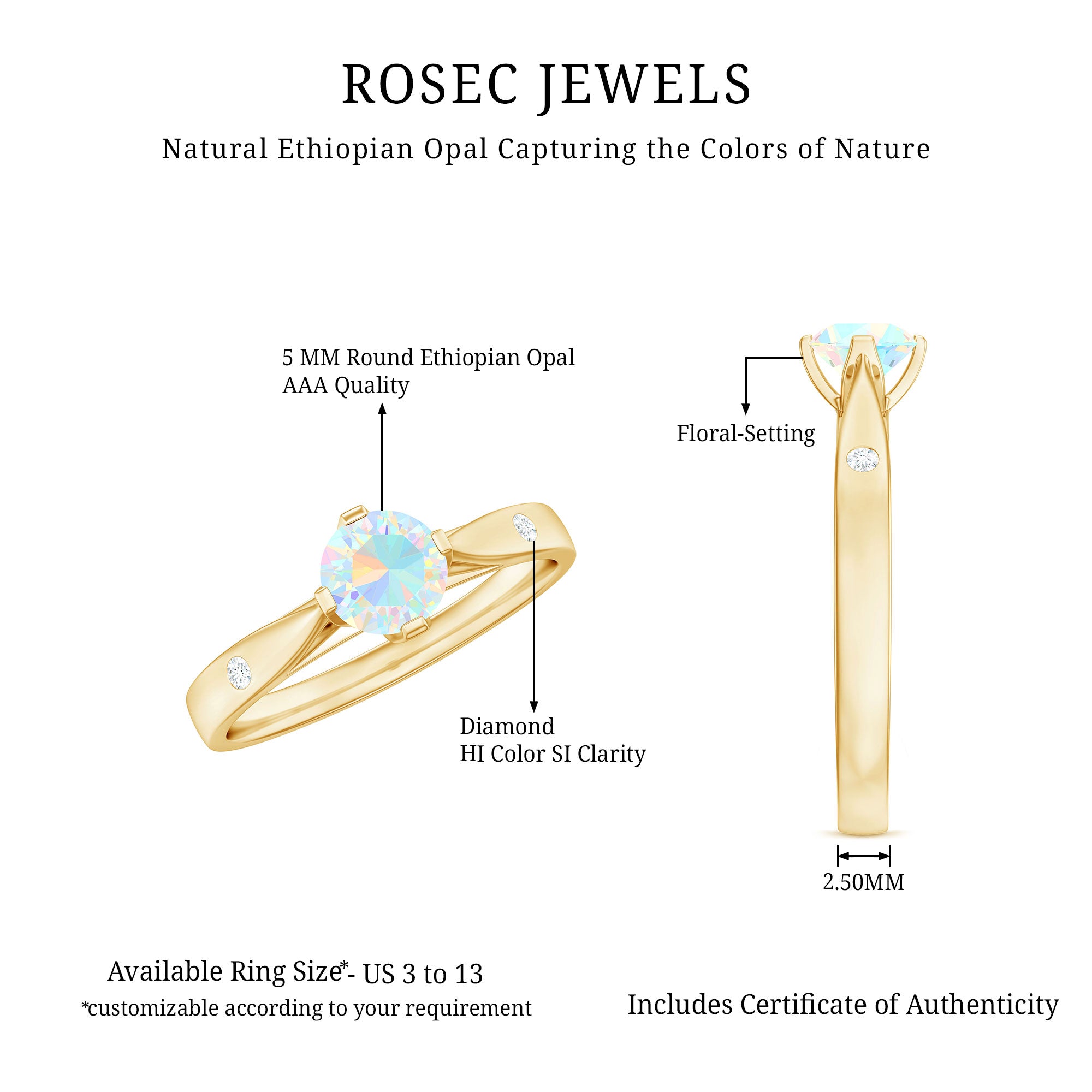Natural Solitaire Ethiopian Opal Promise Ring with Diamond