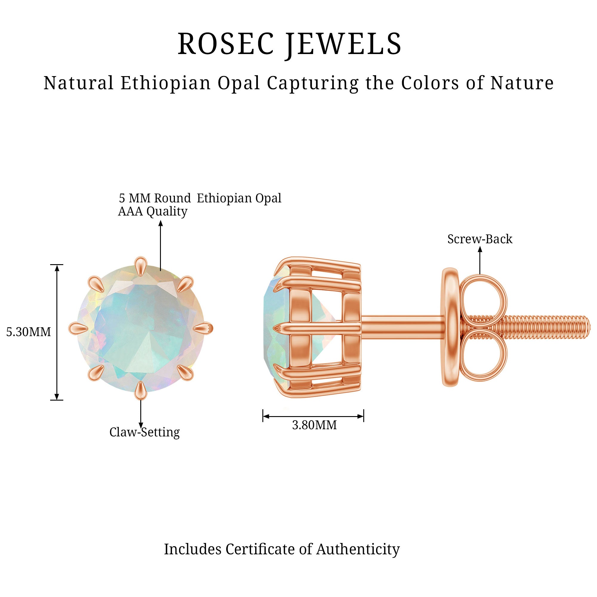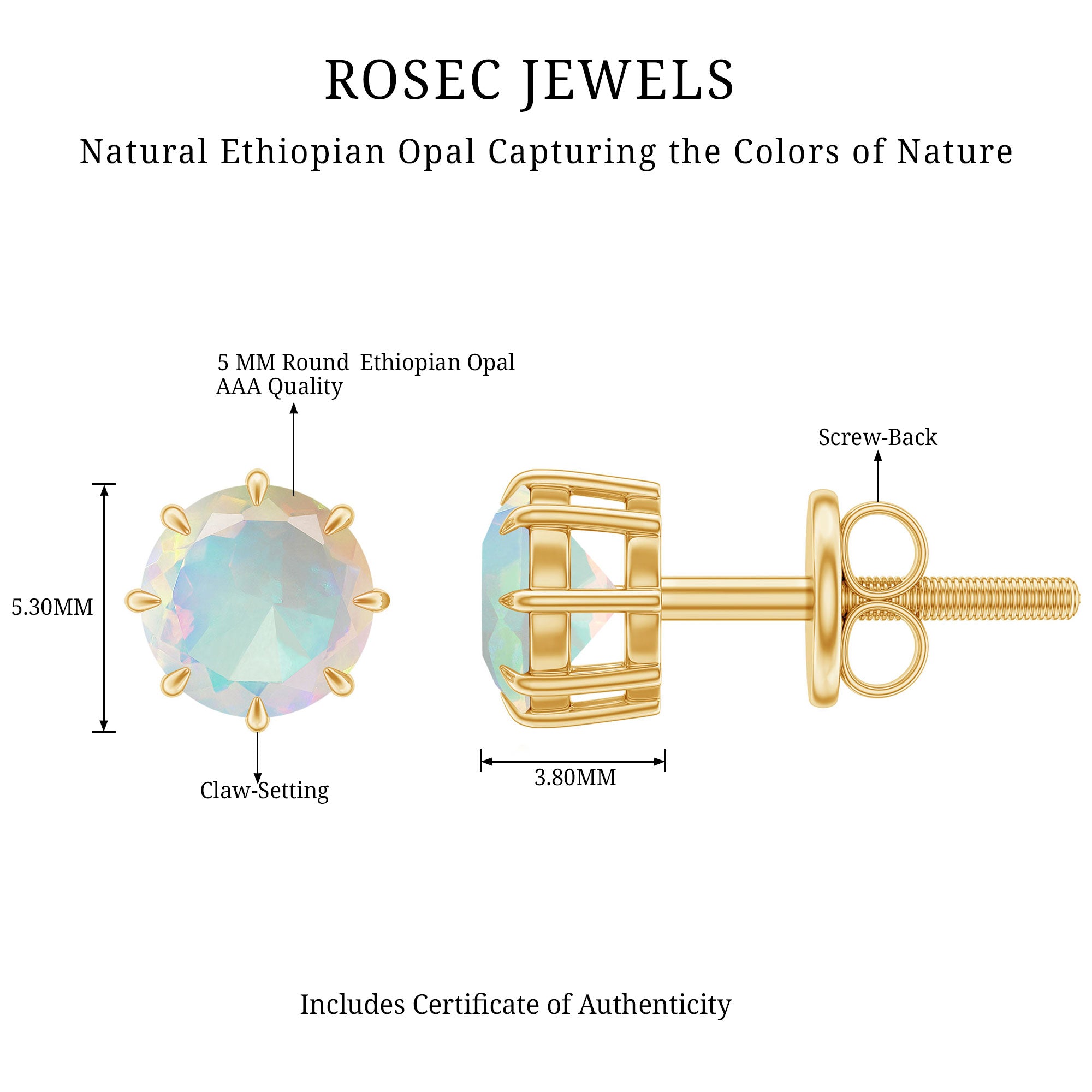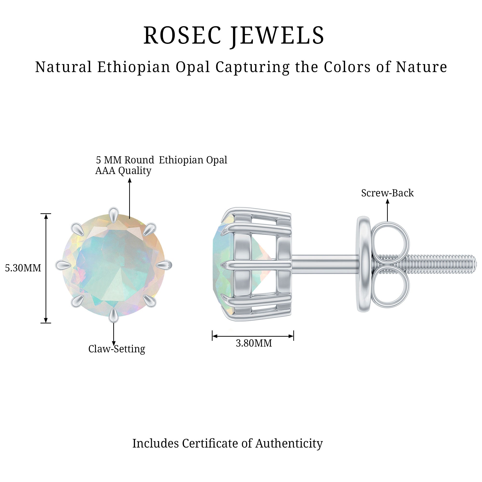 Natural Ethiopian Opal Solitaire Stud Earrings