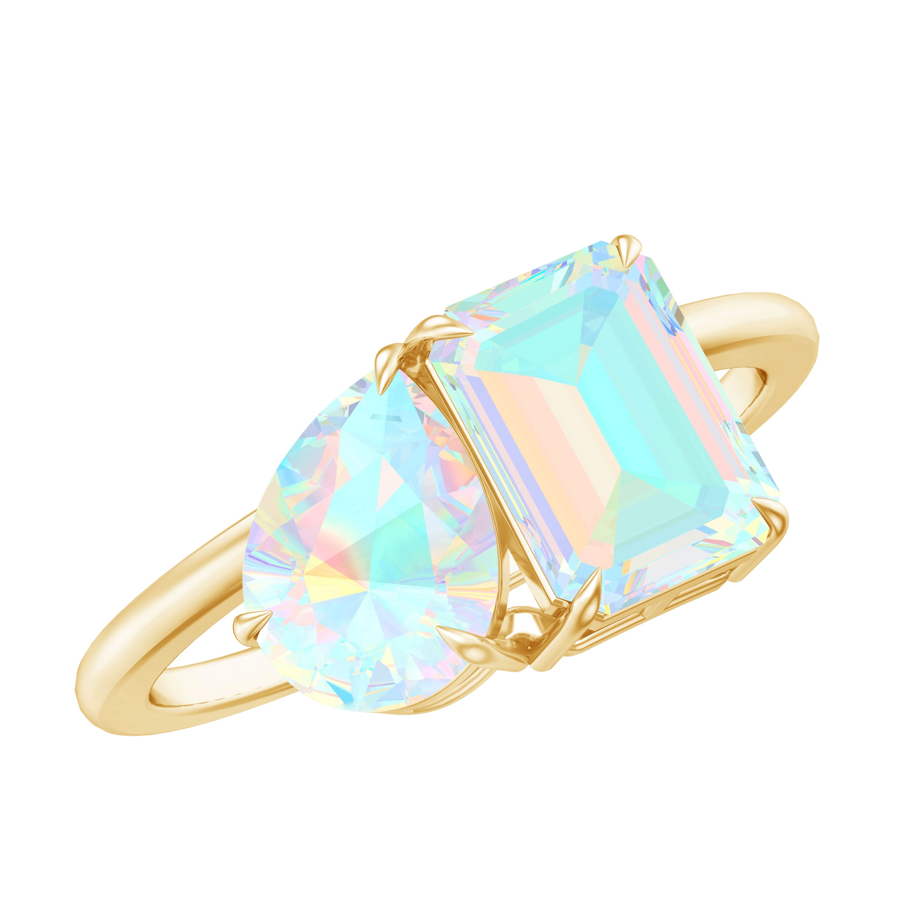 Embrace the enchanting beauty of our Toi Et Moi Ring, a symbol of intertwined love and elegance. The Pear and Emerald Cut Ethiopian Opal gemstones signify unity and connection. Set in a graceful band, this ring captures the essence of ethereal beauty and shared devotion, making it a captivating choice for a meaningful gift.