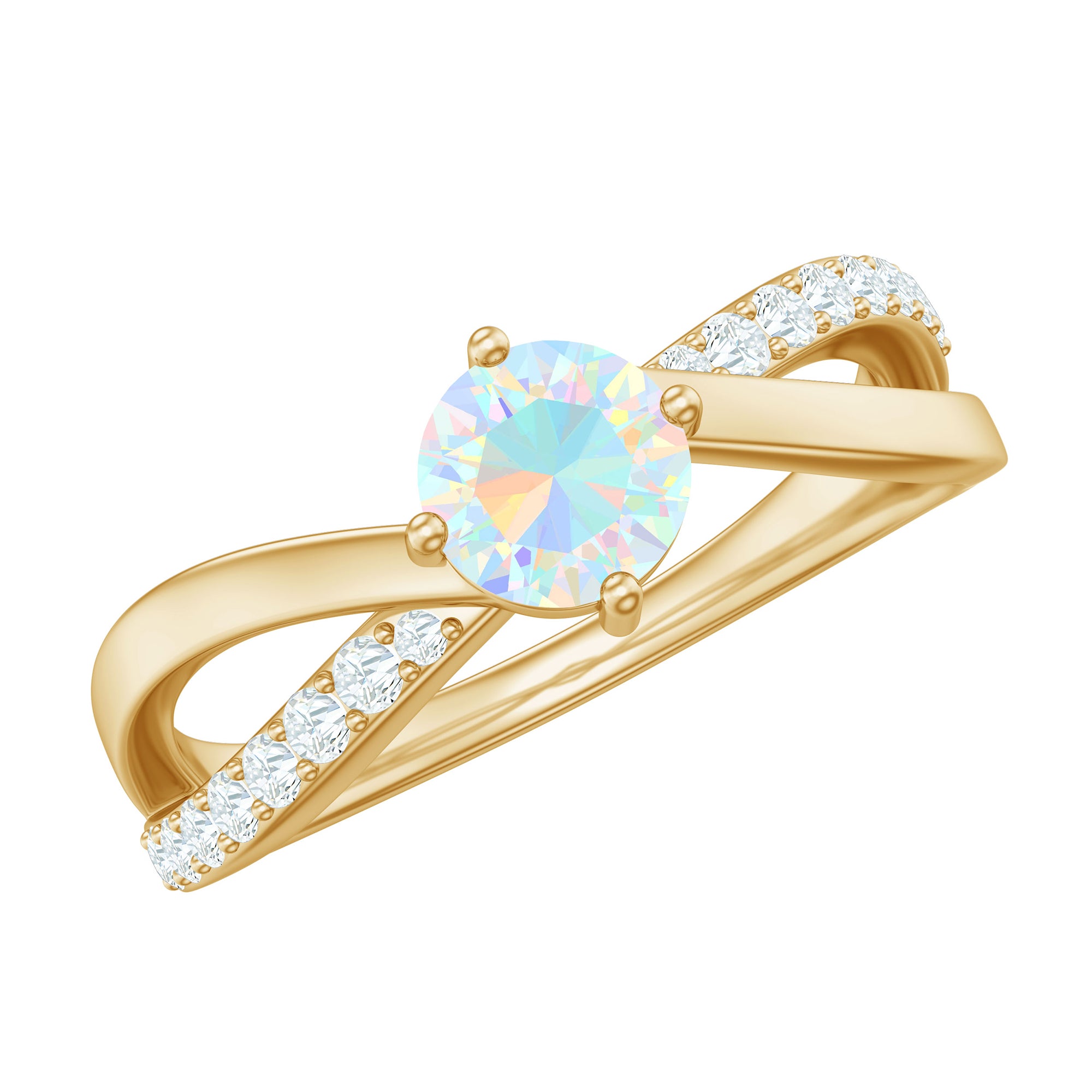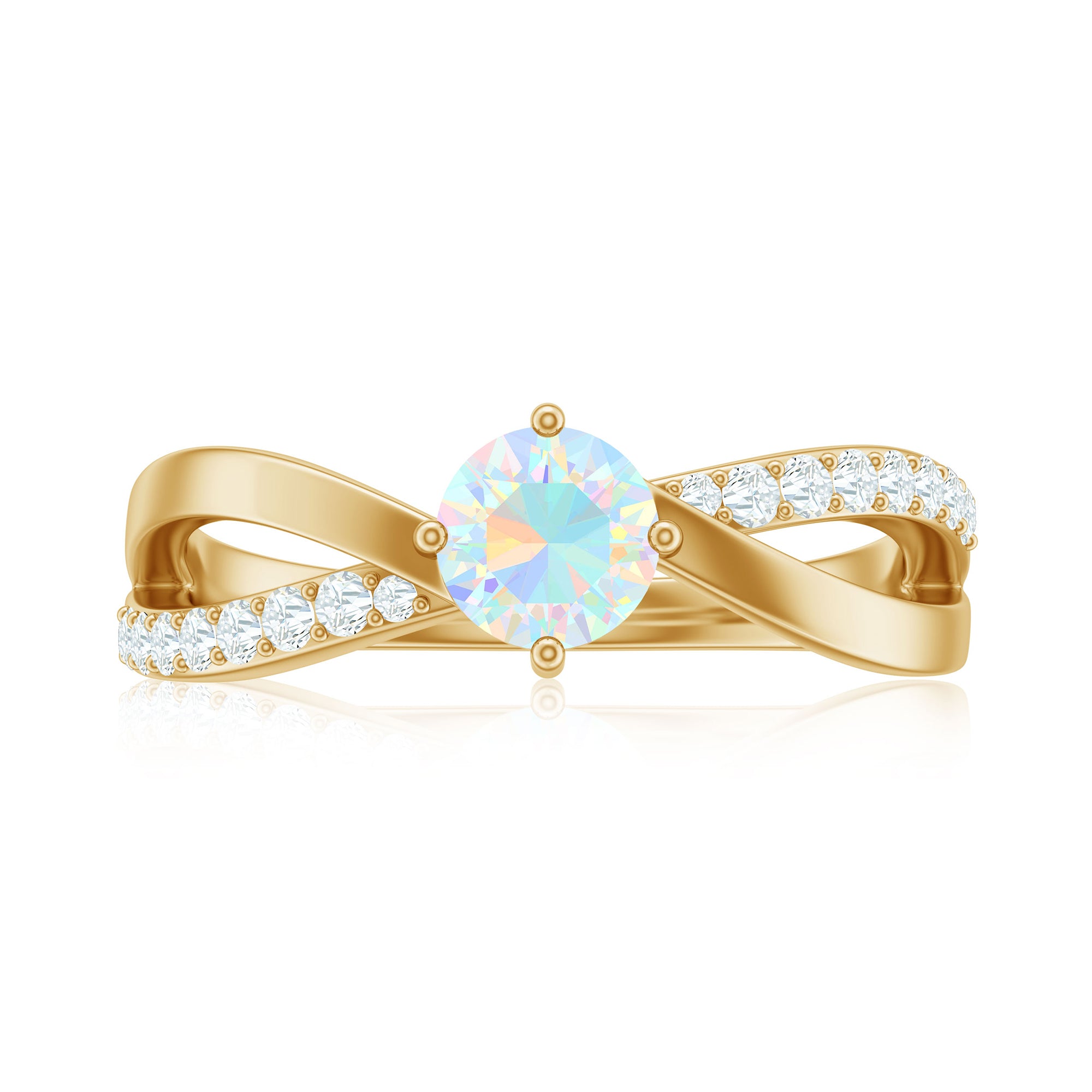 Shine with color and meaning with this breathtaking Ethiopian Opal engagement ring, a true symbol of forever. This Solitaire Engagement Ring features a 5 mm Round Shape Ethiopian Opal set in 4 Prong Diagonal Setting, capturing the ever-changing beauty of your journey together. The band twists gracefully into an elegant infinity design, representing endless love and unity, while sparkling Diamond stones trace the curves with a delicate brilliance. This Opal Diamond Engagement Ring feels both modern and timeless with just the right touch of whimsy and romance. Handcrafted to turn heads and melt hearts, this Opal Engagement Ring is perfect for the one who deserves something as rare and radiant as they are. Presented in a lovely jewelry box and available in multiple sizes for the perfect fit, this Real Opal Engagement Ring is ready to become part of your forever story, because love like yours deserves to be celebrated with something truly magical.