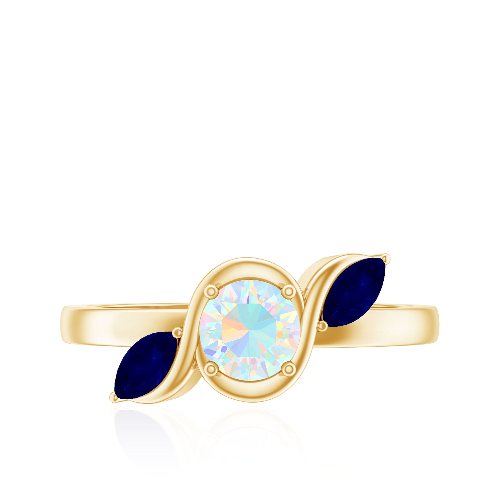 Make a promise that sparkles with color and meaning in this Rainbow Opal Promise Ring, a ring that is as bold, vibrant and unforgettable as your love story. At its core sits a mesmerizing 5 mm Round Shape Ethiopian Opal, known for its rainbow of shifting hues that catch the light. Flanking the Opal is a Marquise Shape Blue Sapphire on each side, their deep royal tones adding a striking contrast and regal flair. The result is a look that is dreamy and dramatic, with just the right touch of elegance. This Opal and Sapphire Ring is a fresh take on romance, designed for the ones who love with their whole heart. Whether it is a symbol of forever or a stunning statement piece, this Promise Engagement Ring radiates individuality. Available in a variety of sizes for the perfect fit and delivered in an elegant jewelry box, this Ethiopian Opal Ring is ready to dazzle from the moment it arrives.