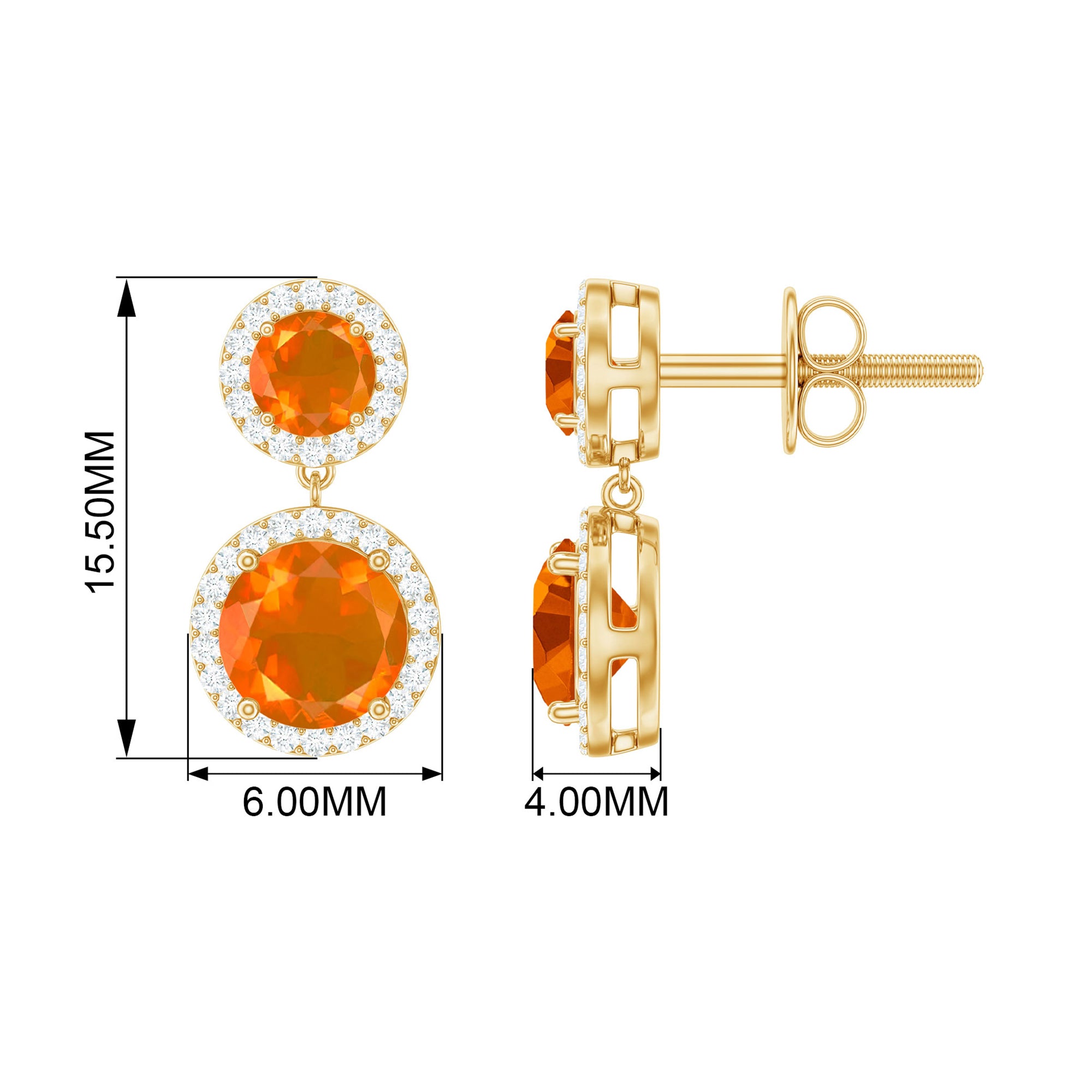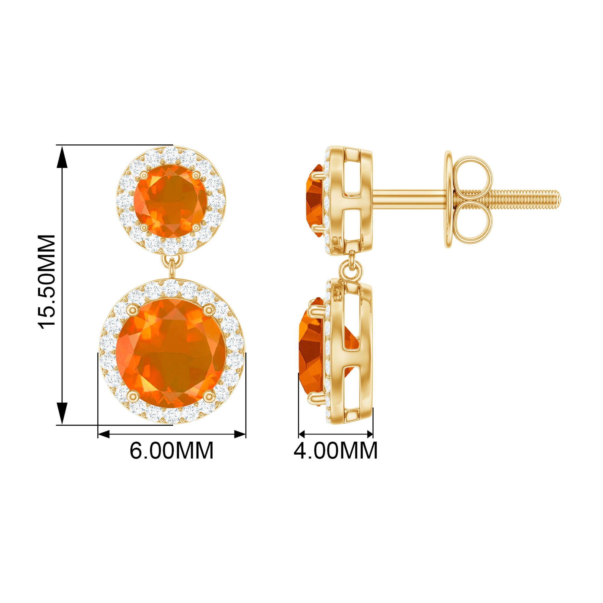 The Halo Dangle Earring is adorned with Round Shape Fire Opal and Diamond. This Fire Opal Dangle Earring will be a perfect piece for your wife on your Anniversary.