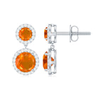 Natural Fire Opal and Diamond Halo Dangle Earrings