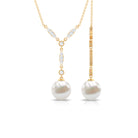 Looking for that one White Pearl Necklace that just gets your bridal vibe? Say hello to this Pearl Y Necklace - the kind of piece that feels like a gentle WOW every time you catch a glimpse of it. At the heart of the design is a luminous 10 MM round shaped freshwater pearl, perfectly smooth with that signature glow that feels both timeless and modern. It hangs delicately at the end of the lariat-style silhouette, which adds a graceful, elongated look that flatters any neckline. The Freshwater Pearl Wedding Necklace is furthermore accented with round lab grown diamonds, each one sparkling gently as they lead the eye toward the pearl. And yes, it connects seamlessly with a fine cable chain that feels dainty but still super secure, so you can dance the night away without a second thought. Perfect for your wedding day, formal dinners, anniversaries, or whenever you want to feel a little extra special. This Lariat Necklace is one of those wear-it-again and again pieces that will remind you of your day every time you put it on. So if you are going for dreamy, effortless elegance with a touch of shimmer - this is the one. The kind of Bridal Necklace that makes your dress pop and your heart skip a beat.