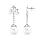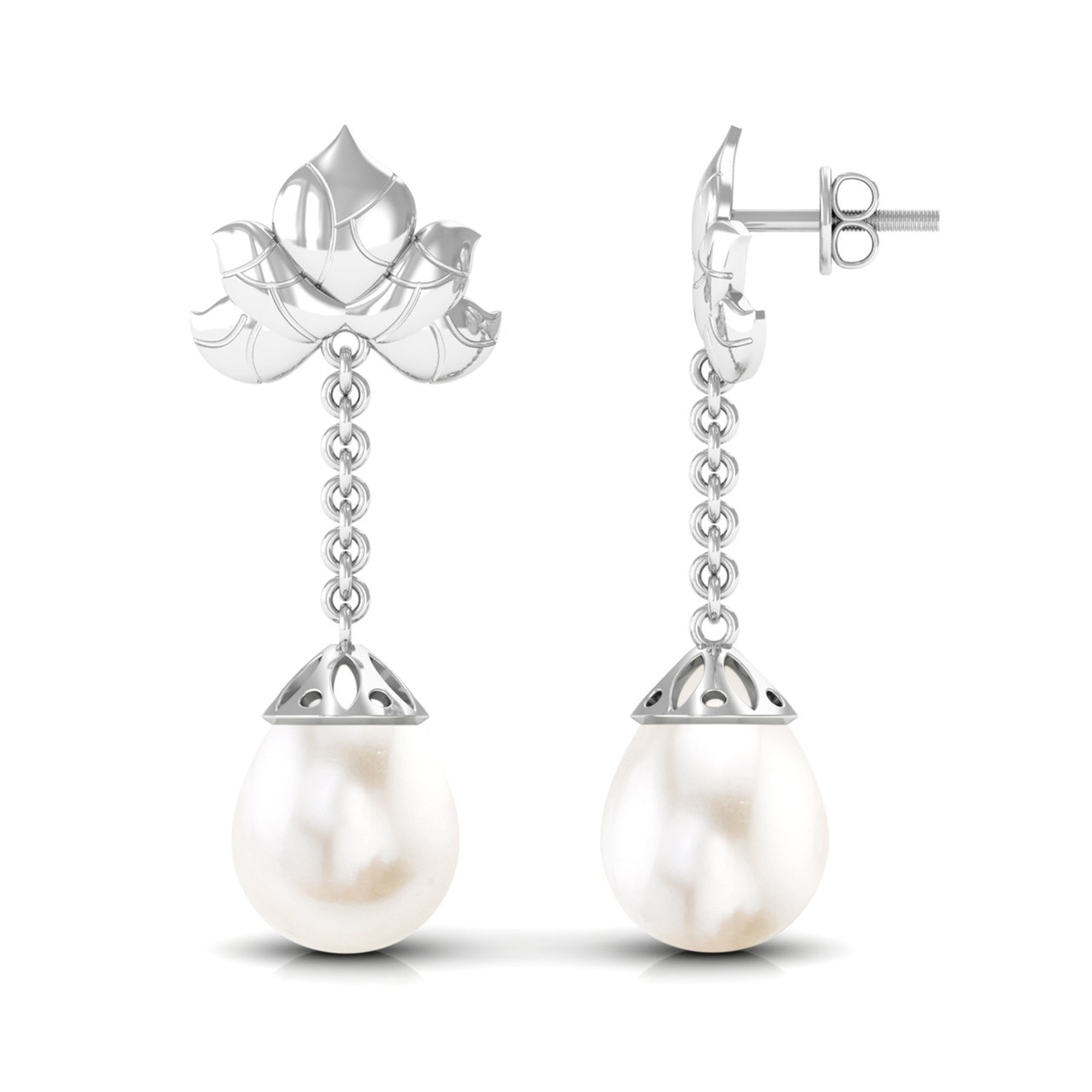 Sway into any occasion with a touch of gentle elegance by wearing these Pearl Dangle Earrings. Designed to move beautifully with every step, each earring features a radiant 9X12 mm Freshwater Pearl drop suspended from a charming three petal flower, connected by a delicate cable chain that creates a graceful, flowing silhouette. The soft sheen of the AAA Quality Pearl, paired with the floral design, adds a romantic, feminine touch that feels perfect for brides-to-be or anyone who loves accessories with a dreamy feel. The secure Screw Back Closure ensures you can enjoy your day in total comfort, whether you are celebrating a wedding, attending a special event or adding a hint of charm to your everyday look. These Dangle Chain Earrings bring together natural beauty and thoughtful craftsmanship in a way that feels both modern and timeless. Arriving in a beautifully presented jewelry box, these Freshwater Cultured Pearl Earrings also make a heartfelt gift for someone who appreciates pieces that feel meaningful and stylish. Elegant, effortless and full of movement, these Pearl Earrings for Women are made to be treasured and worn again and again.