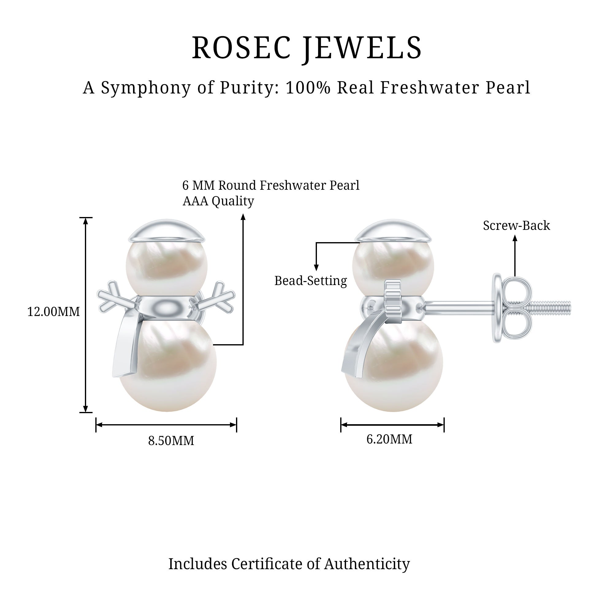 Celebrate the winter season with a pair of Snowman Stud Earrings designed to bring joy and charm to any holiday outfit. Each earring features two freshwater pearls one 6 MM and one 5 MM, set in a bead setting to create a cute snowman shape. The pearls form the body and head, while the muffler, hands, and cap are crafted from polished metal, giving the design a fun and playful touch. Made with care, these Freshwater Cultured Pearl Earrings offer a smooth and comfortable feel on the ears. The screw-back closure keeps them securely in place, making them perfect for all-day wear during winter celebrations, family gatherings, or holiday parties. Their lightweight design ensures comfort, while the glossy pearls add a soft glow that stands out beautifully. Ideal as a Christmas gift, these Snowman Earrings make a delightful surprise for your girlfriend, daughter, sister, or any woman who loves festive jewelry. With their adorable design and thoughtful details, these Cute Earrings are sure to become a favorite holiday accessory for many years to come.