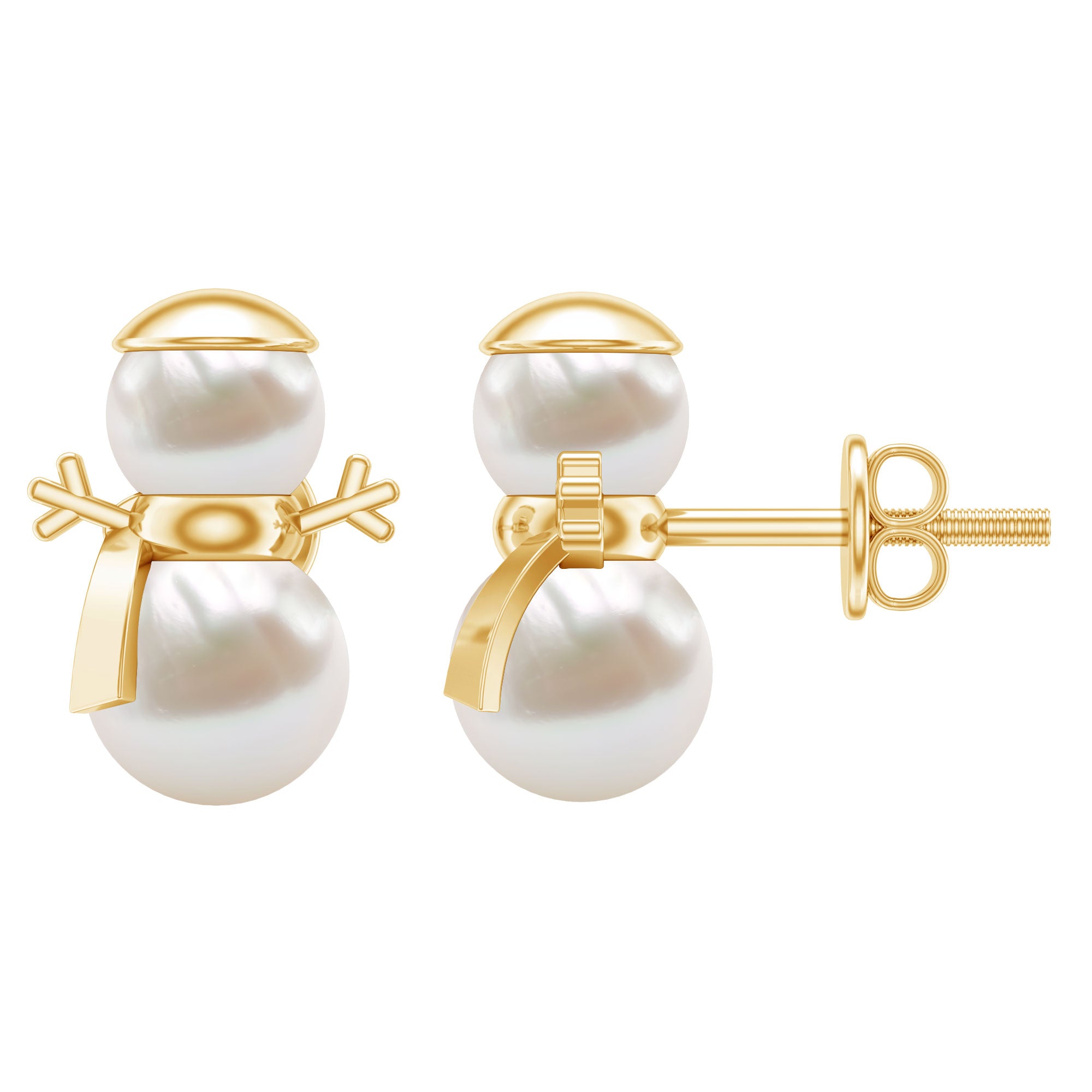 Natural Freshwater Pearl Snowman Stud Earrings