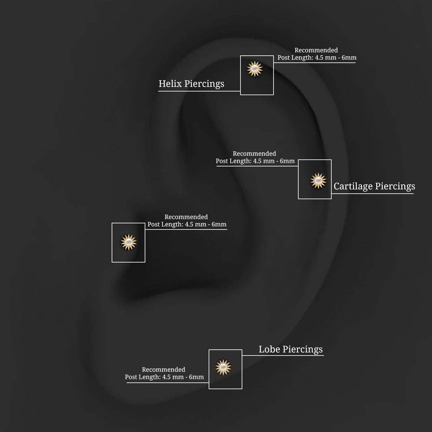 Get our most loved White Pearl Conch Earrings, a blend of natures beauty and oceanic charm.The earring features a lustrous White Freshwater Pearl in bead setting. Inspired by the ocean's graceful allure, the earring features a unique sun design.You can wear this Freshwater Pearl Sun Earring on your Helix, Conch, Cartilage, or Upper lobe. It is perfect for any occasion and any attire elevating your style effortlessly.Share the beauty of the ocean with this stunning earring, a perfect gift for a loved one.
