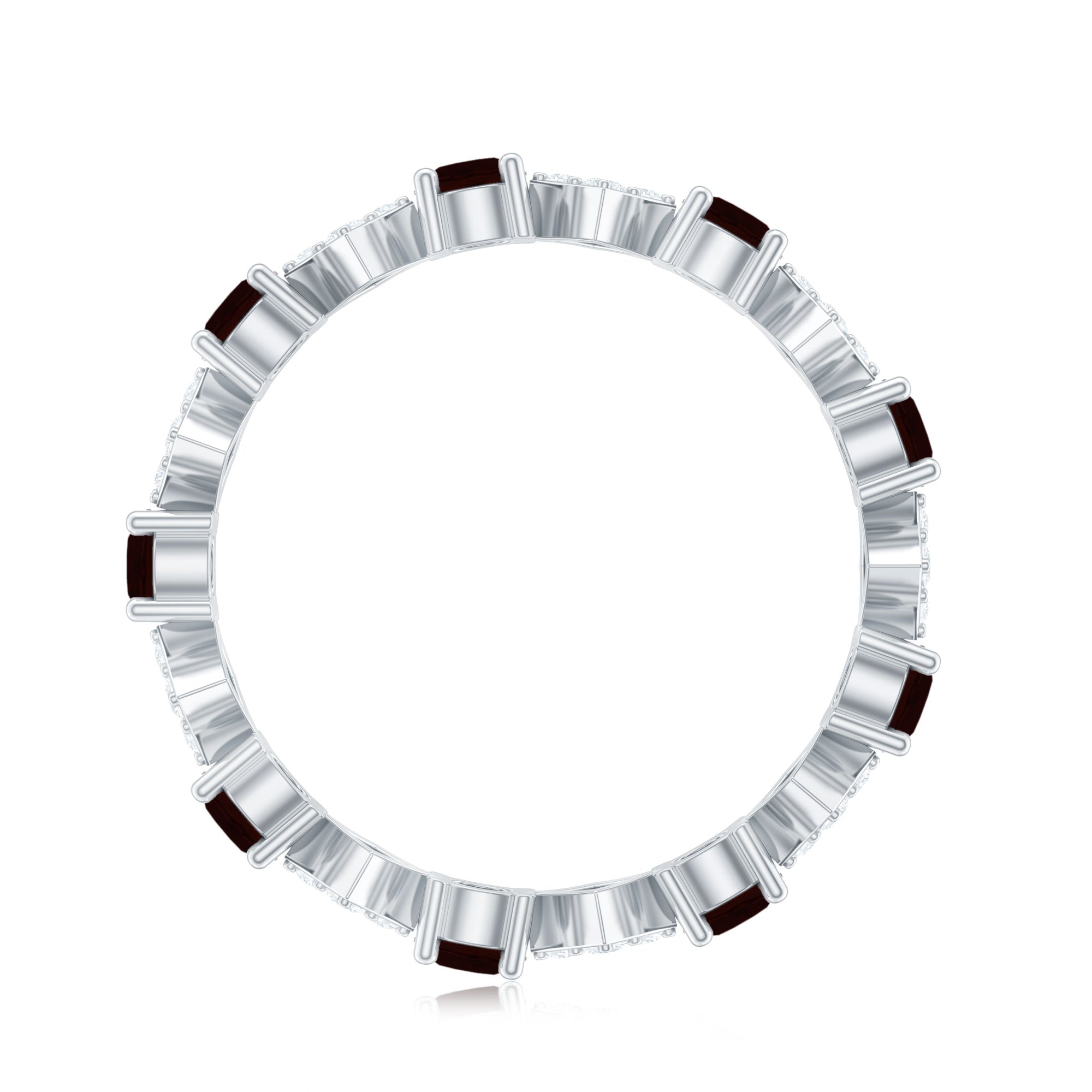 A circle of commitment and everlasting love, this Eternity Wedding Band is the perfect symbol of devotion and unity. Encircling the finger, vibrant 3 mm Round Shape Garnet stones alternate with sparkling Diamond stones studded over the geometric pattern, creating a continuous shimmer that reflects the beauty of a love meant to last a lifetime. Crafted with attention to detail and available in various ring sizes, this Garnet Eternity Band promises a perfect fit and long-lasting comfort. Delivered in a signature jewelry box, this Full Eternity Ring arrives ready to mark a milestone, celebrate a wedding or honor a meaningful anniversary. The deep red Garnet stones evoke warmth and devotion, while the Diamond stones add a touch of brilliance, making this Garnet Diamond Ring a radiant reminder of shared dreams and cherished moments. Let this Red Garnet Ring be a symbol of endless love, a promise that every day together will be filled with passion, beauty and forever memories.