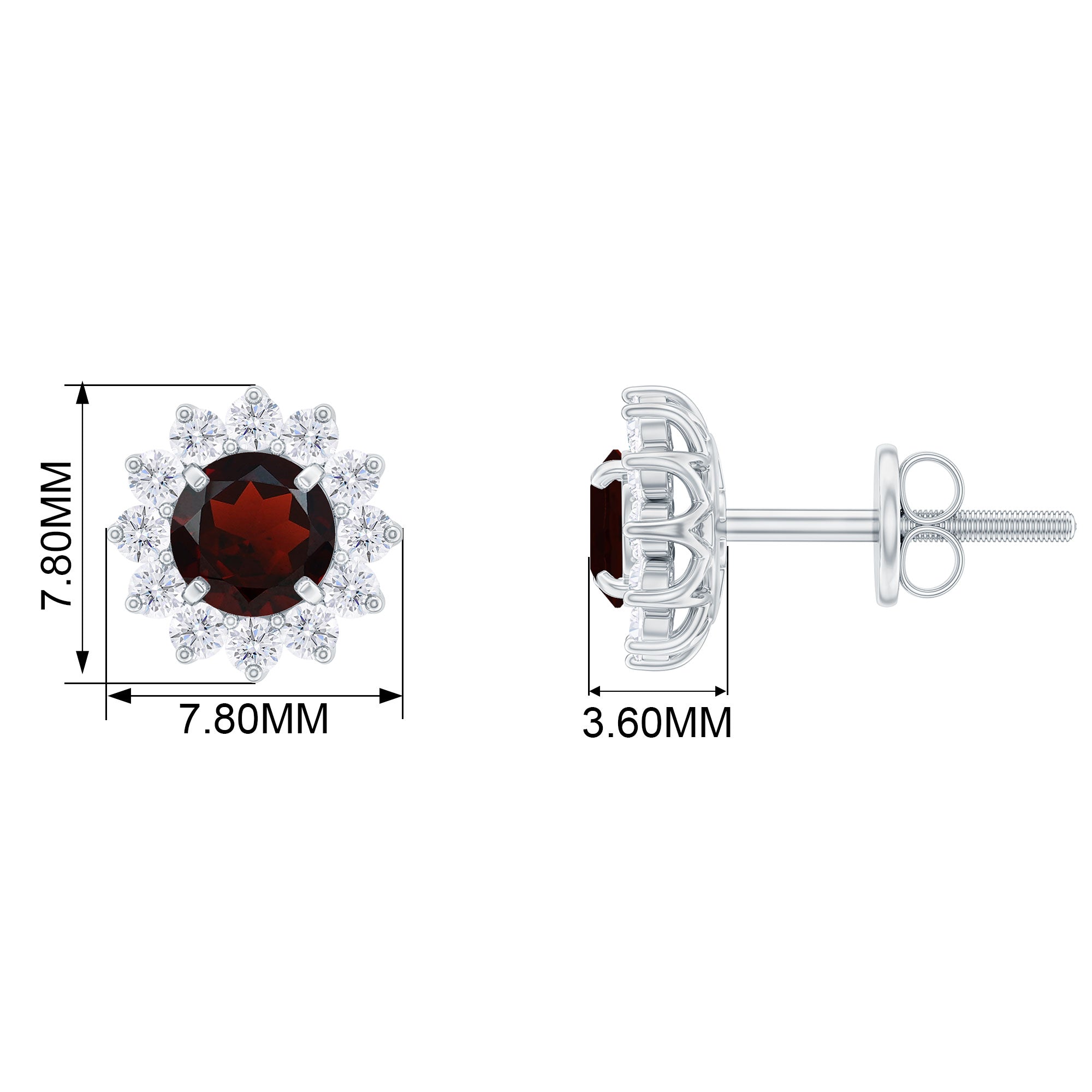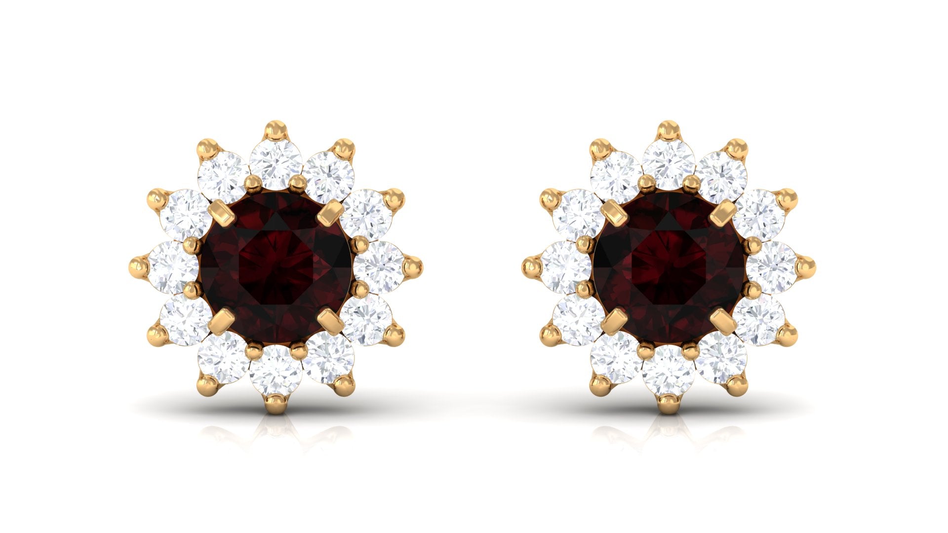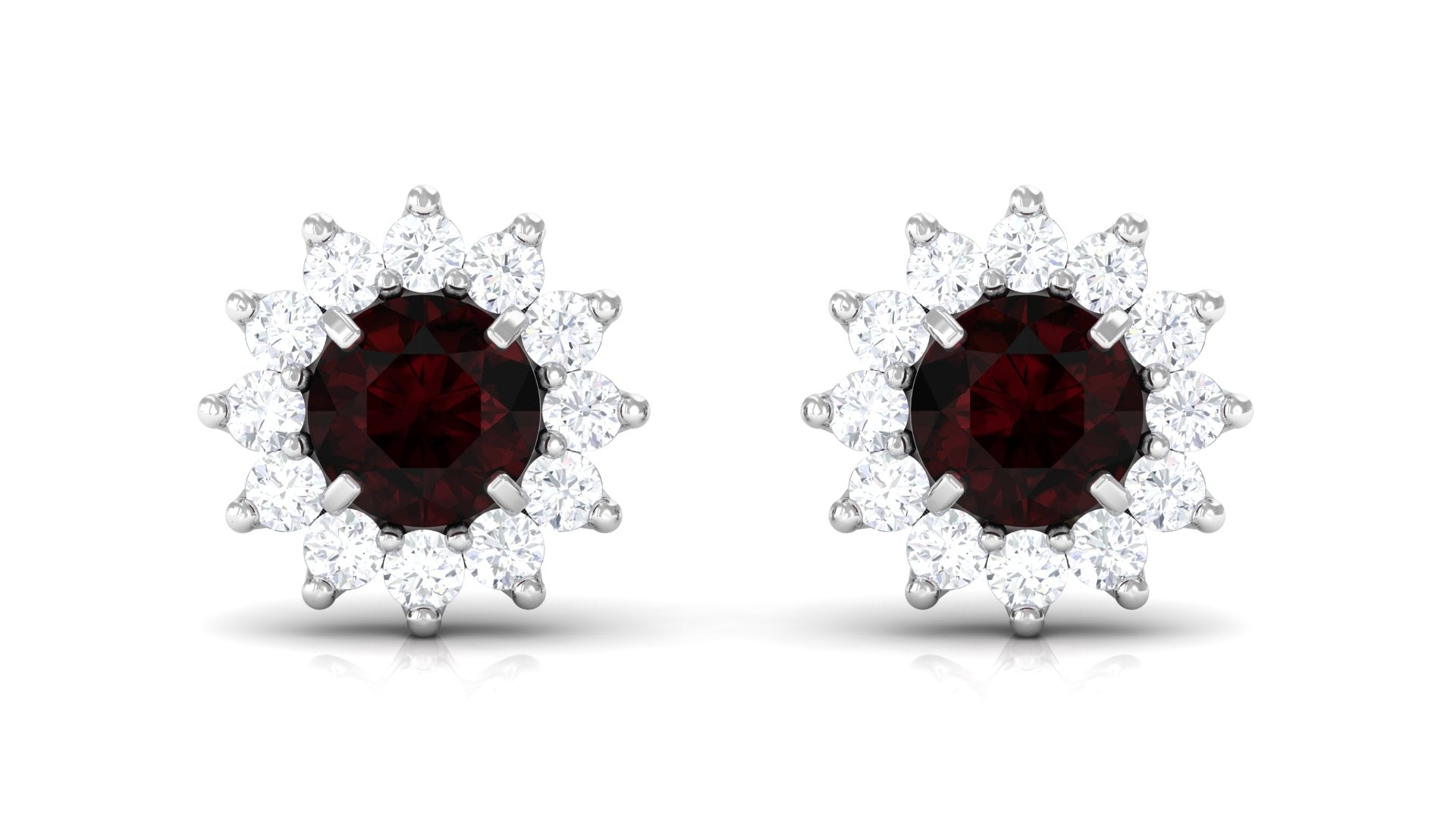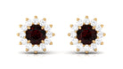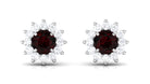 Natural Garnet and Diamond Flower Halo Stud Earrings