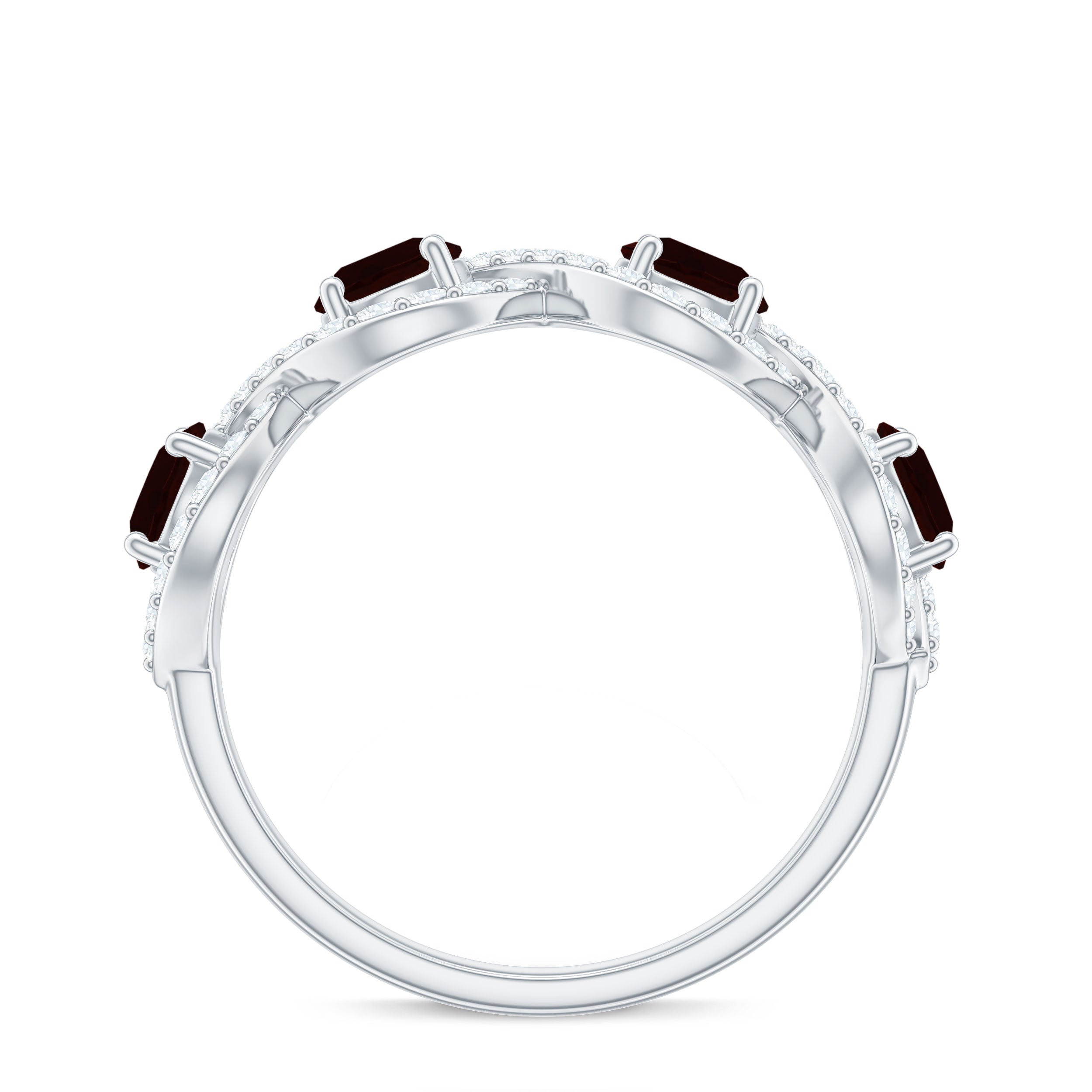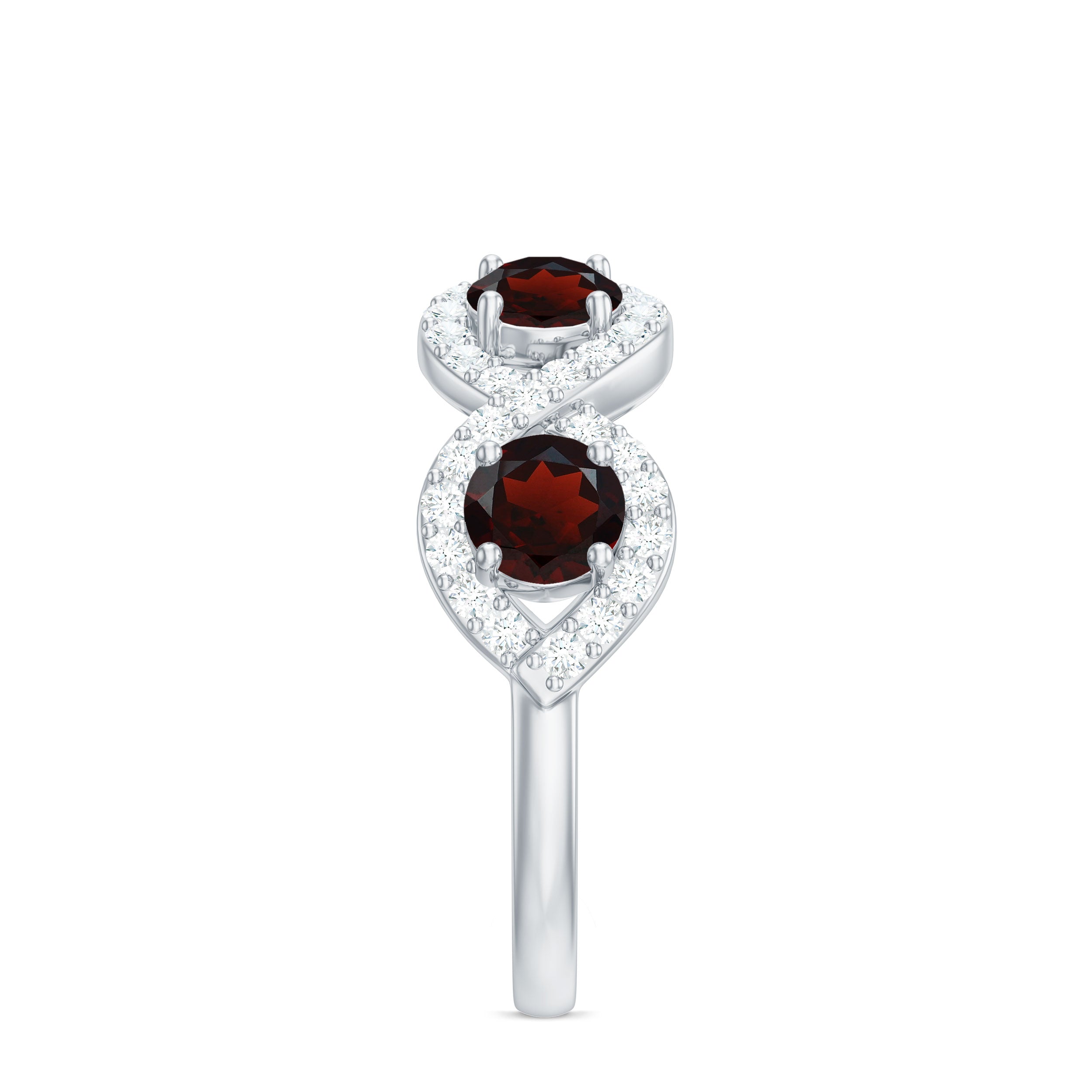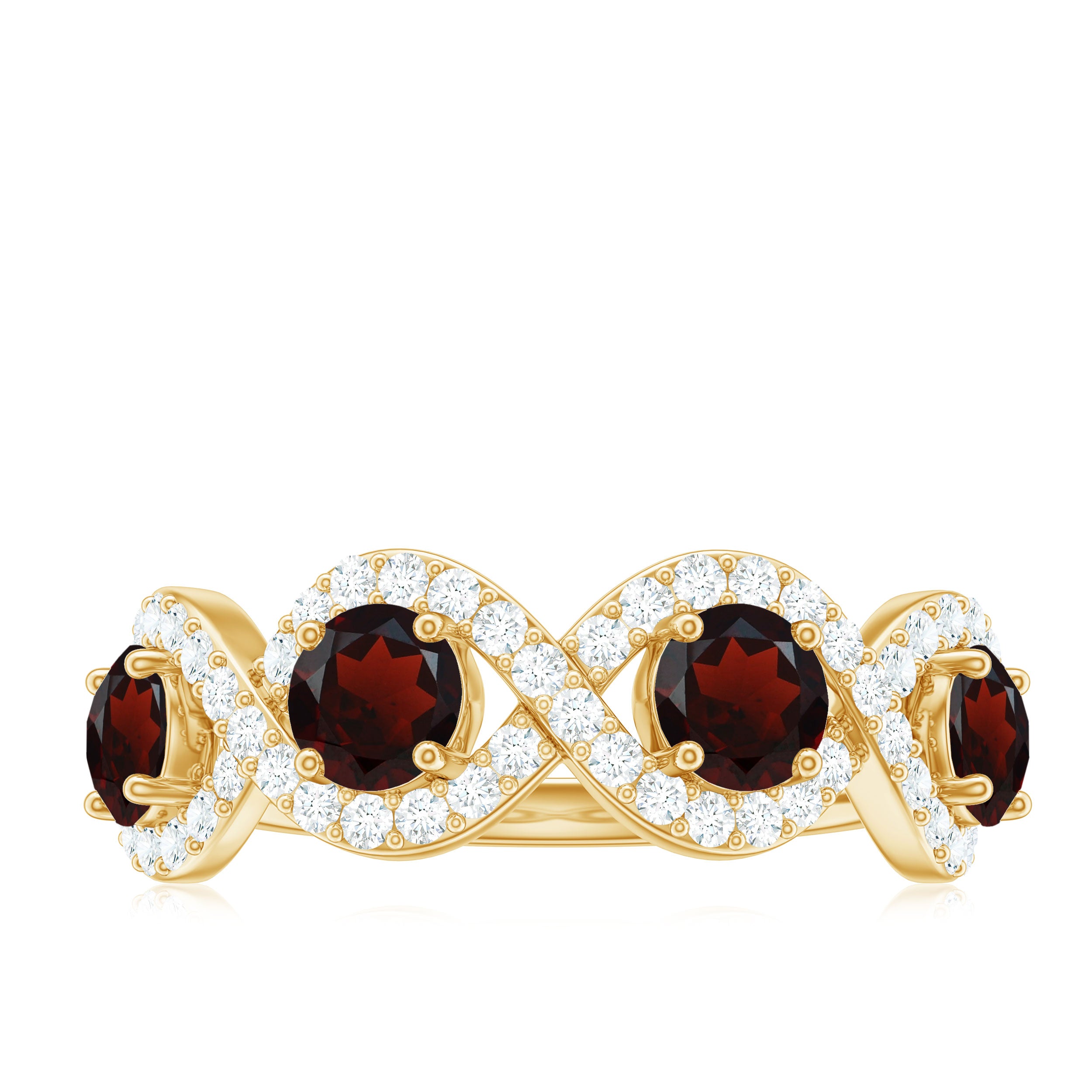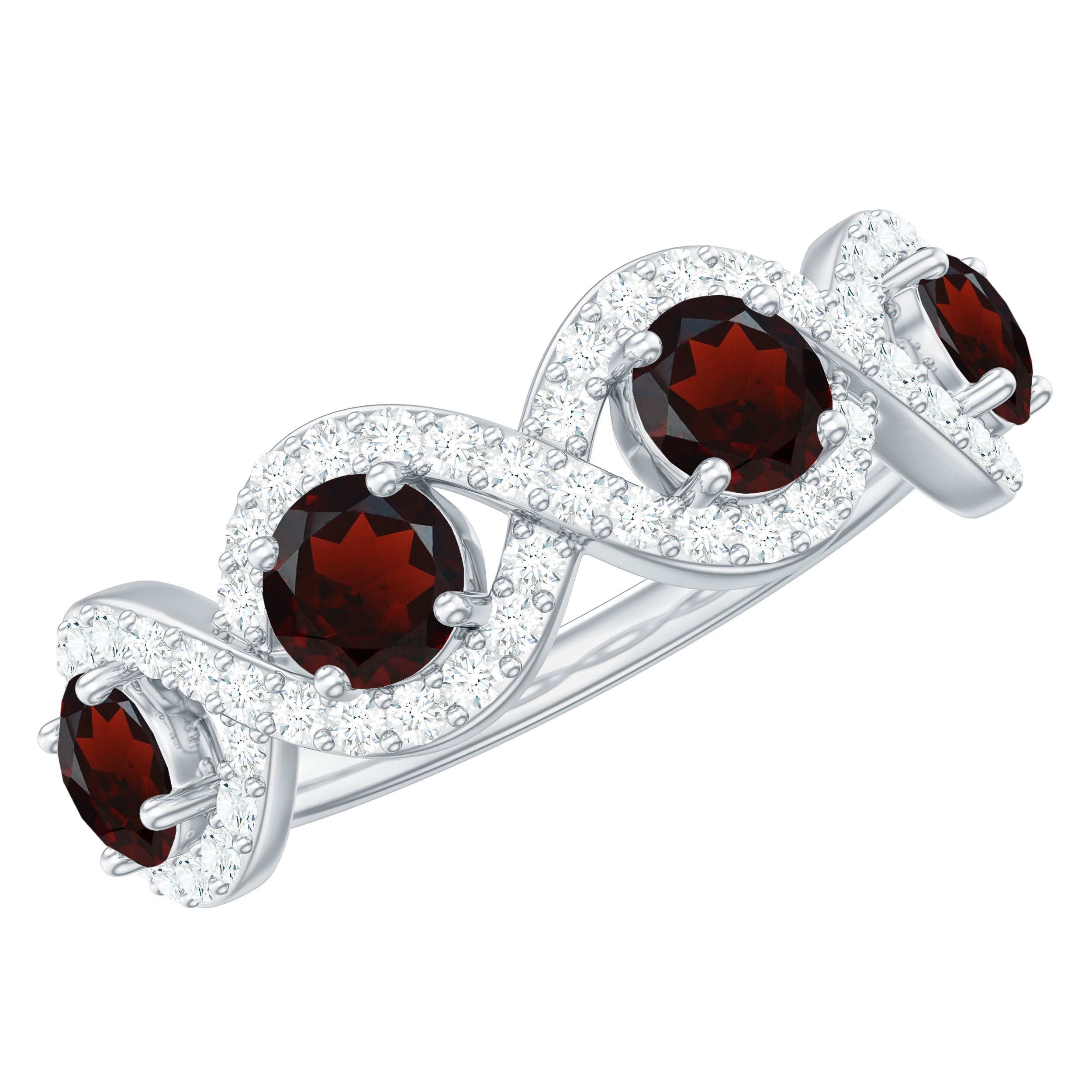 Natural Garnet Diamond Infinity Eternity Ring with Braided Shank