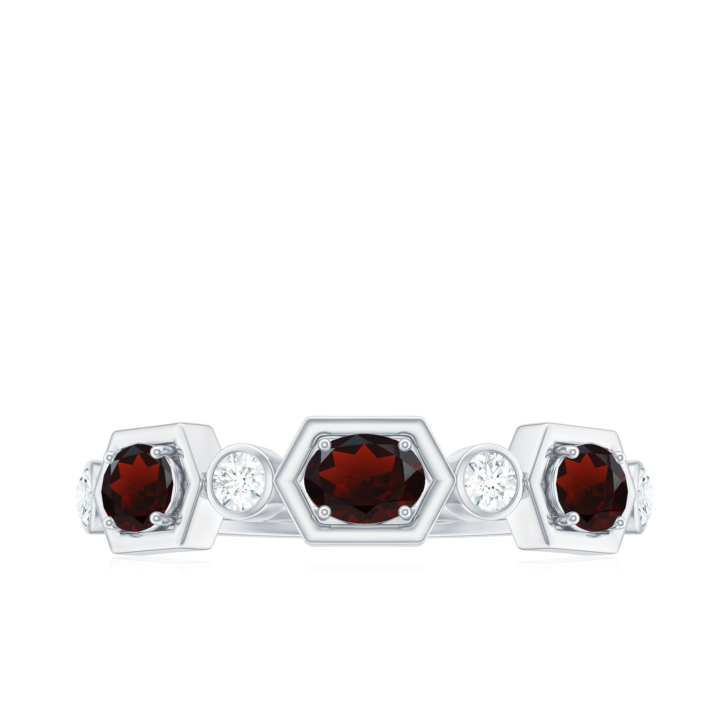 Symbolizing enduring love and timeless elegance, this Half Eternity Ring is a stunning way to celebrate a milestone, a promise or a special anniversary. The horizontally placed 3X5 mm Oval Shape garnet stones alternate gracefully with sparkling Round Diamond stones, each set in geometric frames that give the ring a modern, artful twist. This thoughtful arrangement creates a rhythm and balance that feels both sophisticated and romantic. Crafted to capture light and attention from every angle, the half-eternity design of this Garnet Diamond Ring makes it a versatile yet meaningful piece, perfect for stacking with other favorites or wearing solo as a bold symbol of your love. Presented in a signature jewelry box, this East West Ring arrives ready to gift and is available in a variety of sizes to ensure the perfect fit. Whether celebrating years together, marking a personal milestone or simply showing someone how much they mean to you, this Red Garnet Ring turns sentiment into a piece of art that will be cherished forever.