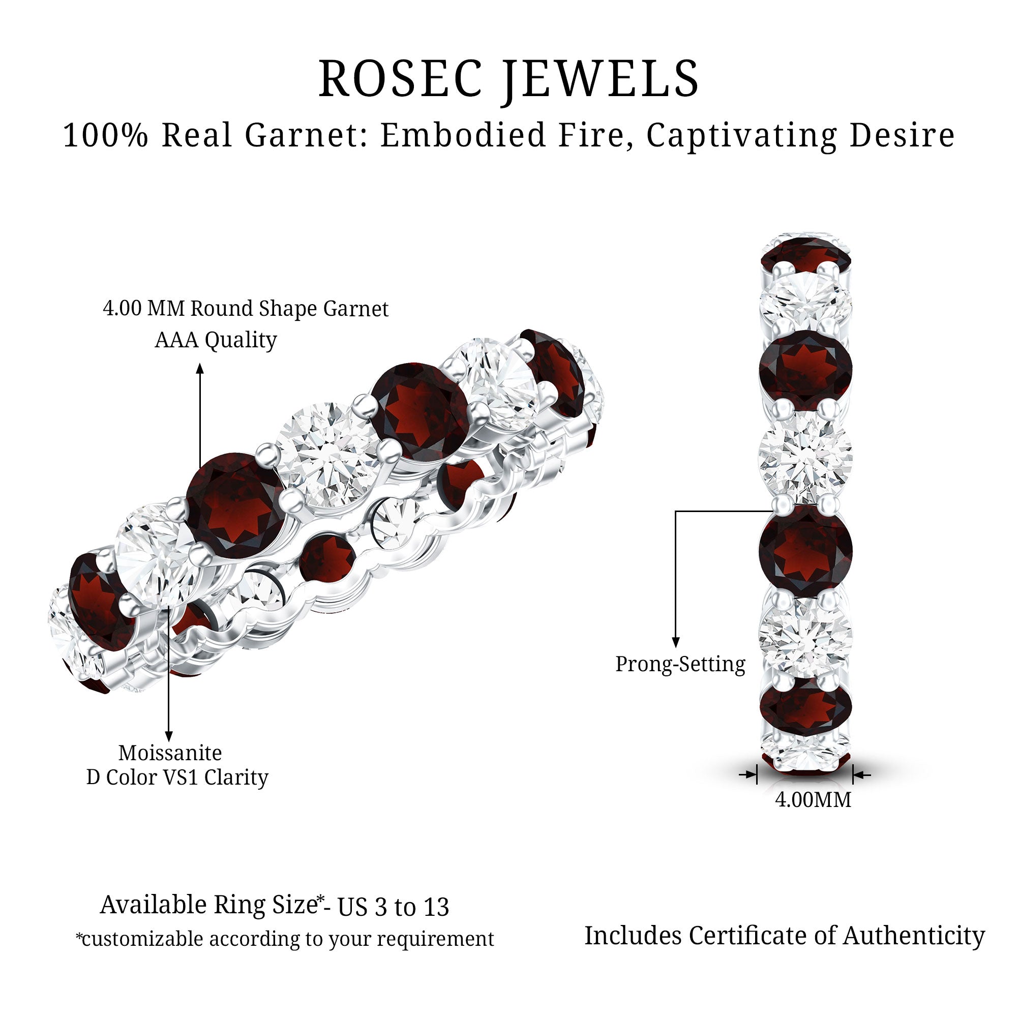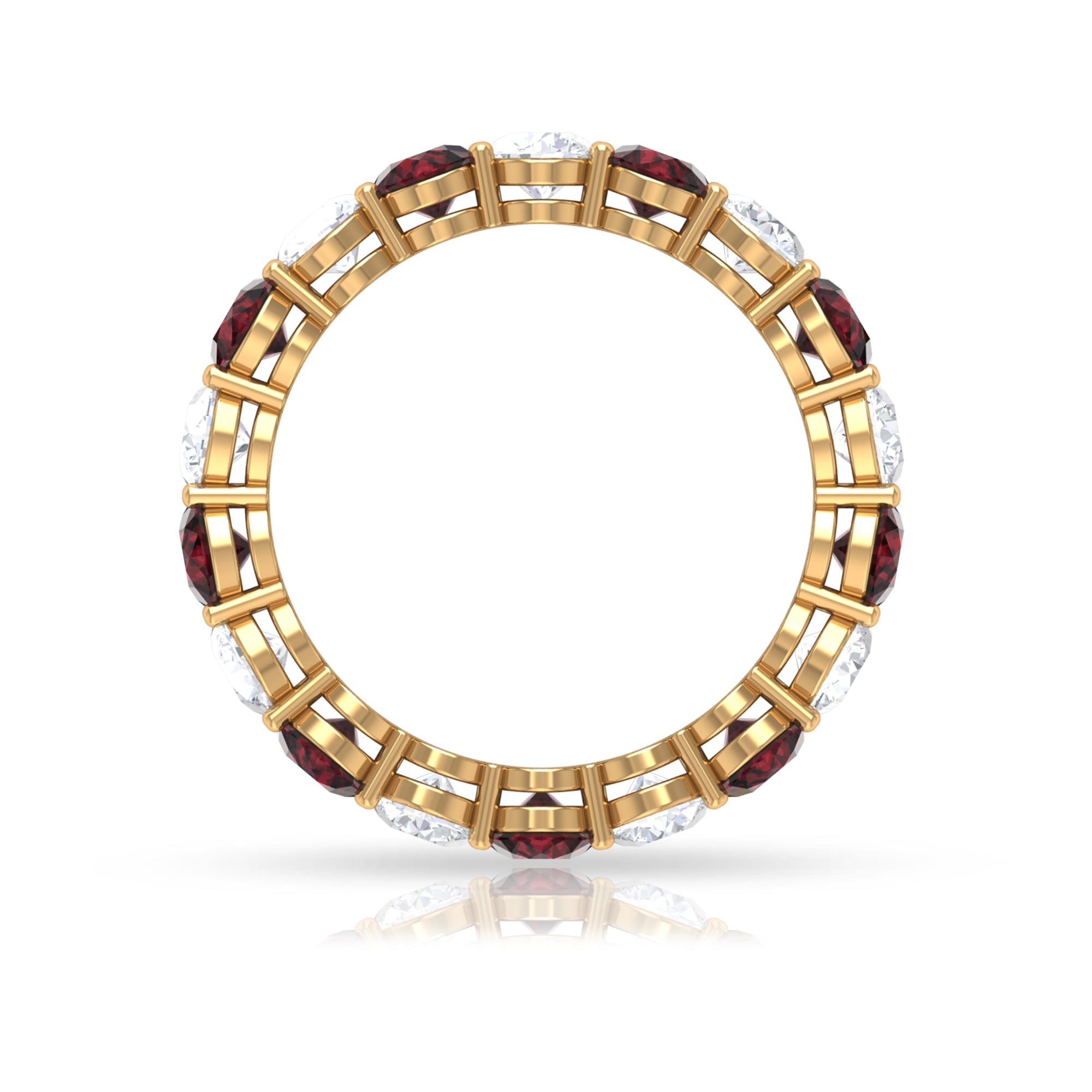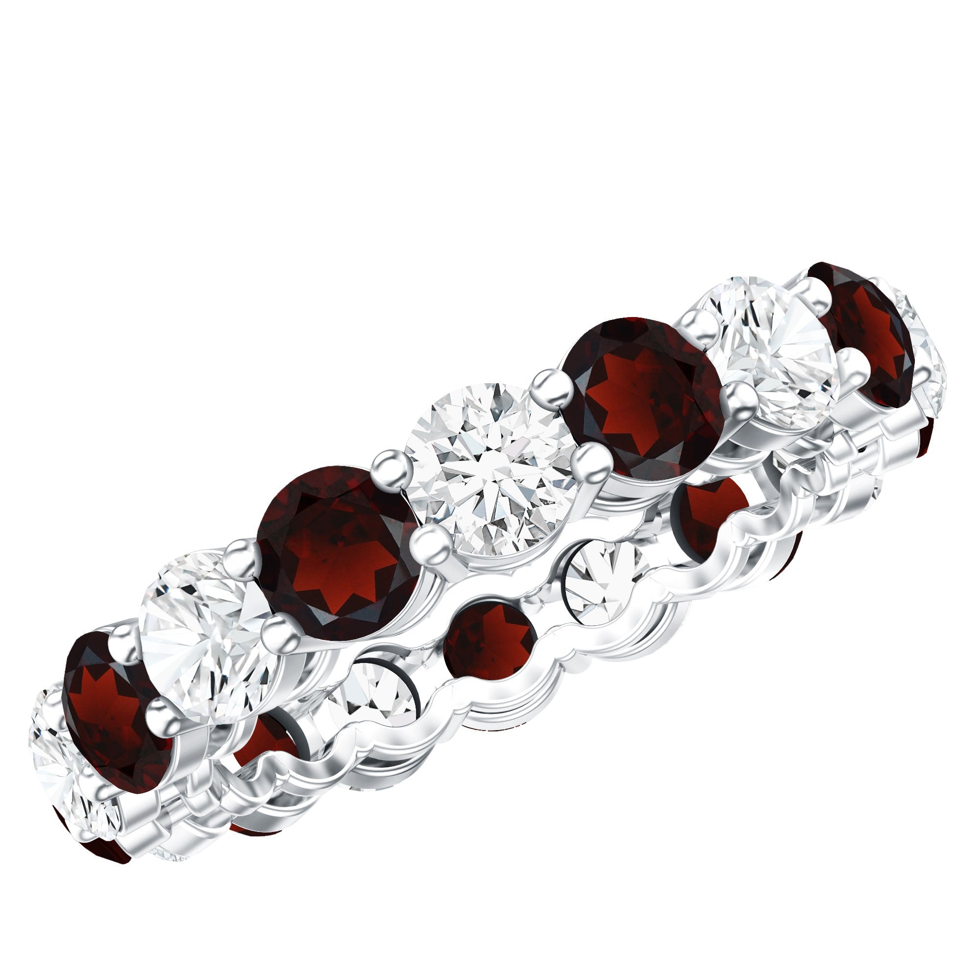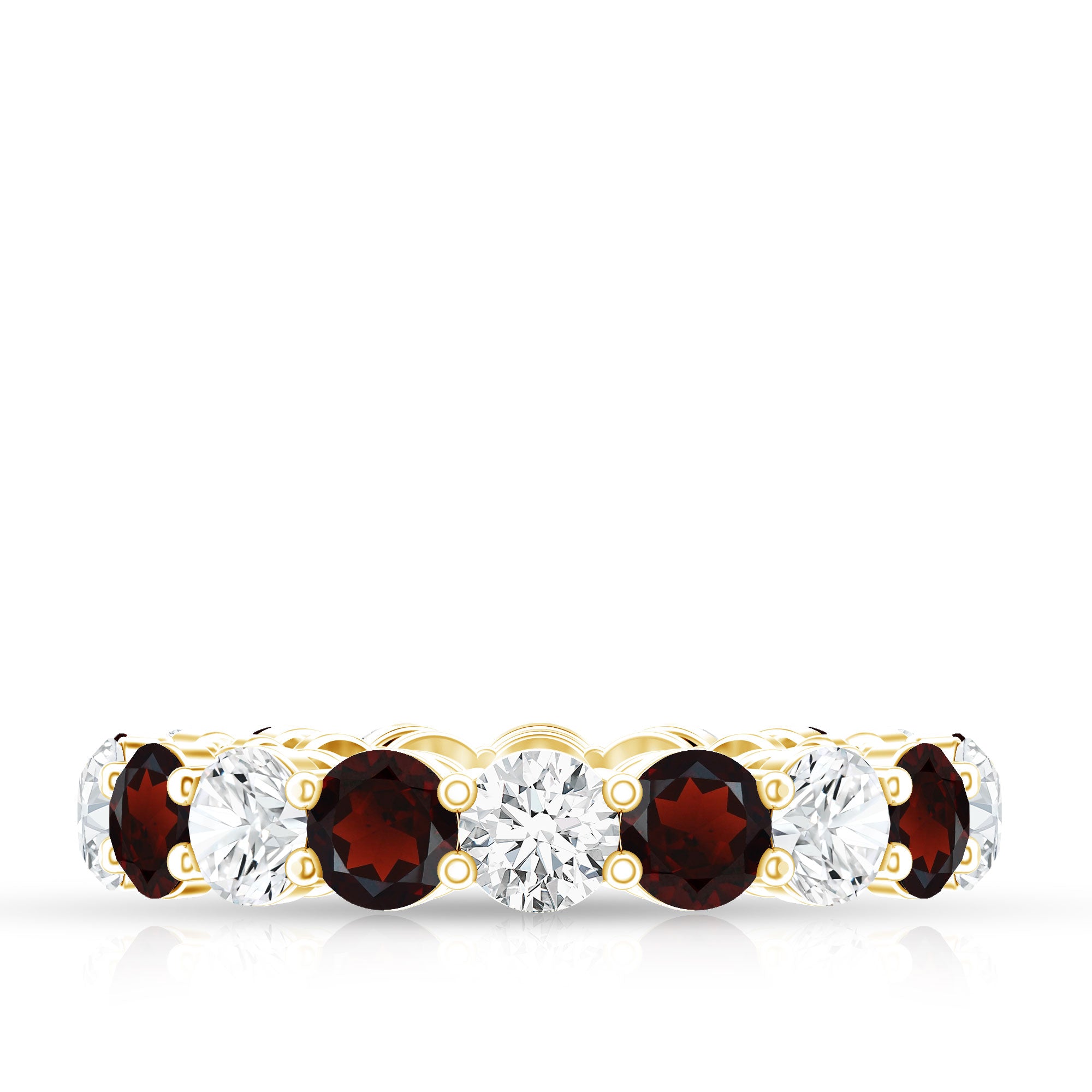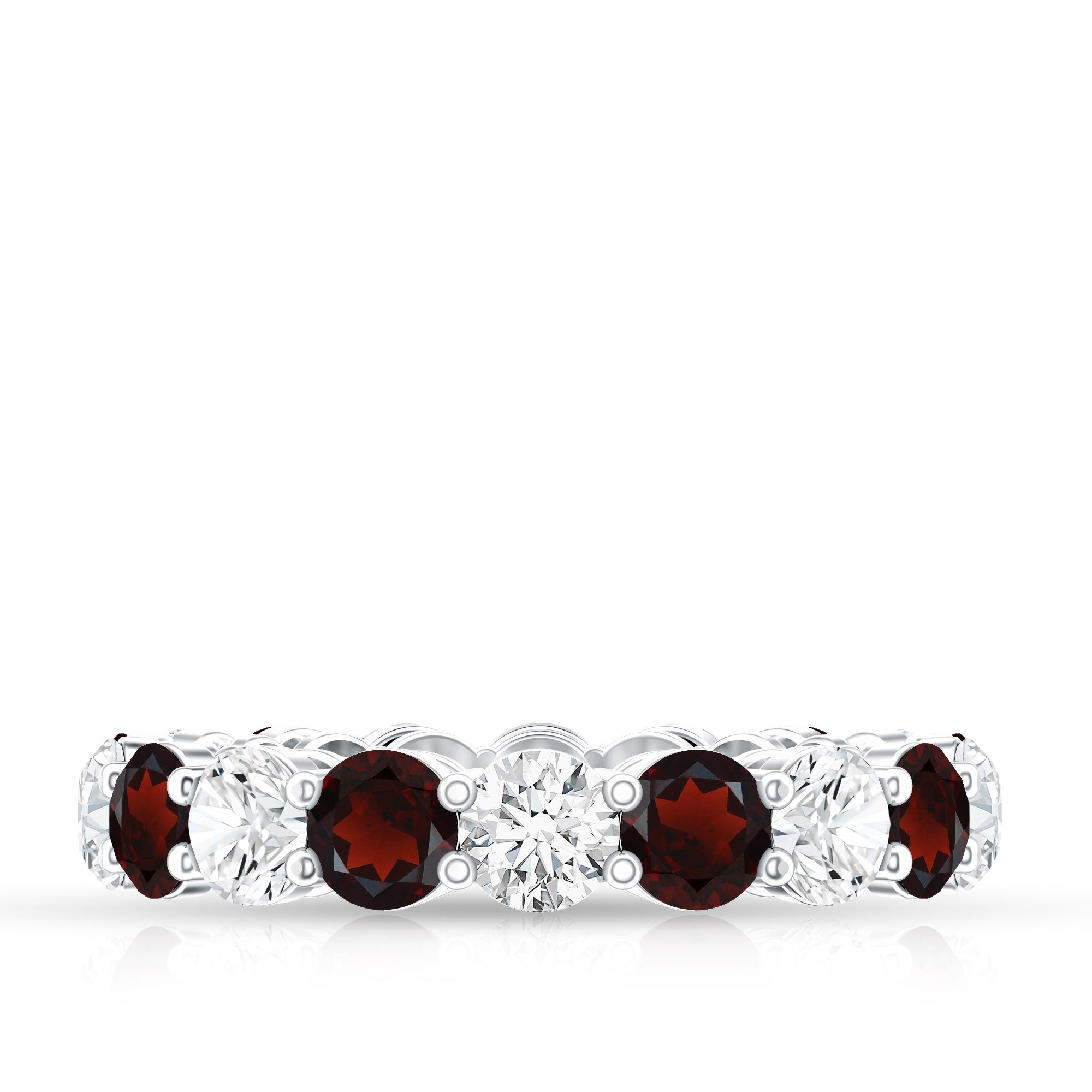 Natural Garnet Eternity Wedding Ring with Moissanite