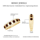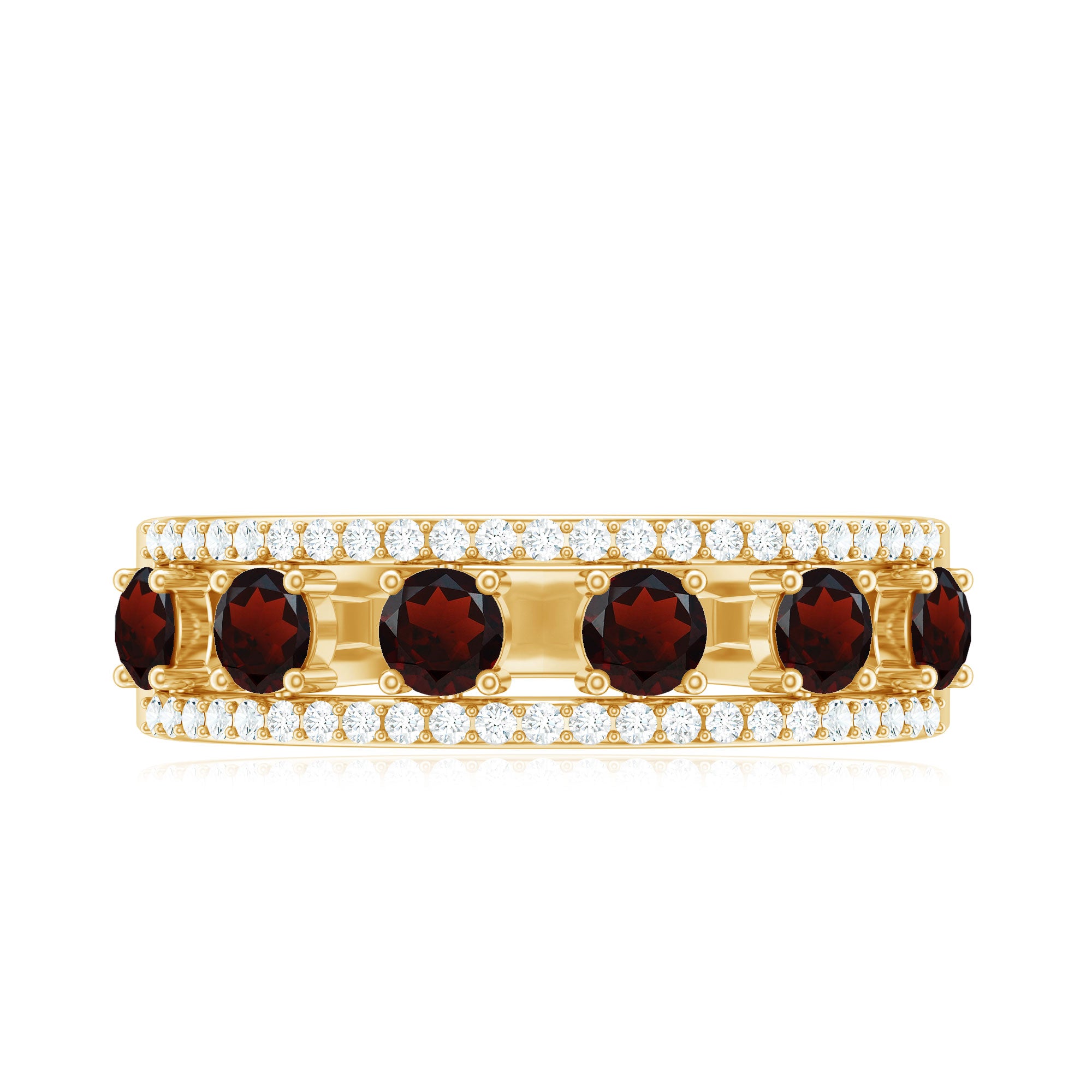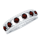 Handcrafted to glow with meaning, this Half Eternity Band brings together passion, elegance and timeless charm in one unforgettable piece. The Wide Band offers a bold, luxurious presence, while each 3 mm Round Shape Garnet set in Prong Setting is placed with equal spacing to create a beautifully balanced rhythm of color. Along the borders, dainty Diamond stones add a sparkling outline. The blend of AAA Quality Garnet and delicate HI-SI Grade Diamond light gives this Wedding Anniversary Ring a warm, romantic glow that feels both modern and classic at once. Perfect for anniversaries, promises or simply celebrating the one who fills your life with love, this Garnet Eternity Band symbolizes devotion that grows stronger with every moment. Thoughtfully designed and crafted with care, this Real Garnet Diamond Ring offers comfort, brilliance and a style that effortlessly stands out. Presented in a signature jewelry box, this Garnet Wedding Band arrives ready to make an impression from the very first look. With various ring sizes available, finding the ideal fit for the one who means everything to you is easy and meaningful.