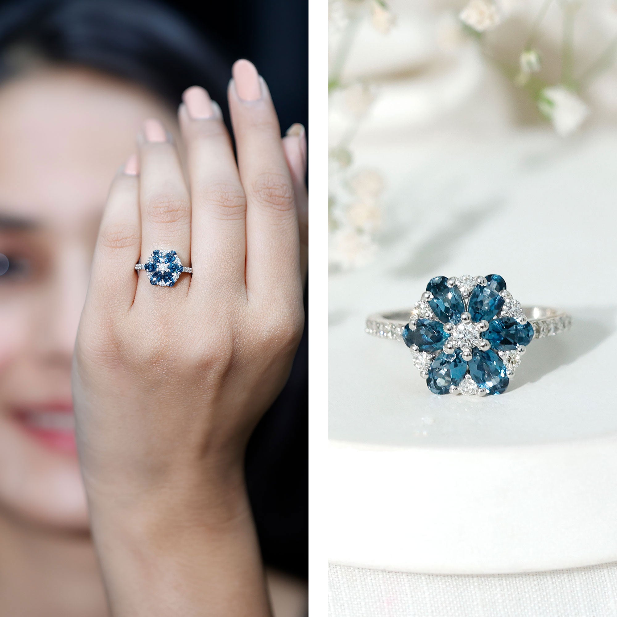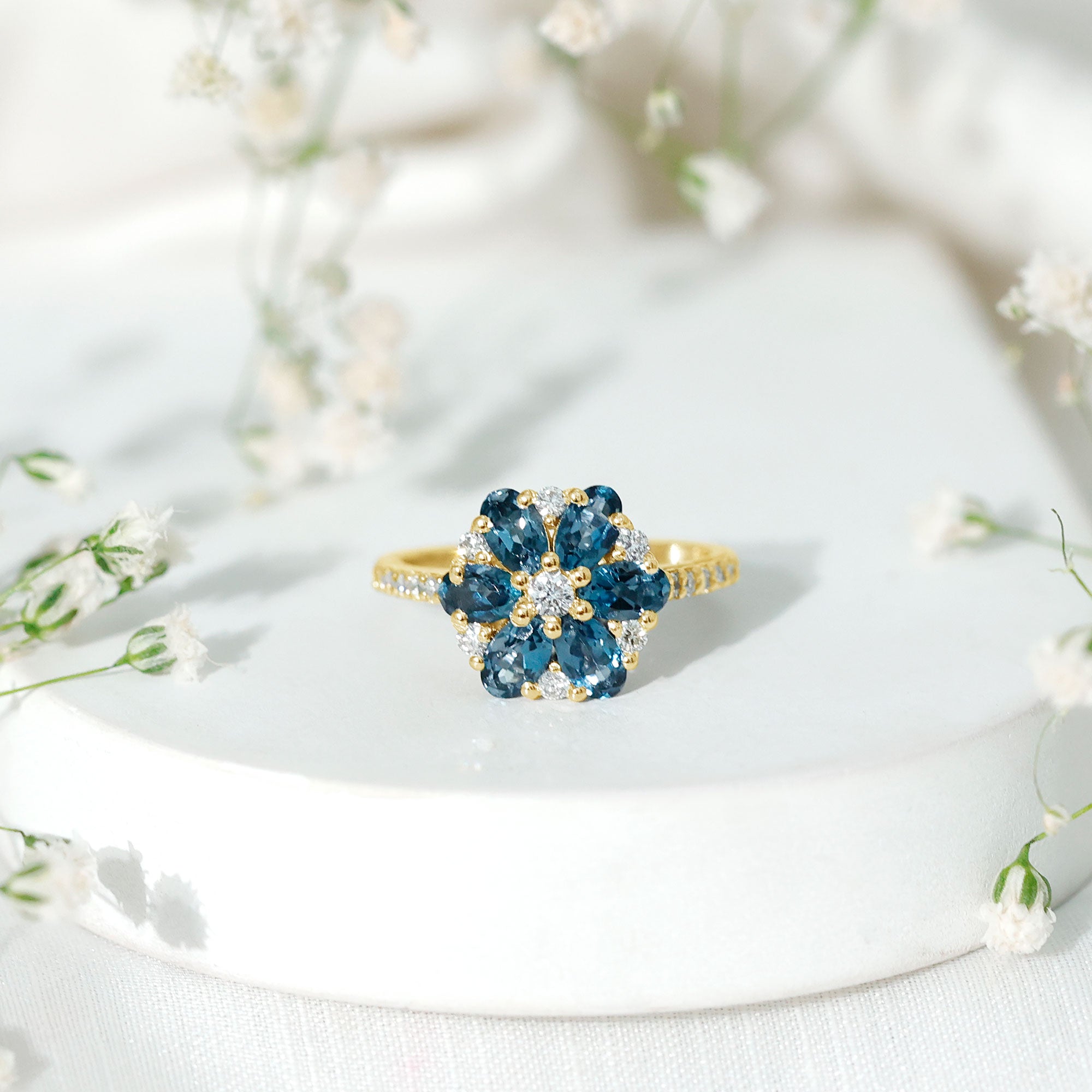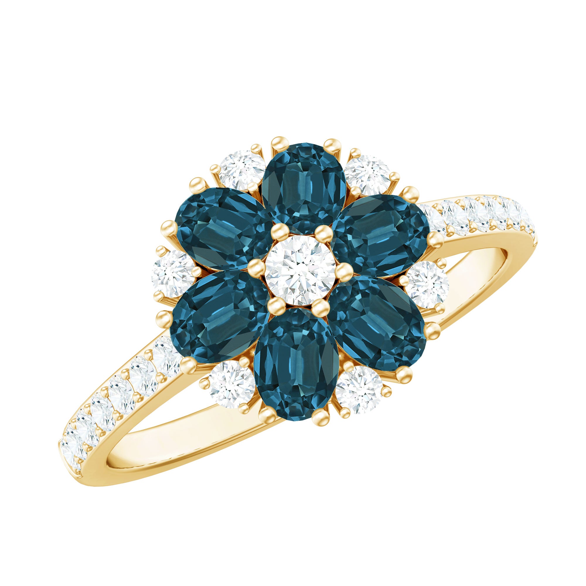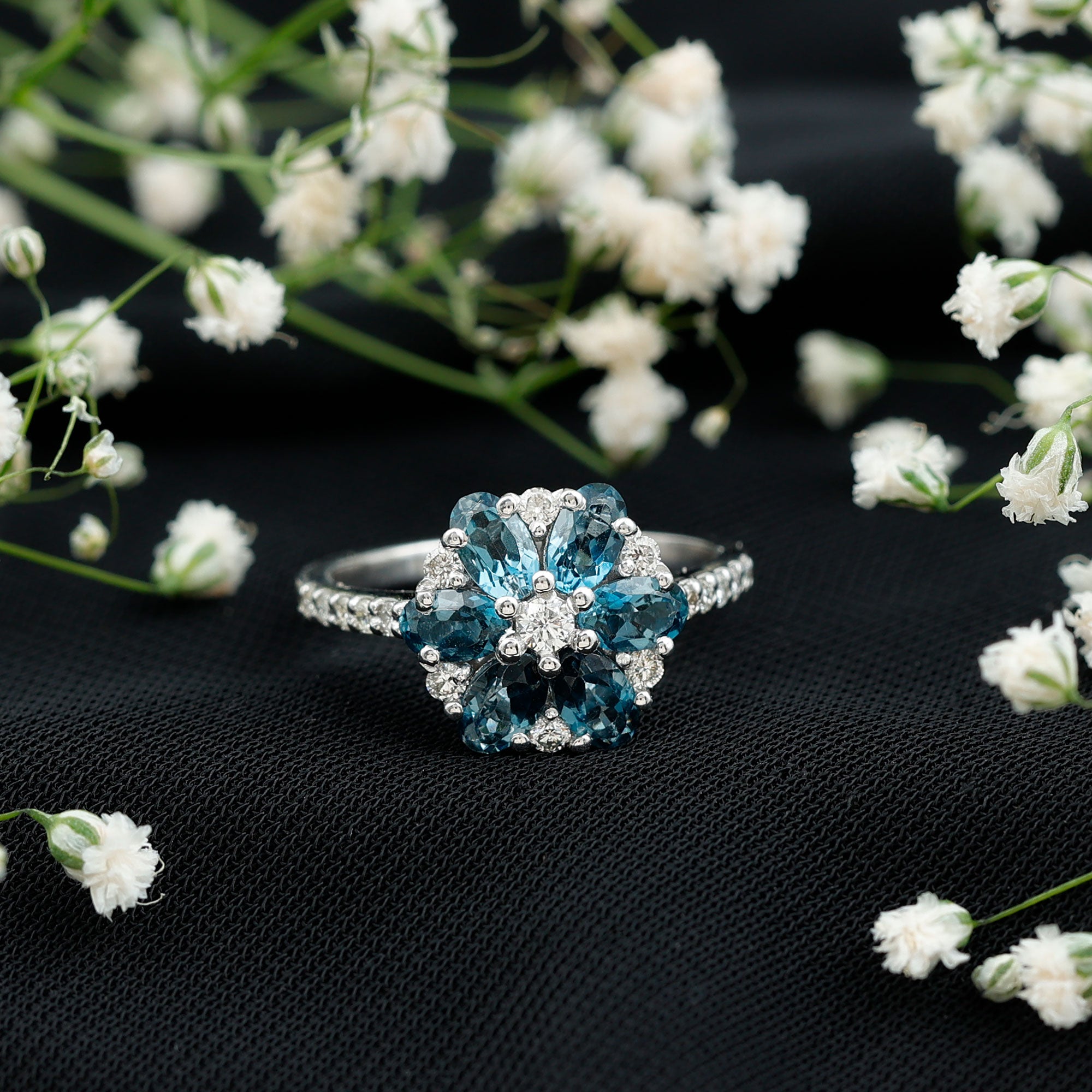 Natural London Blue Topaz Flower Engagement Ring with Diamond