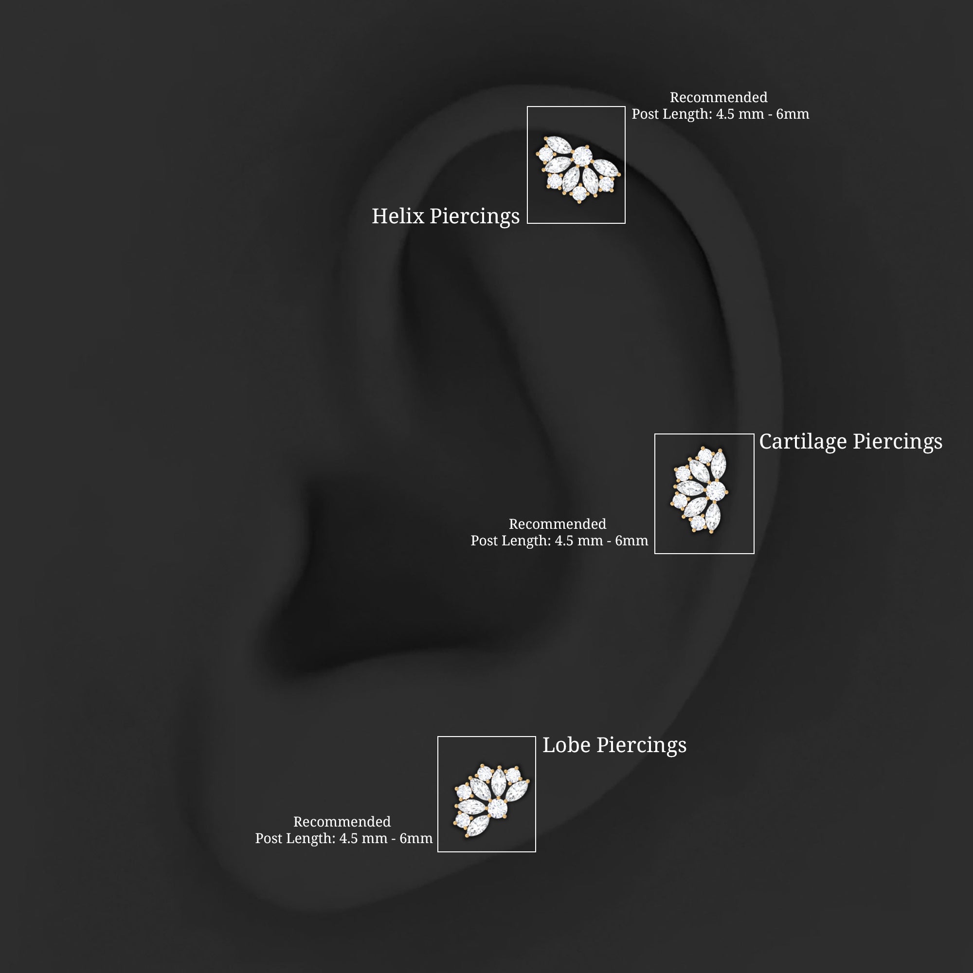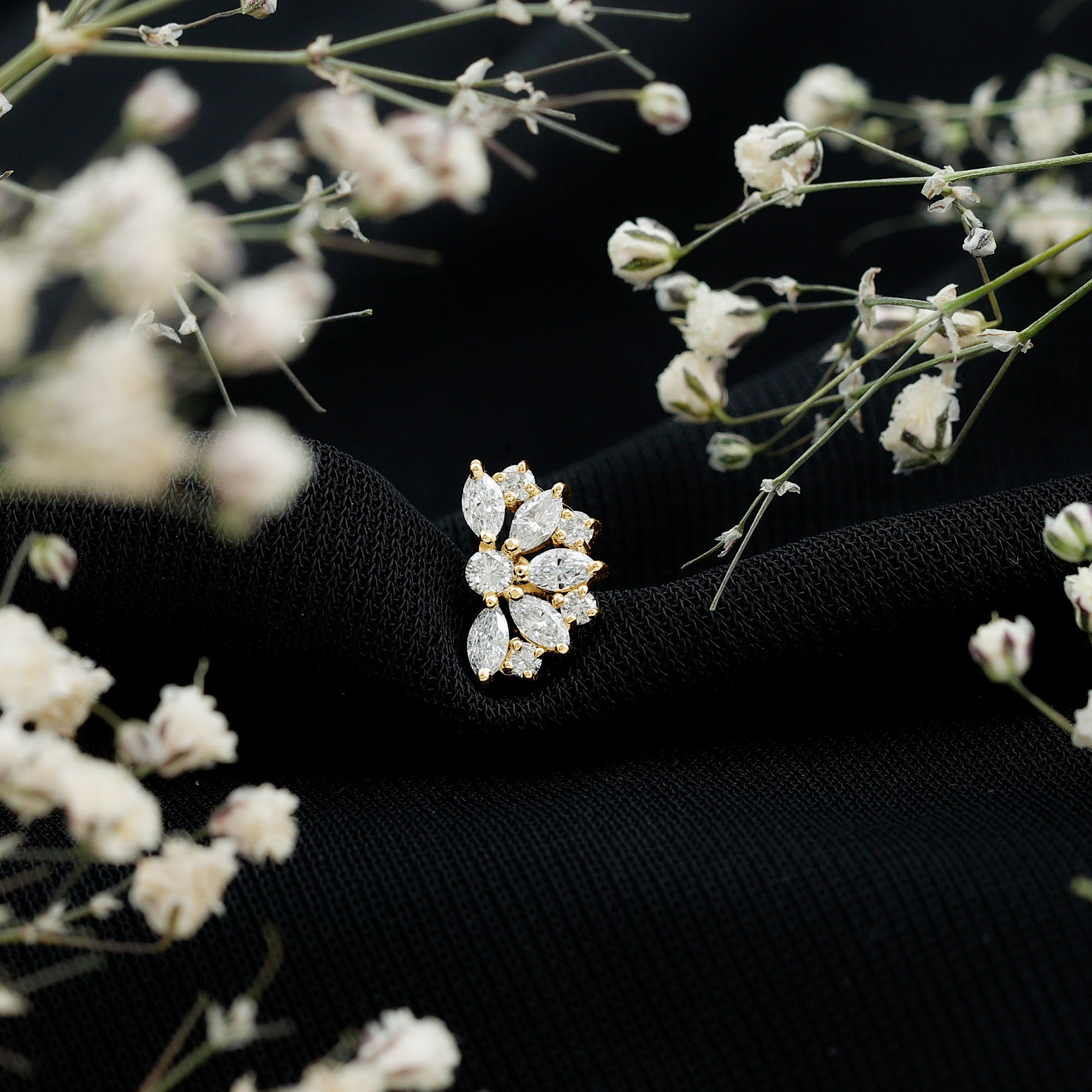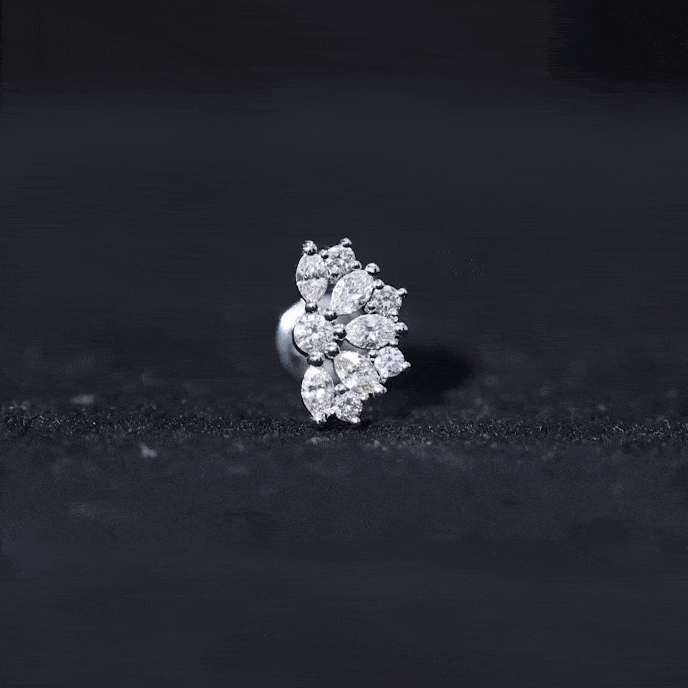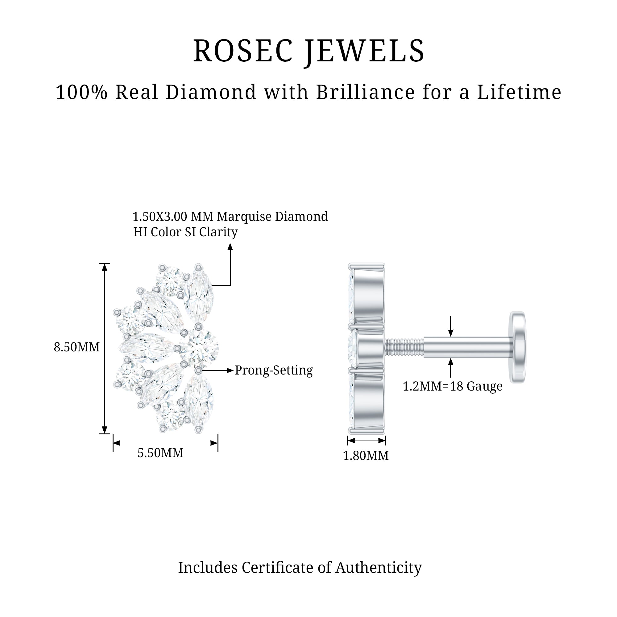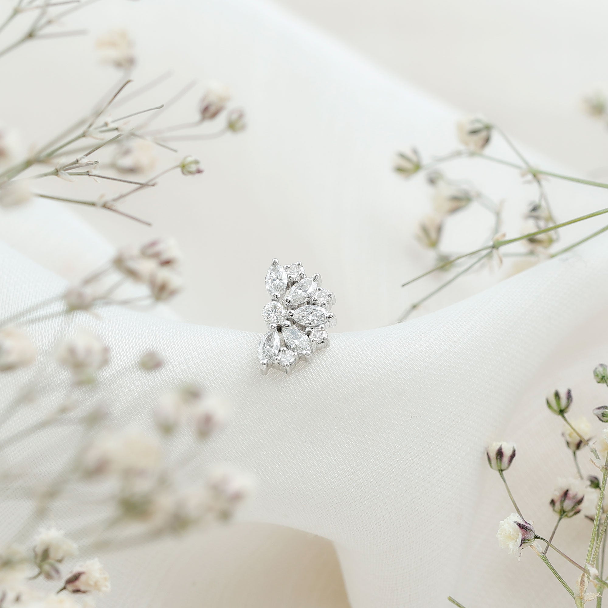Add a touch of elegance to your style with this Diamond Floral Earring, featuring Marquise and Round Cut Diamond in a stunning Flower Design set in prong setting. With a flat back closure, you can comfortably wear it on your Helix, Cartilage, or Upper Lobe Piercing. Whether it is for a birthday, anniversary, friendship, or Christmas gift, this Diamond Cluster Earring is the perfect token of love. It is subtle enough for everyday use but still bright enough to stand out when you want a little extra sparkle. You can wear it as a single statement piece or mix it with other small earrings to create your own unique arrangement. This Diamond Cartilage Earring comes safely packed inside a jewelry box, making it great for gifting. A certificate is included as well, giving you peace of mind about the quality of the diamonds. Whether you are treating yourself or surprising someone special, the presentation feels thoughtful.
