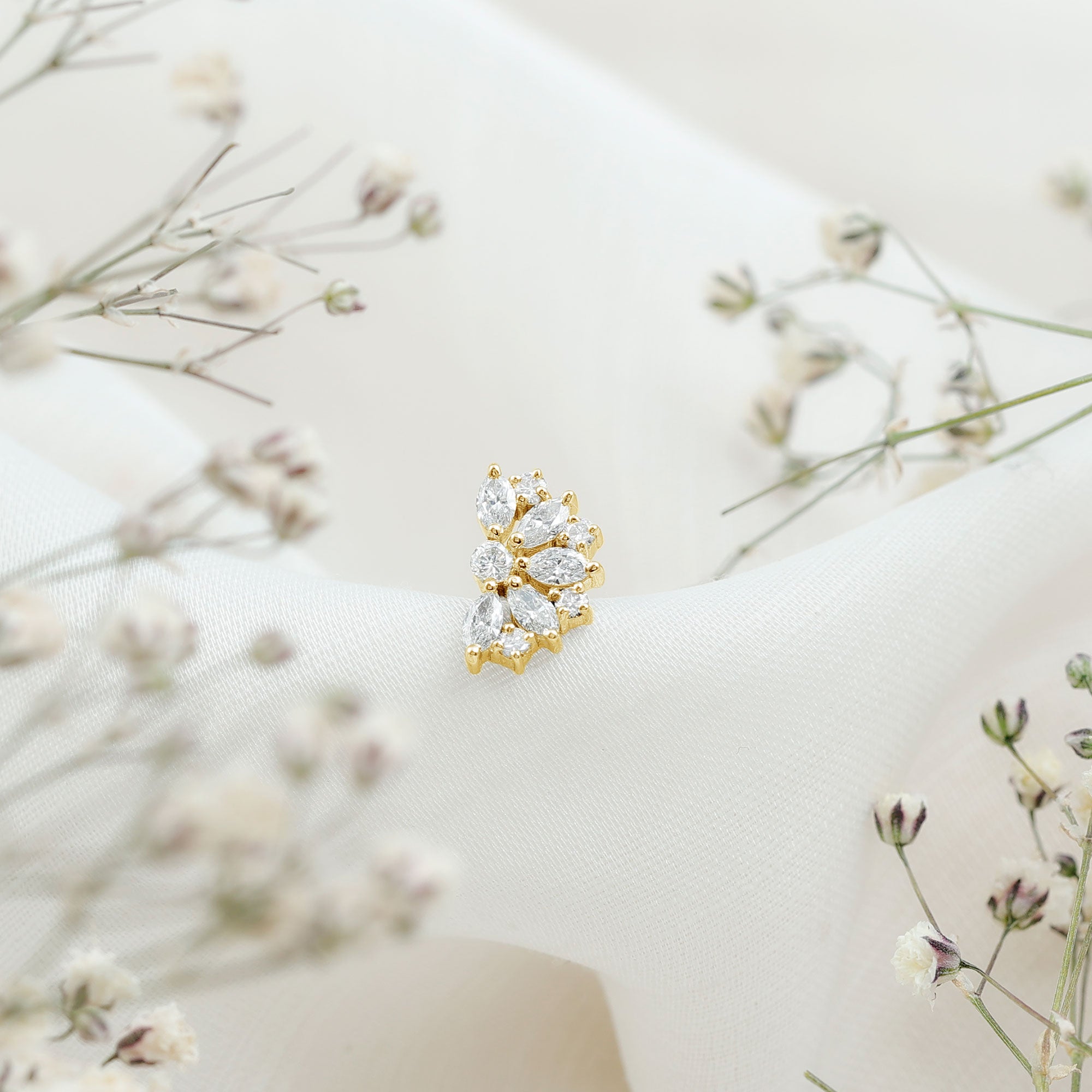 Natural Marquise and Round Diamond Floral Cartilage Earring