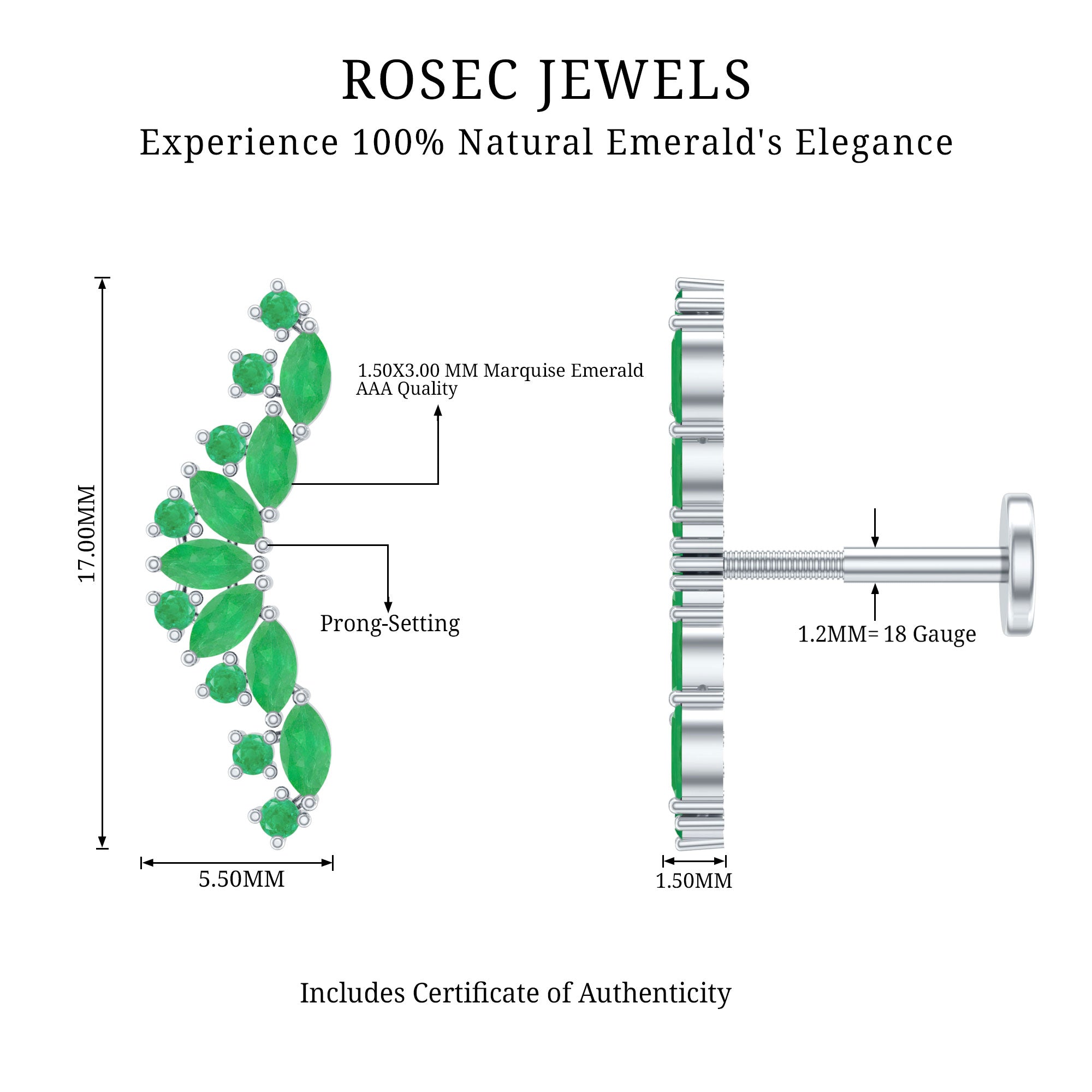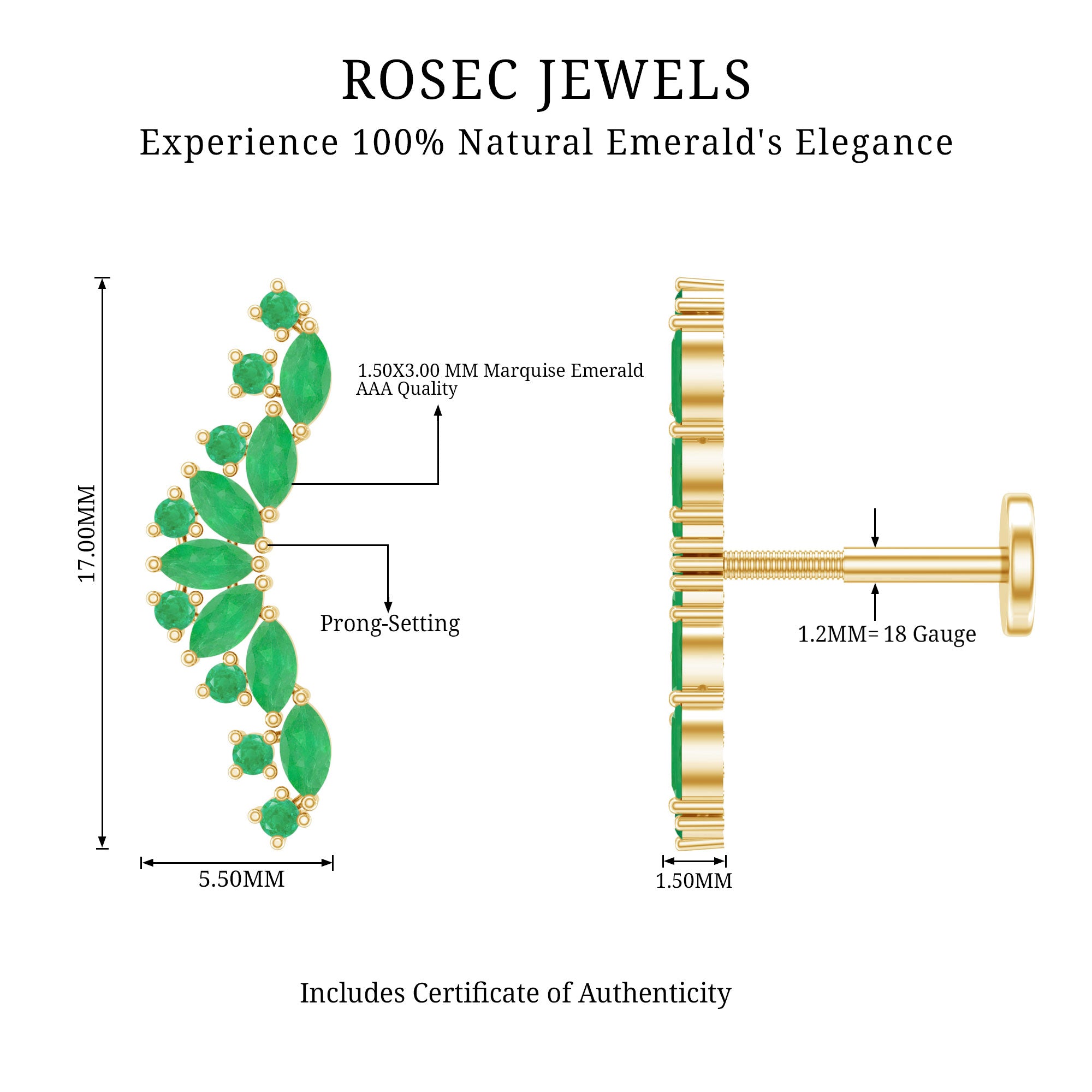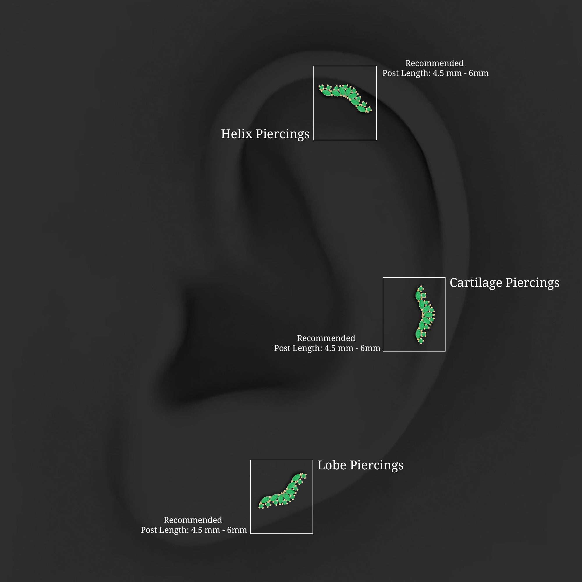 Elevate your ear styling with the exquisite Emerald Cartilage Earring, a piece designed to bring elegance, color, and modern charm to your look. This stunning Curved Crawler Earring features a beautifully arranged cluster of marquise and round cut emeralds, each securely set in prong setting. The curved design follows the natural curve of the ear, allowing the vivid green stones to shimmer gracefully with every movement. Crafted from AAA quality real emeralds, it offers a rich glow that instantly enhances any outfit, whether casual, professional, or dressy. Versatile and thoughtfully designed, this Emerald Ear Climber Earring can be worn on the helix, cartilage, or upper lobe piercing, giving you the freedom to style it according to your preference. This piece is ideal for those who love unique and fashion-forward jewelry that still carries a timeless touch. The Emerald Helix Earring is a wonderful gift for birthdays, anniversaries, or special celebrations. Elegant packaging makes it ready for gifting, while its striking design guarantees it will become a cherished favorite in any jewelry collection.