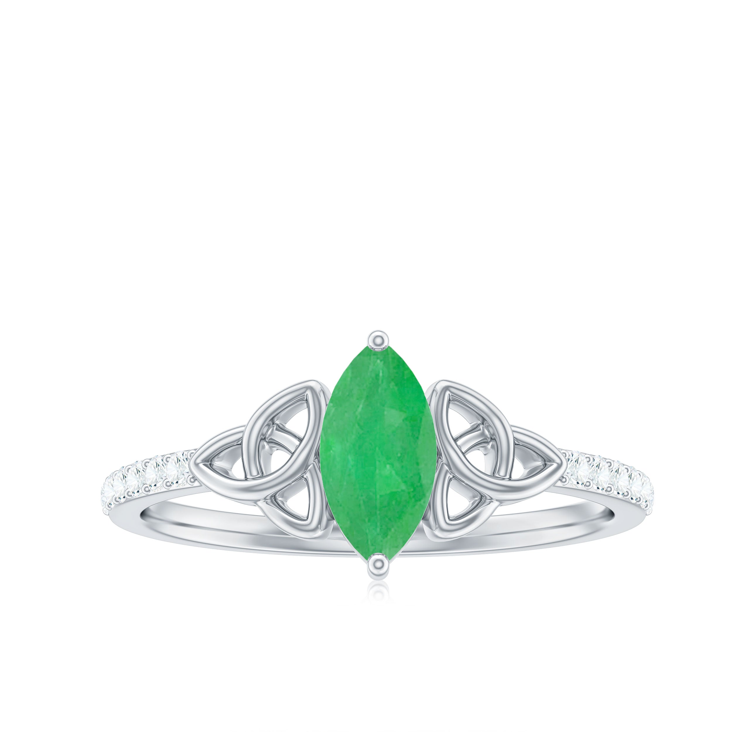 Natural Marquise Emerald Diamond Promise Ring with Celtic Knot